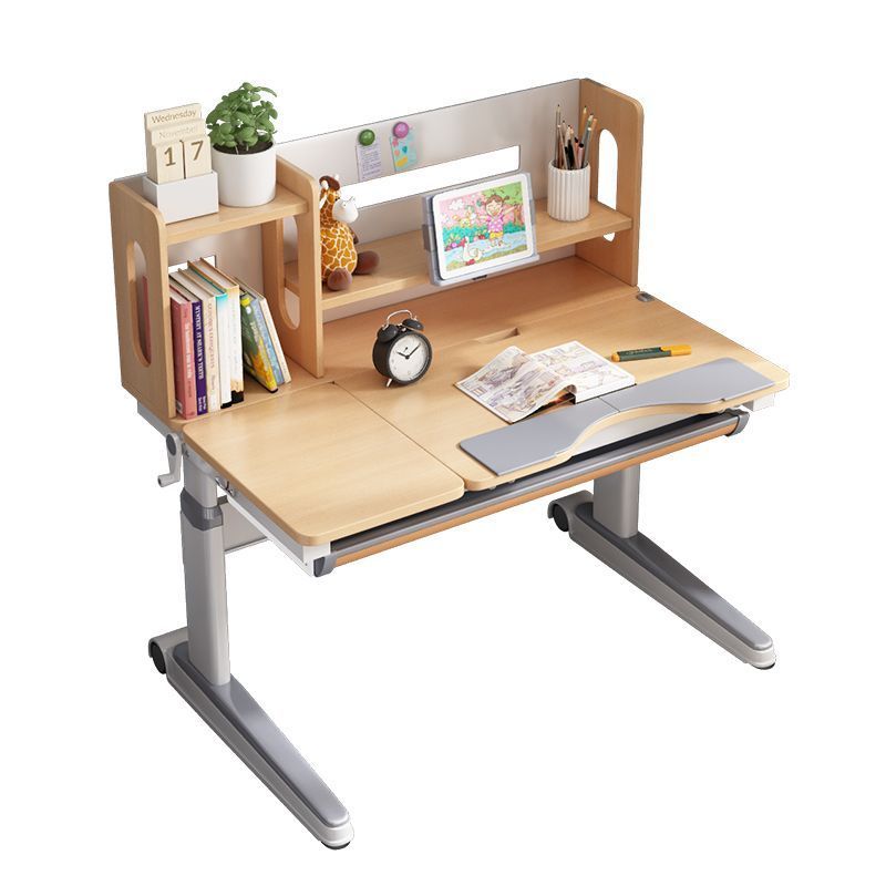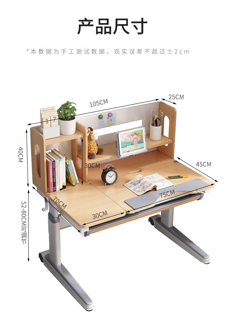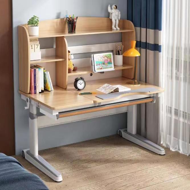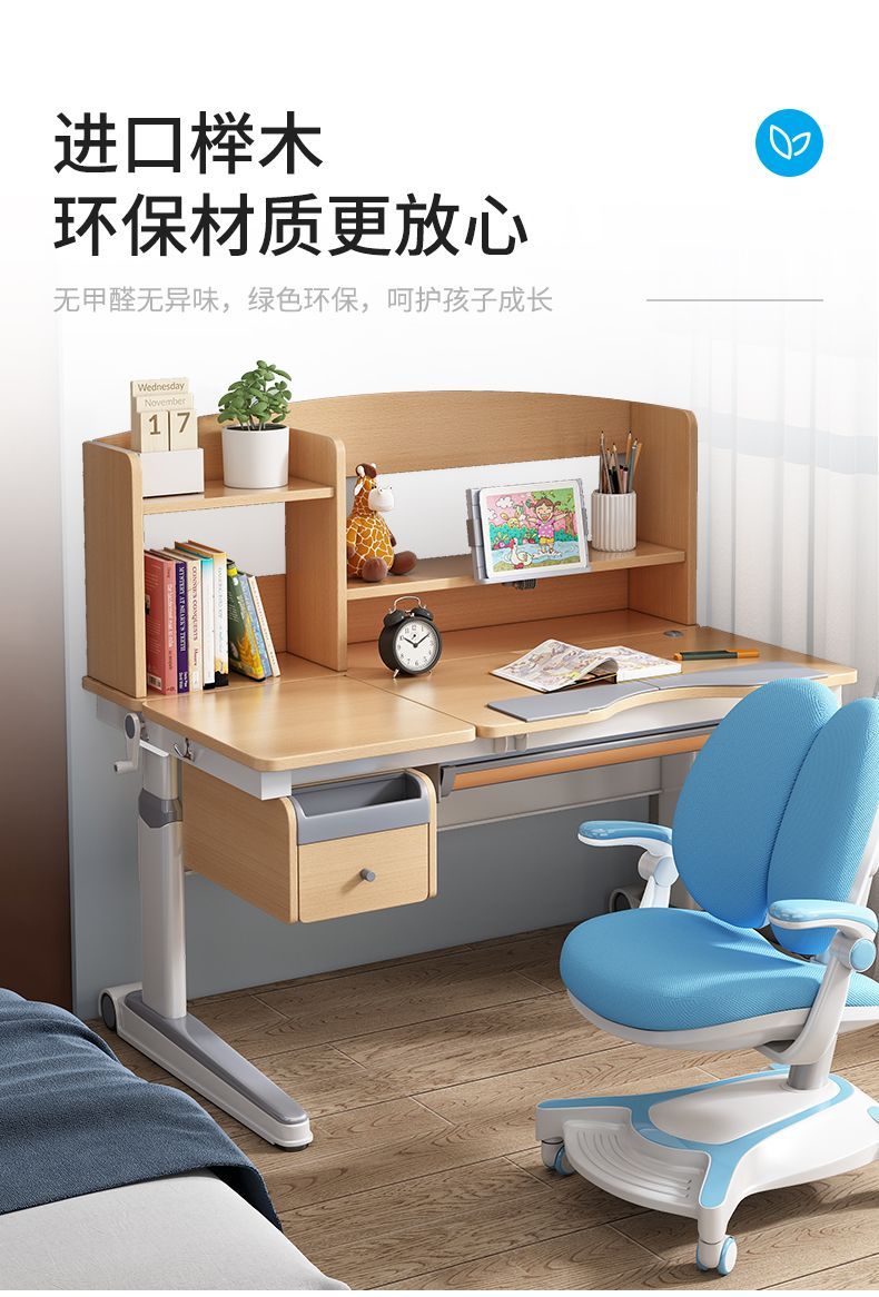 儿童实木学习桌可升降榉木稳固无异味家用环保学生书桌上门安装