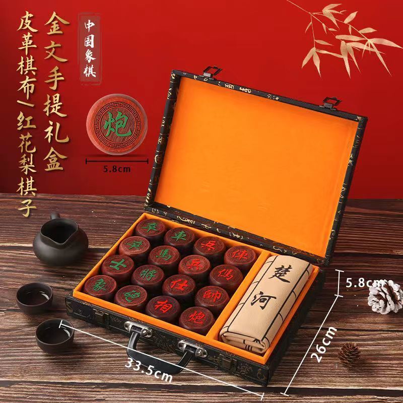 大号红花梨象棋 黑檀木红木中国象棋 实木带棋盘送礼高档便携像棋