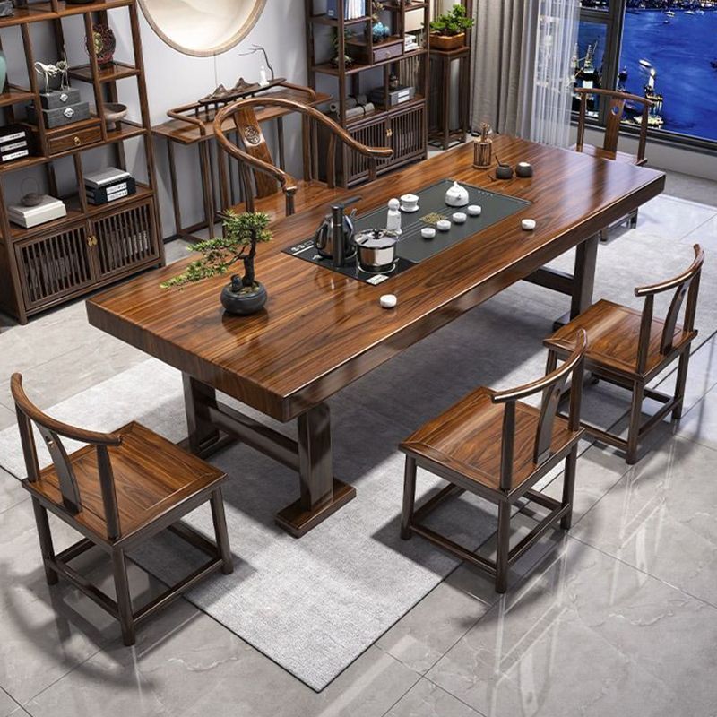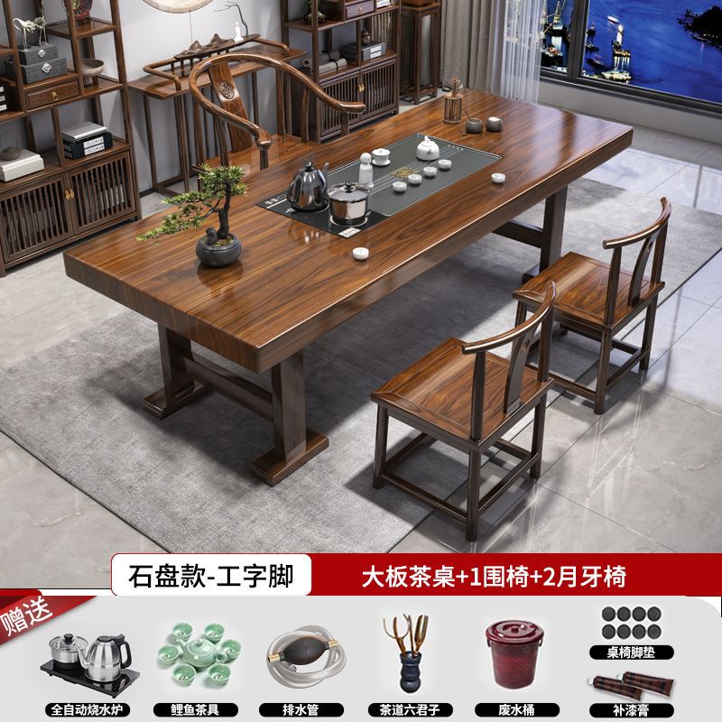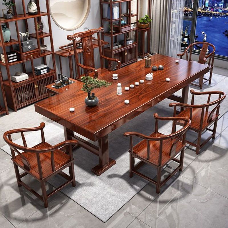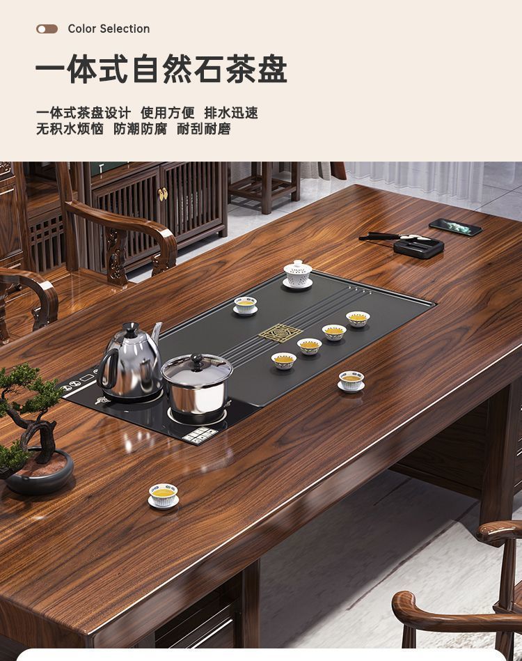 高端实木大板茶桌桌椅组合一体一整套五椅中式茶几办公室家用泡茶