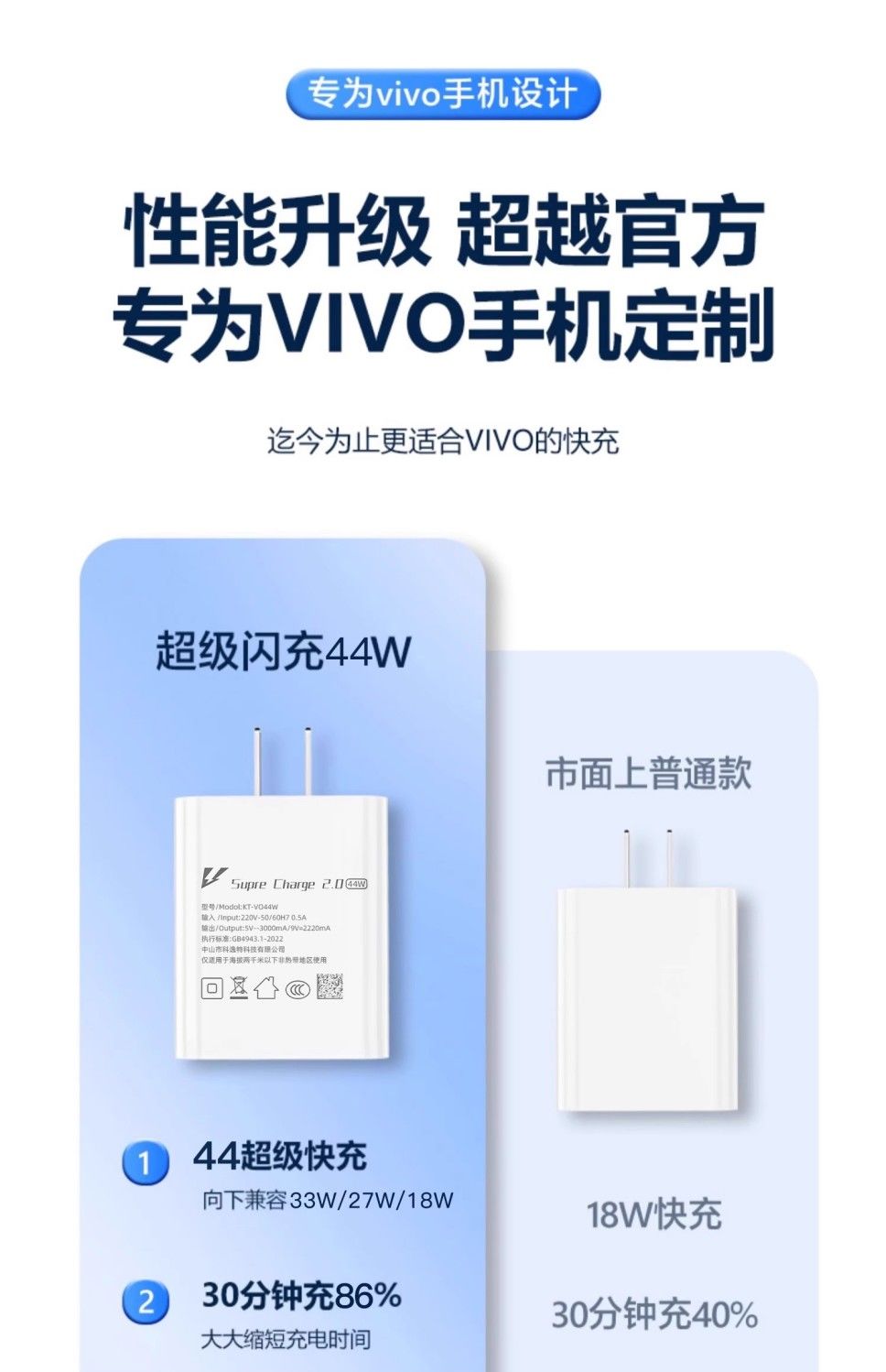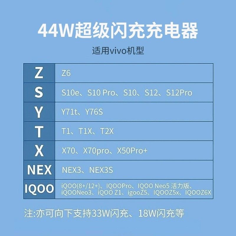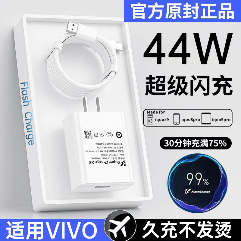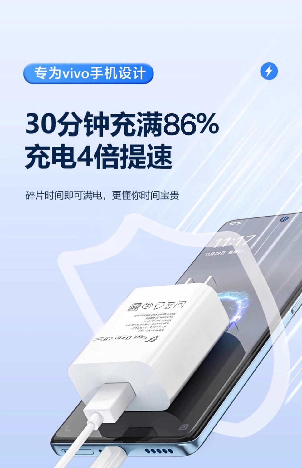 适用vivo手机44W充电器X70/60极速闪充套装33W快充6A超级充电线