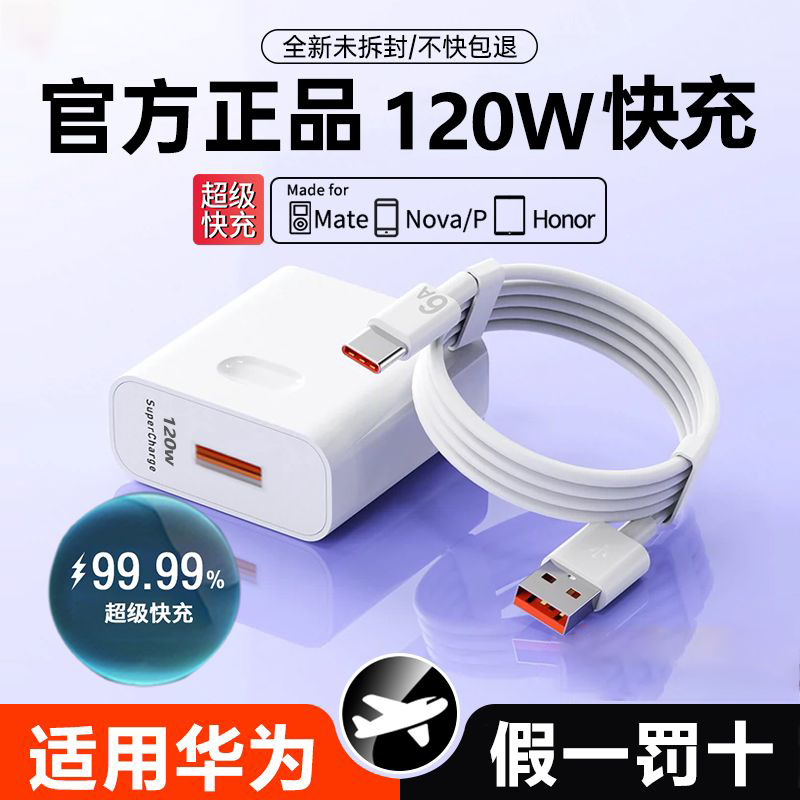 官方120W快充适用华为充电器mate40/p60数据线nova9荣耀66W充电线