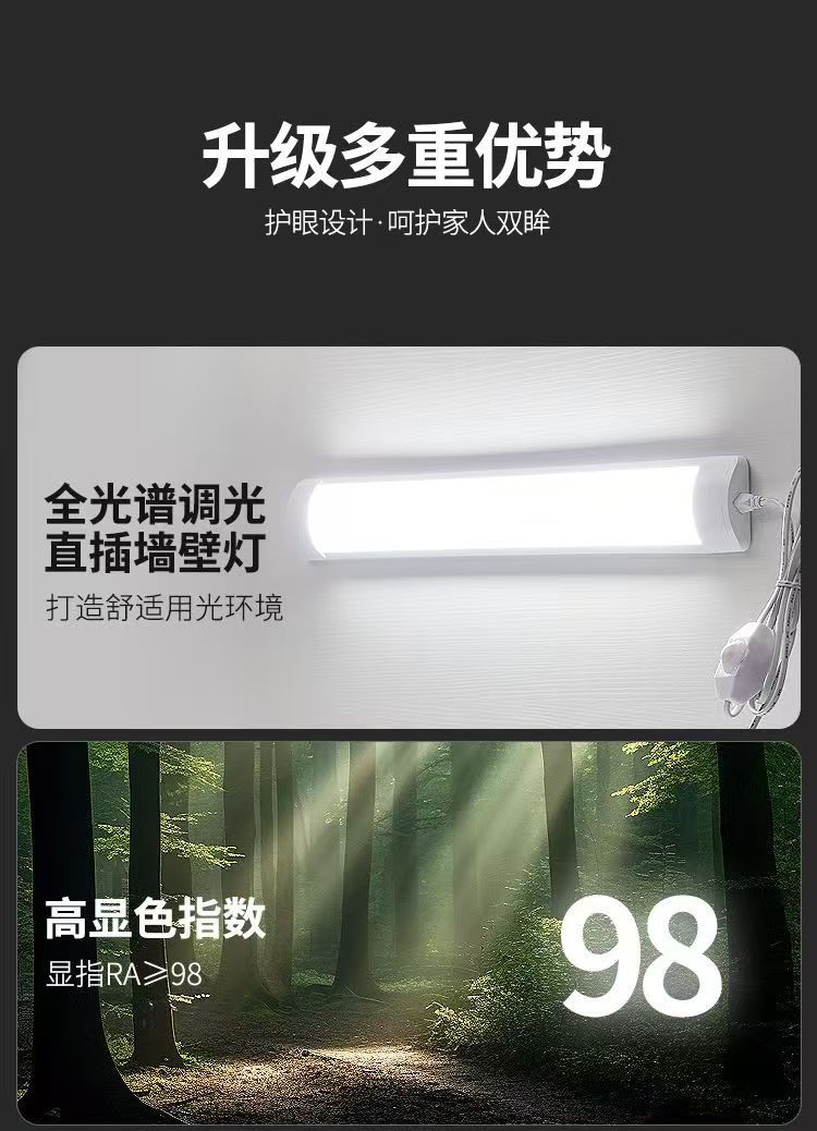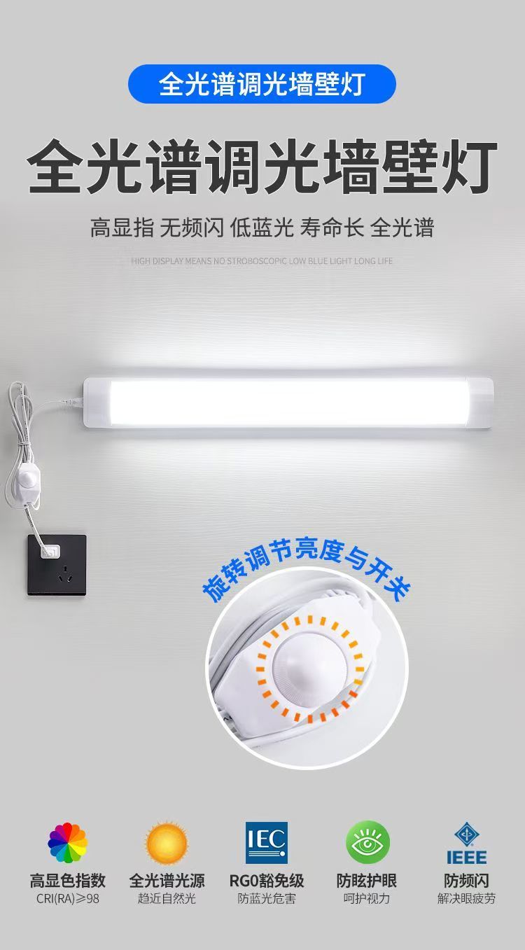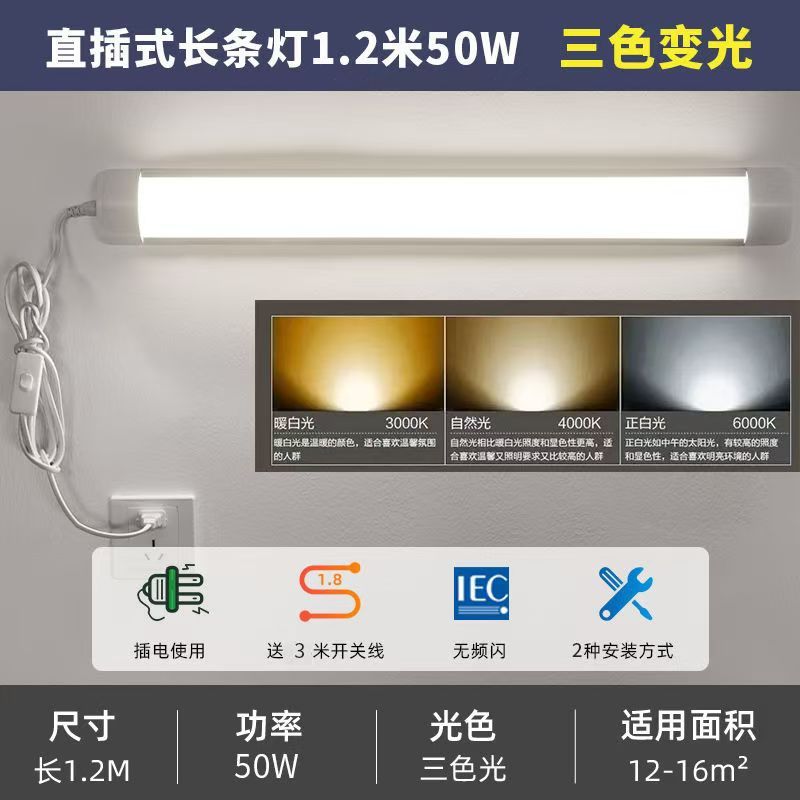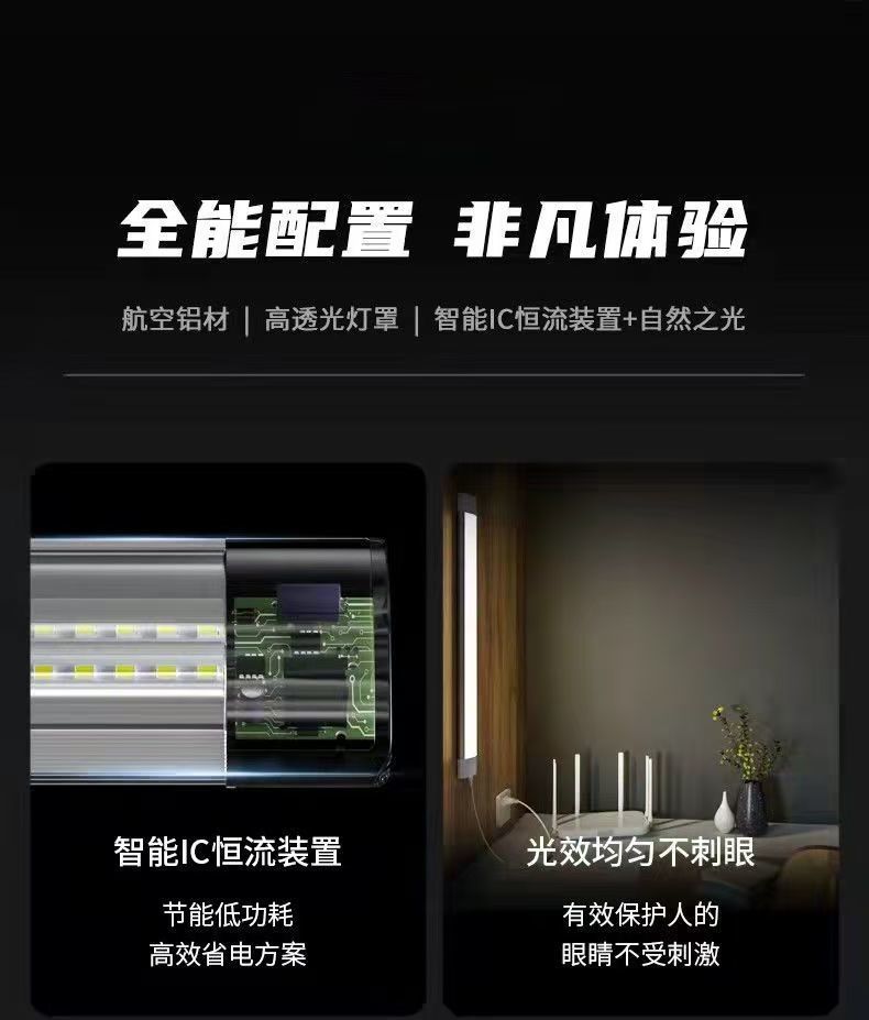 霖朗LED灯管直插式日光灯插座插电式书桌家用学生宿舍节能LED灯管