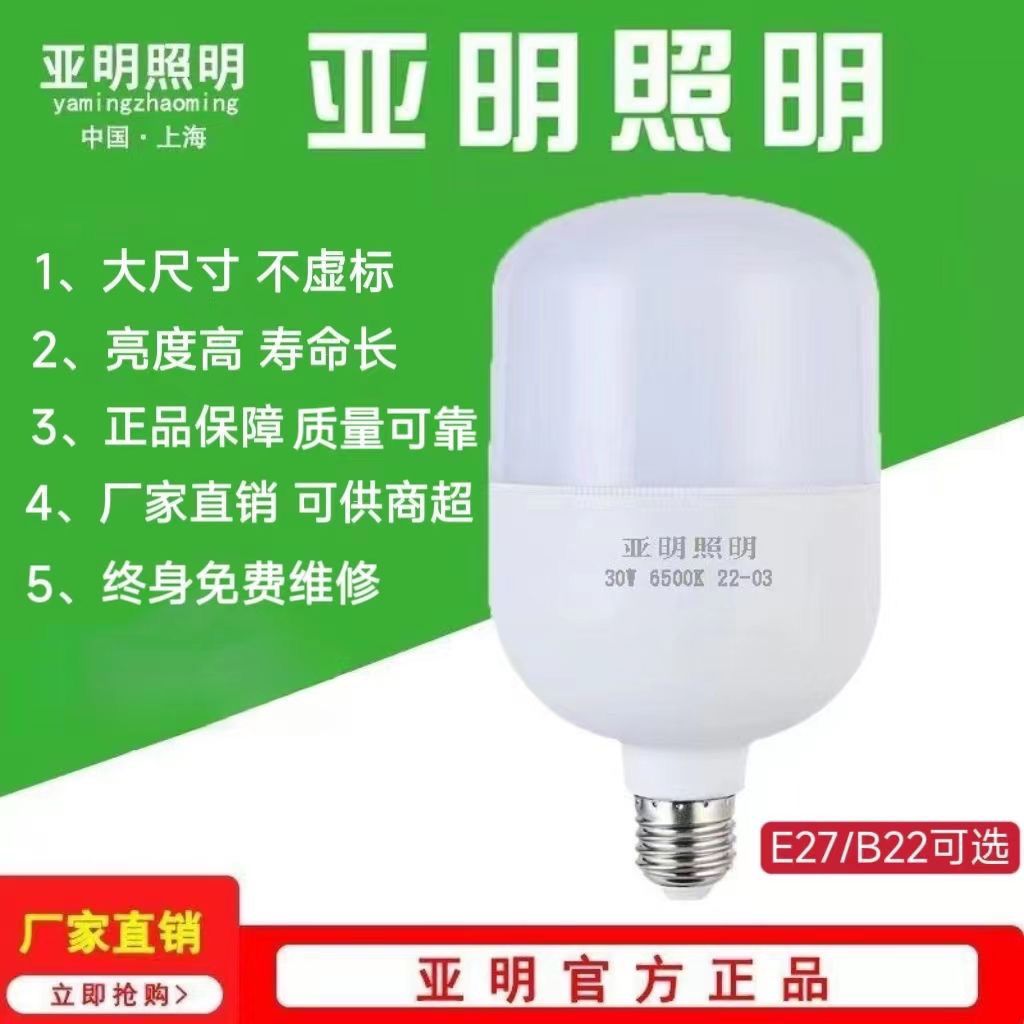 上海亚明LED球泡节能灯E27灯头照明家用室内led大功率螺旋led灯泡