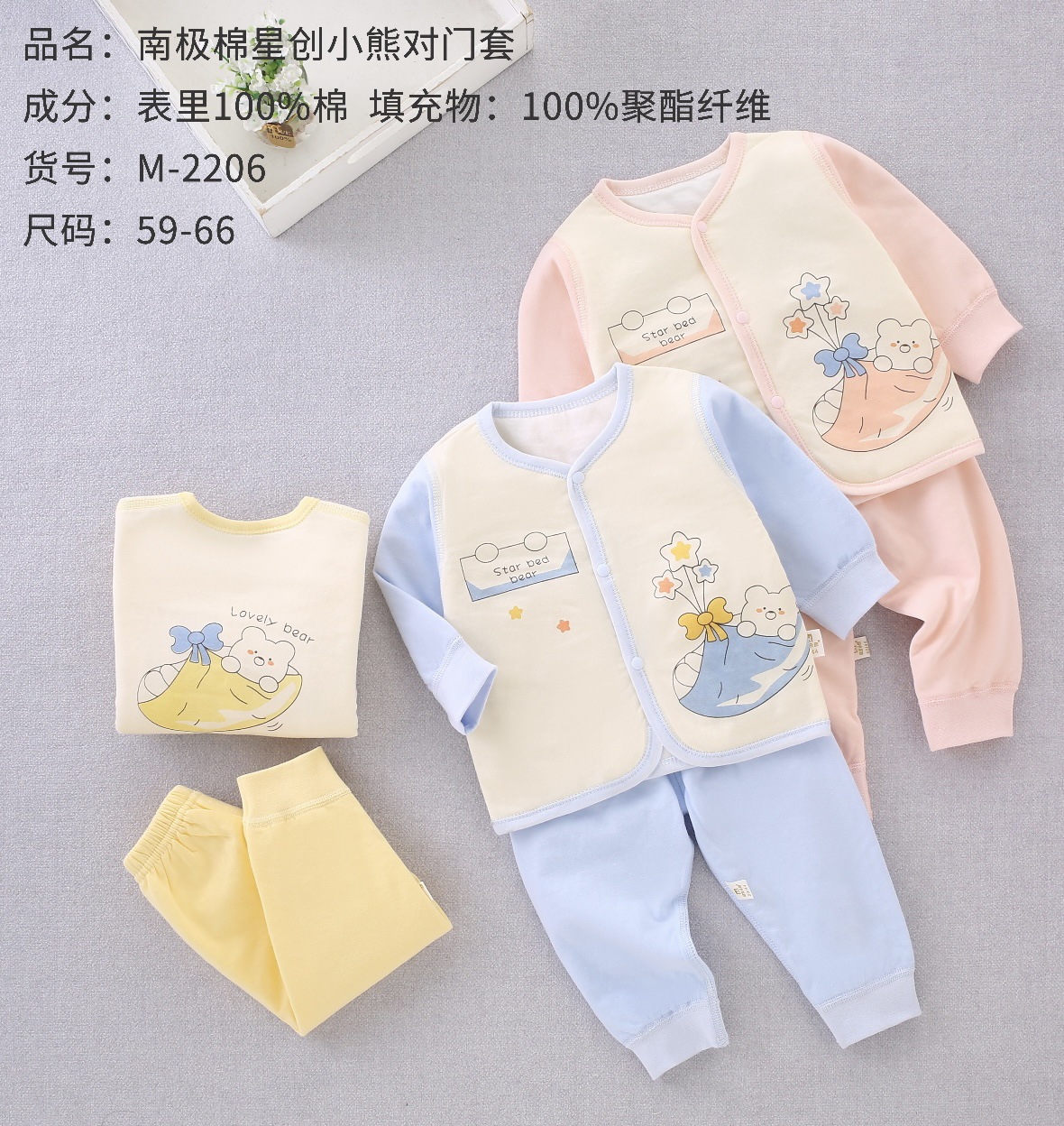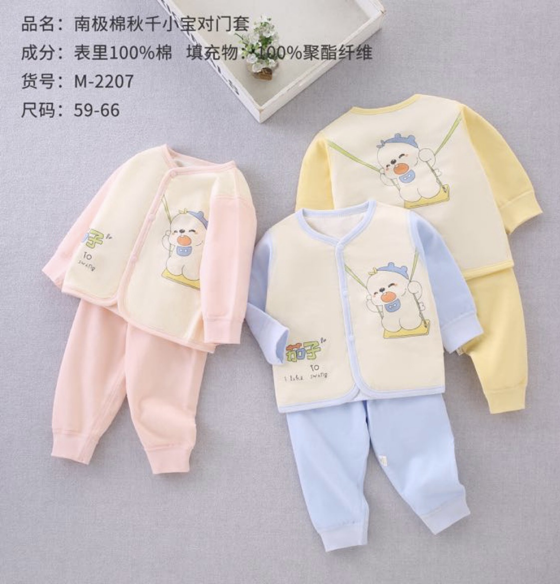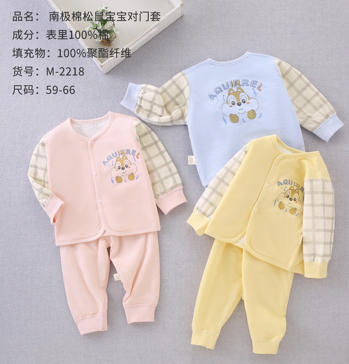 24新款婴幼儿秋冬40克薄面对门圆领两件套舒适男女宝宝外出服套装