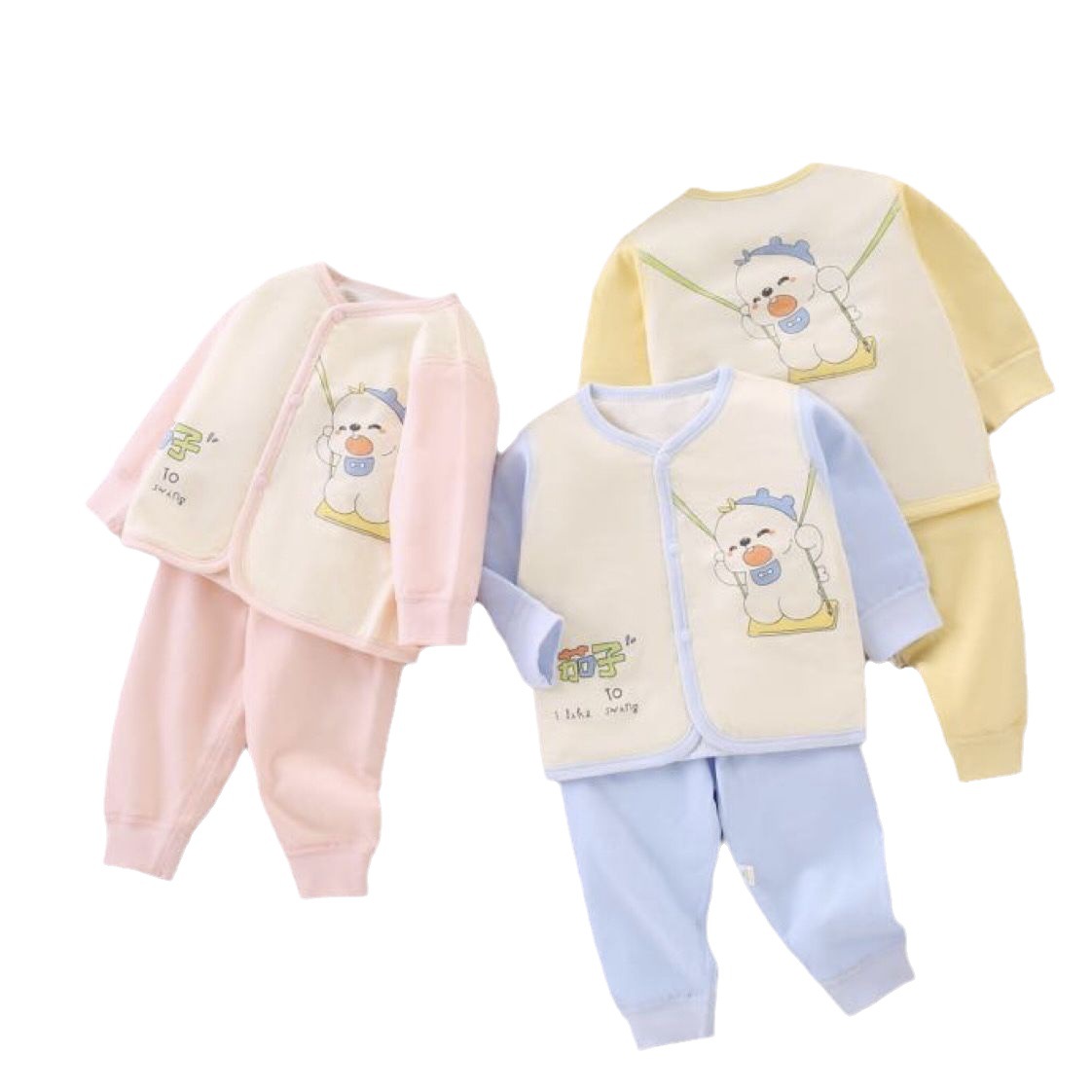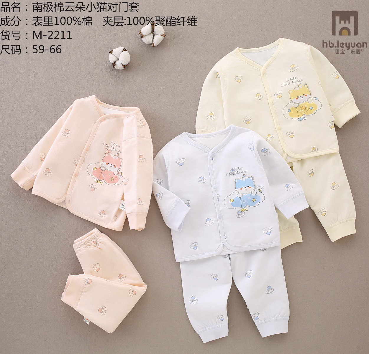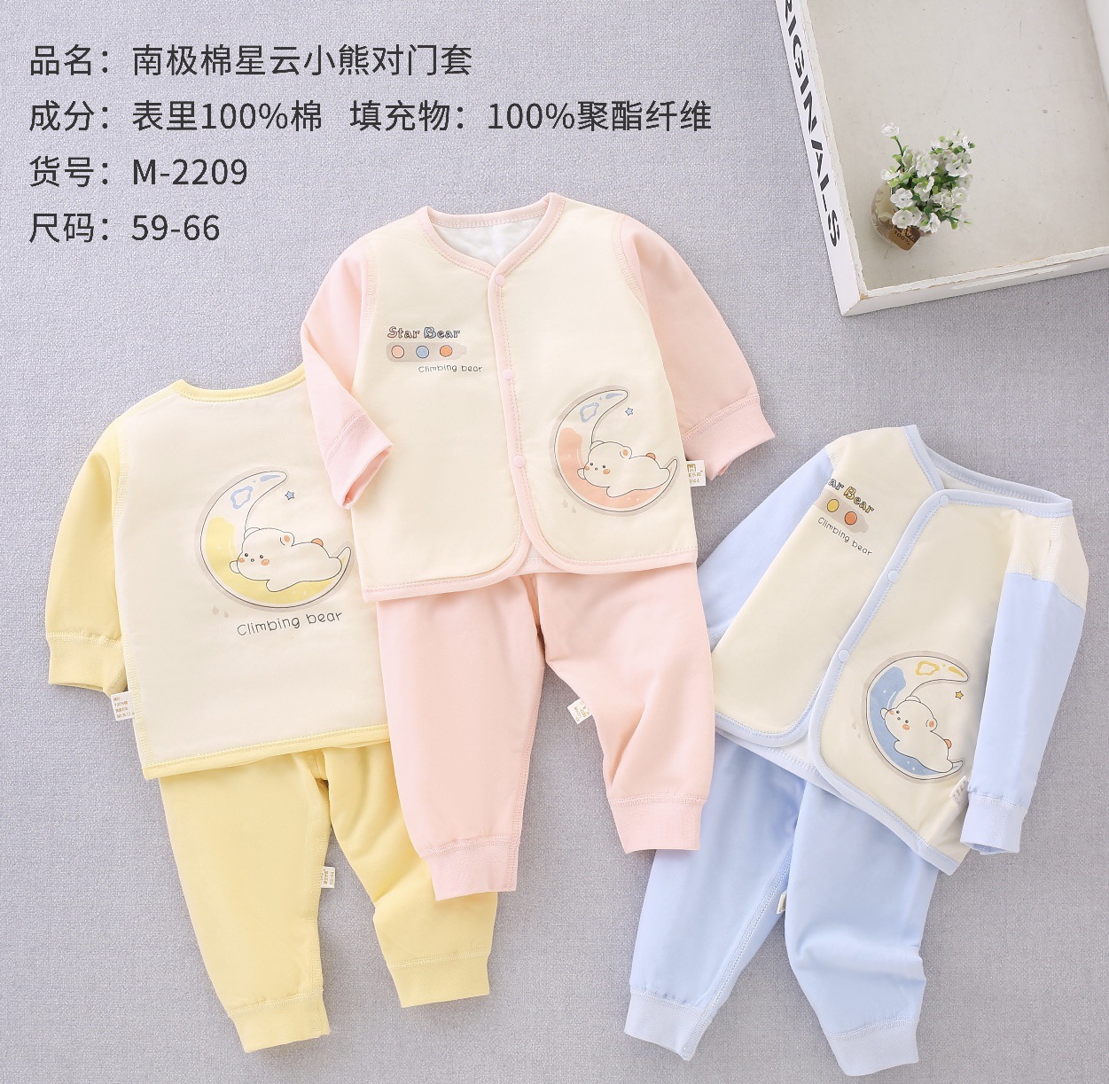 24新款婴幼儿秋冬40克薄面对门圆领两件套舒适男女宝宝外出服套装