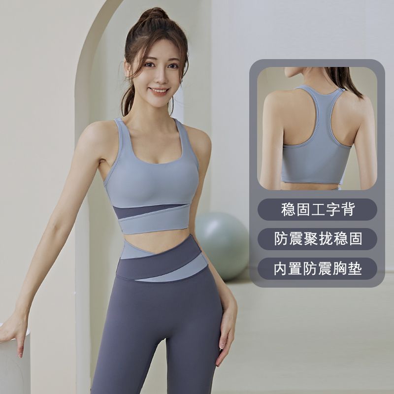 瑜伽服女夏2024新款带胸垫背心运动健身专业普拉提训练服上衣套装