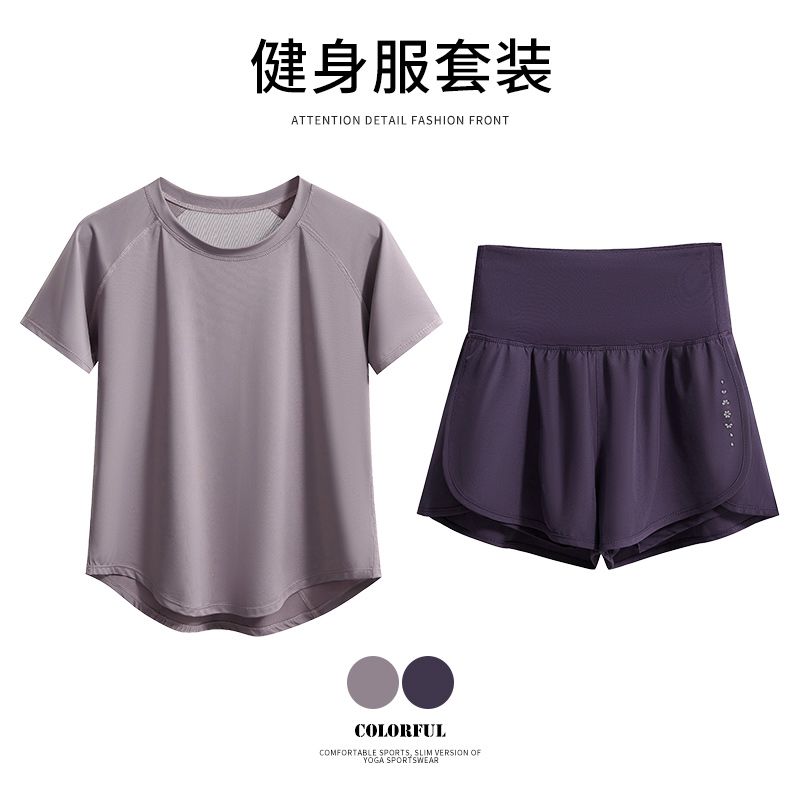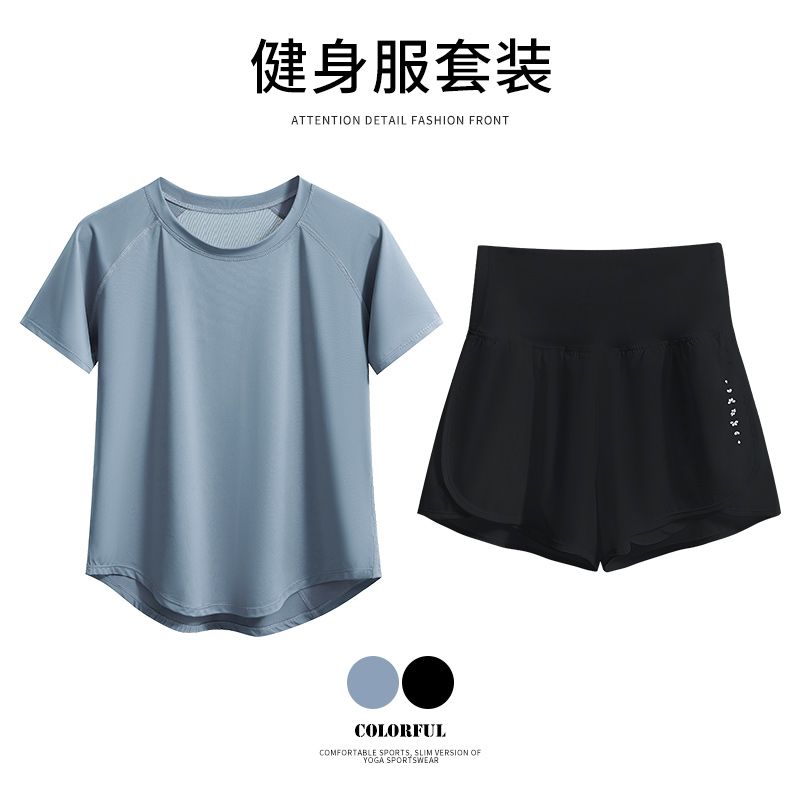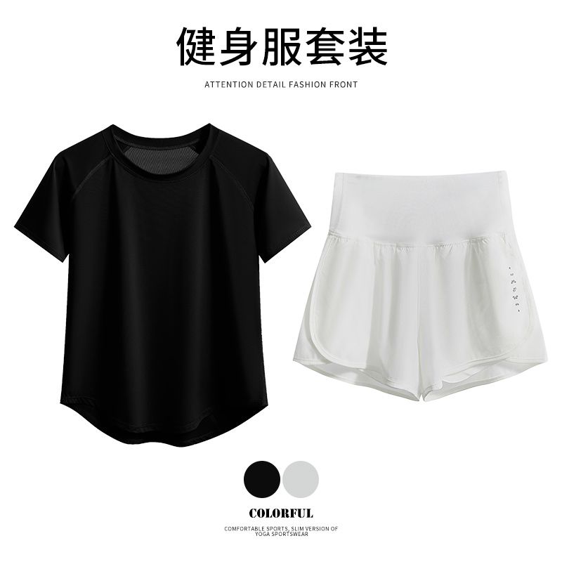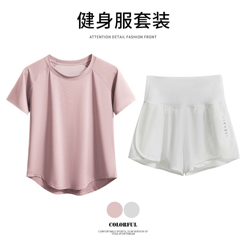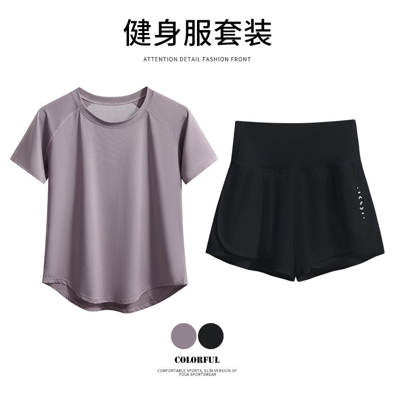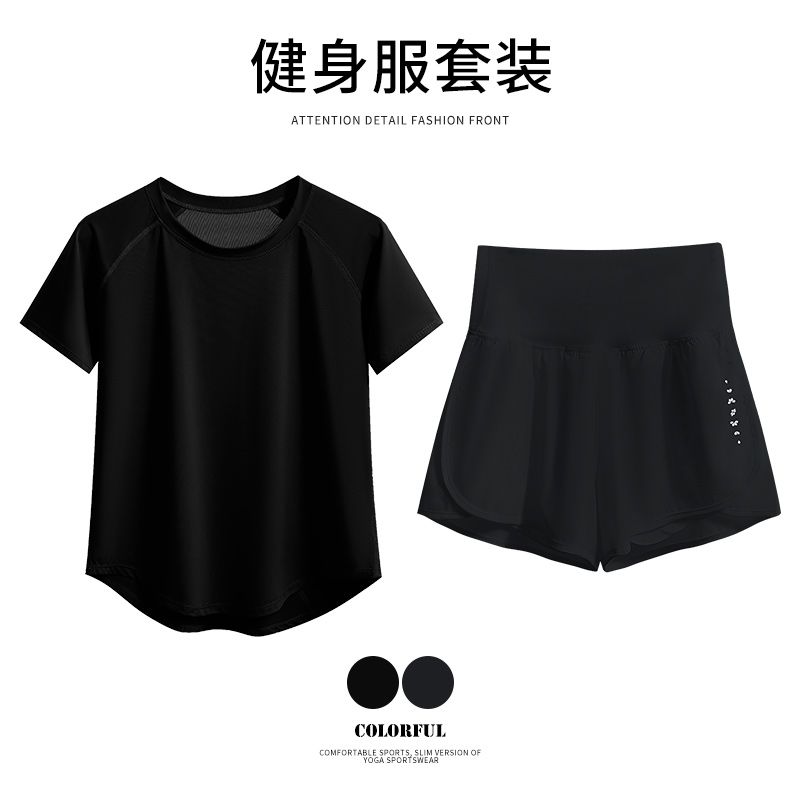 大码跑步健身运动套装速干衣套装夏季运动薄款宽松瑜伽短袖运动服