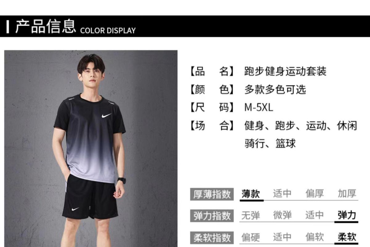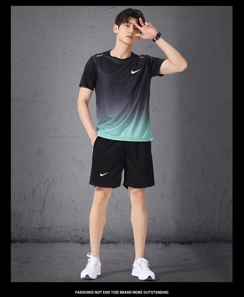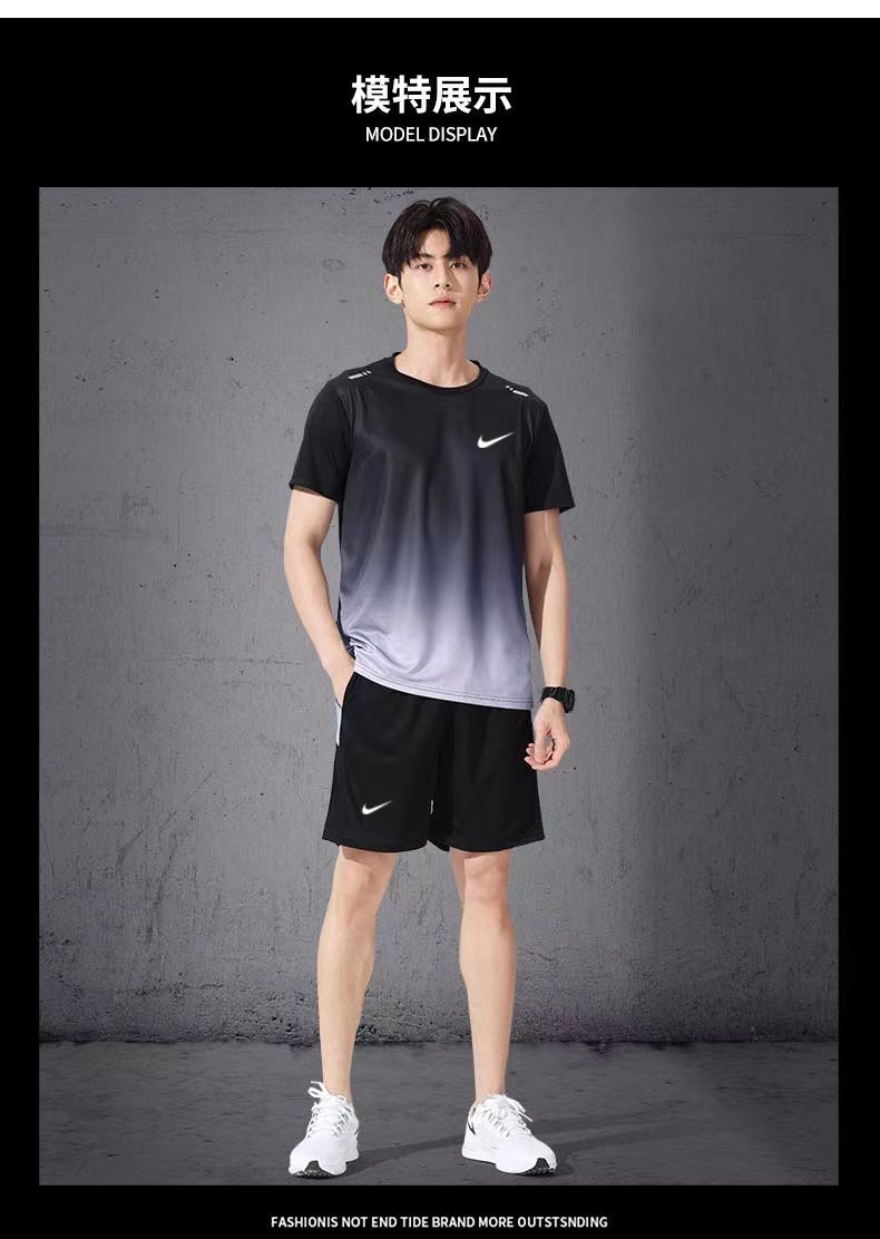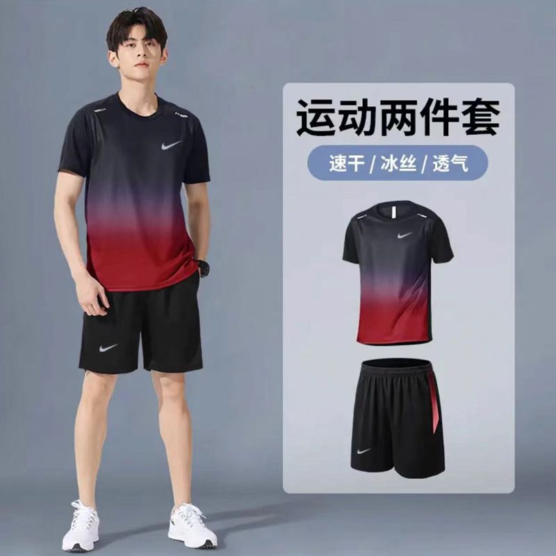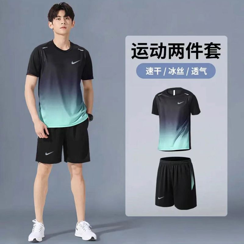 运动服套装跑步短袖夏季篮球健身衣服训练短裤透气速干两件套装