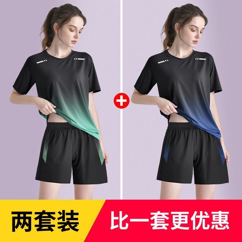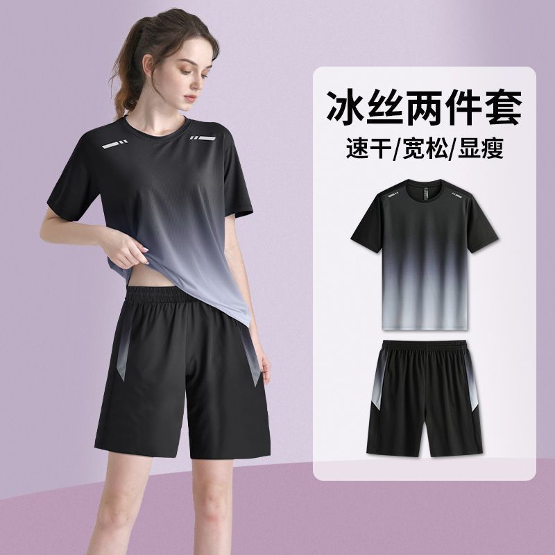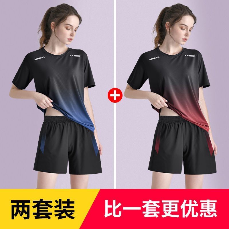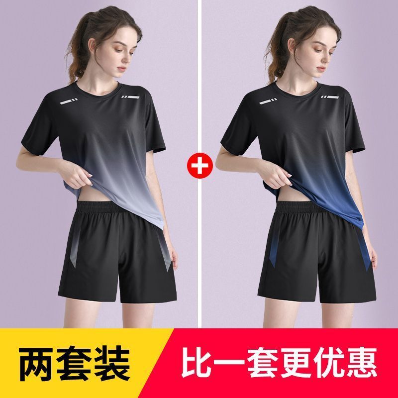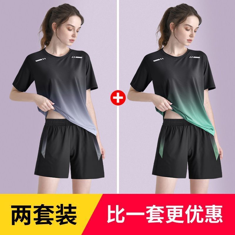 运动服套装女跑步速干短袖瑜伽健身训练夏季冰丝大码宽松t恤上衣