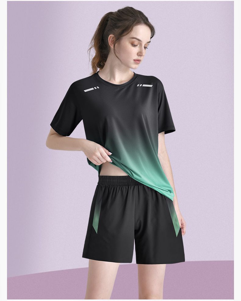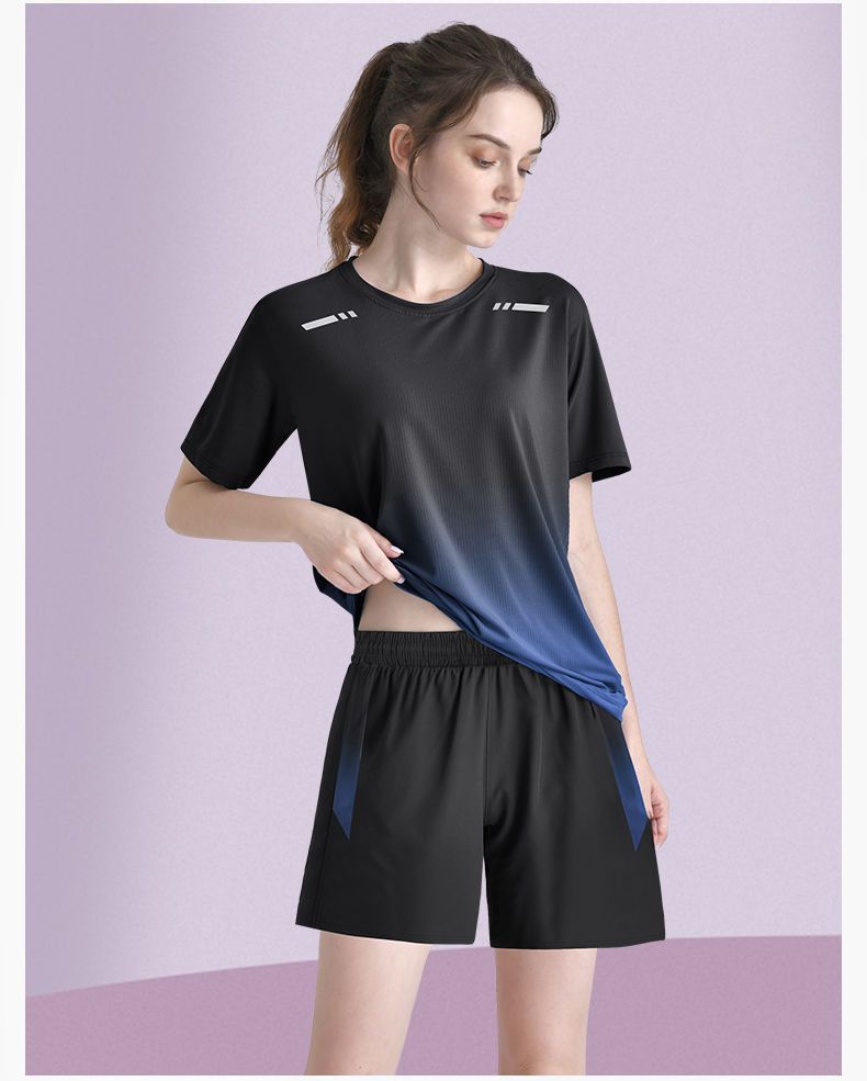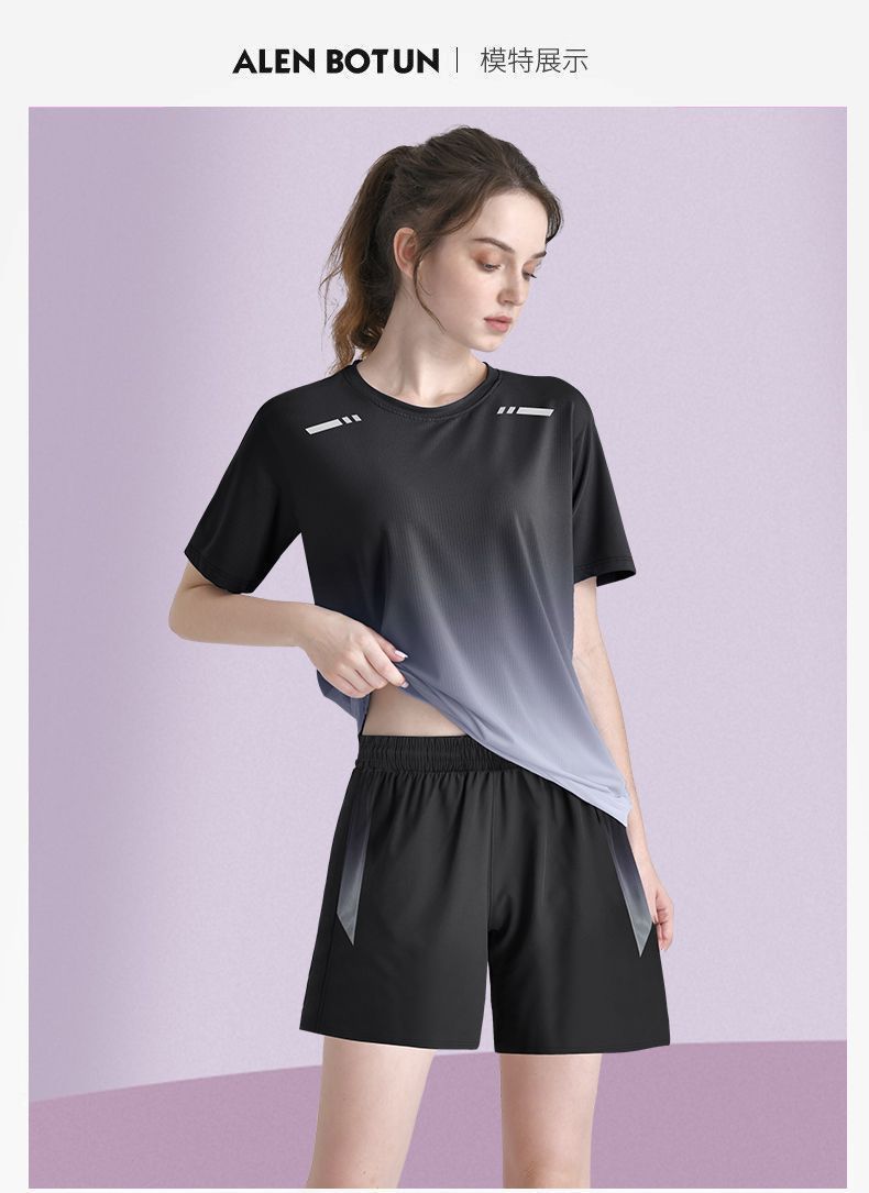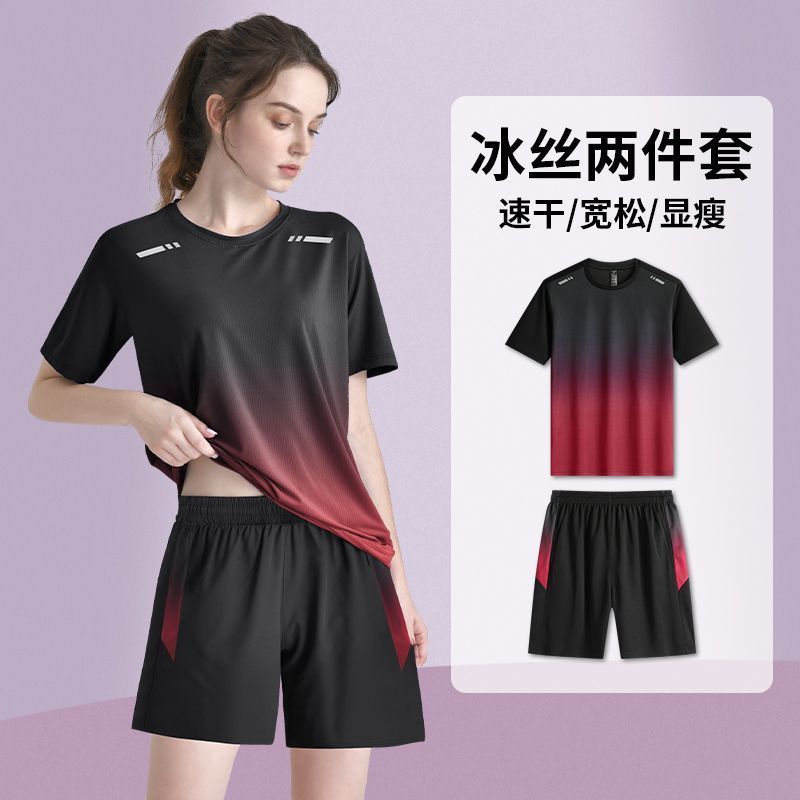 运动服套装女跑步速干短袖瑜伽健身训练夏季冰丝大码宽松t恤上衣