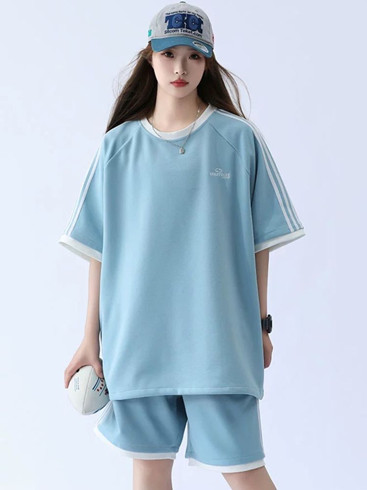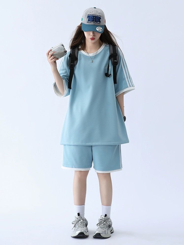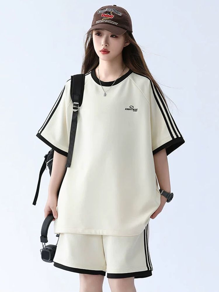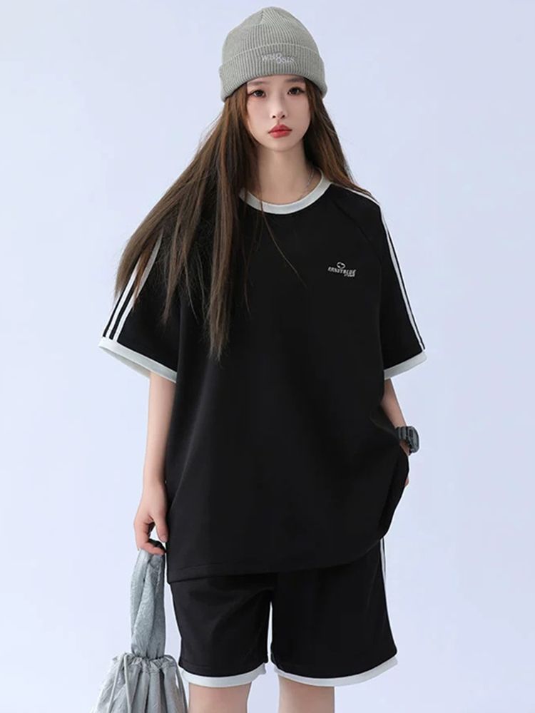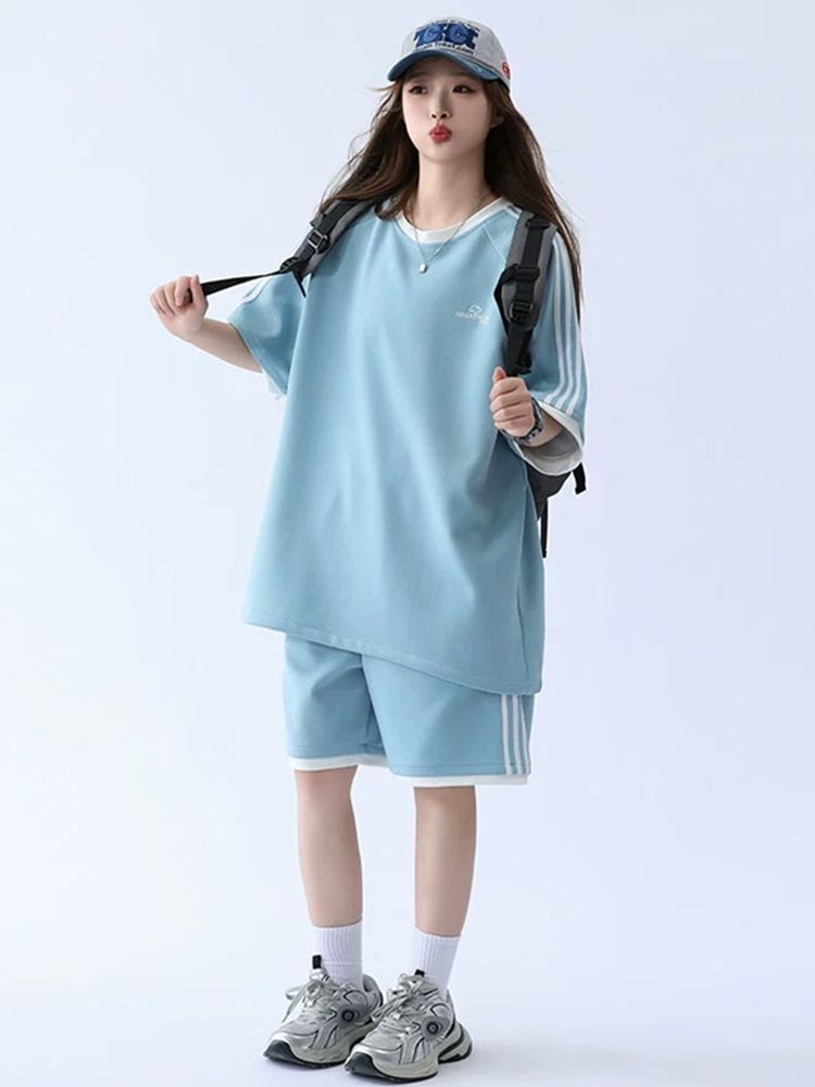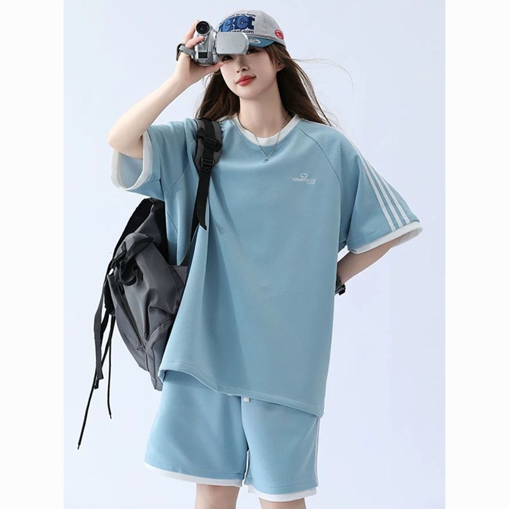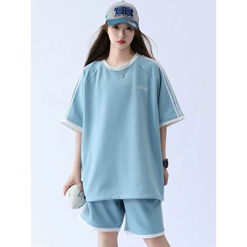 运动套装女夏季ins潮学生韩版宽松时尚短袖短裤休闲两件套跑步服