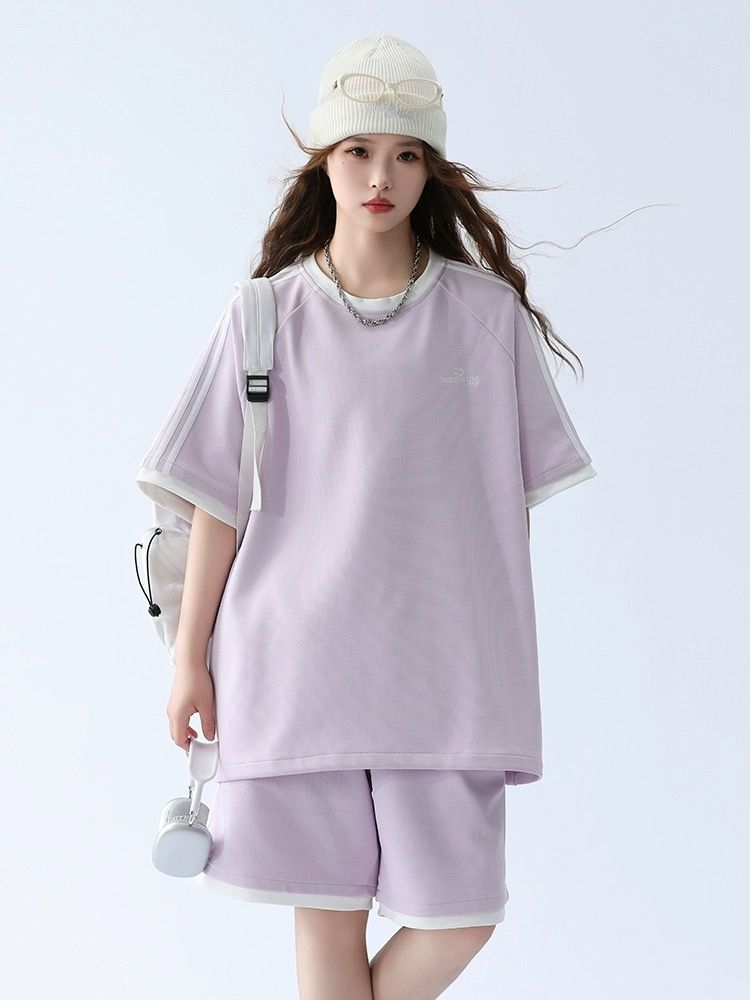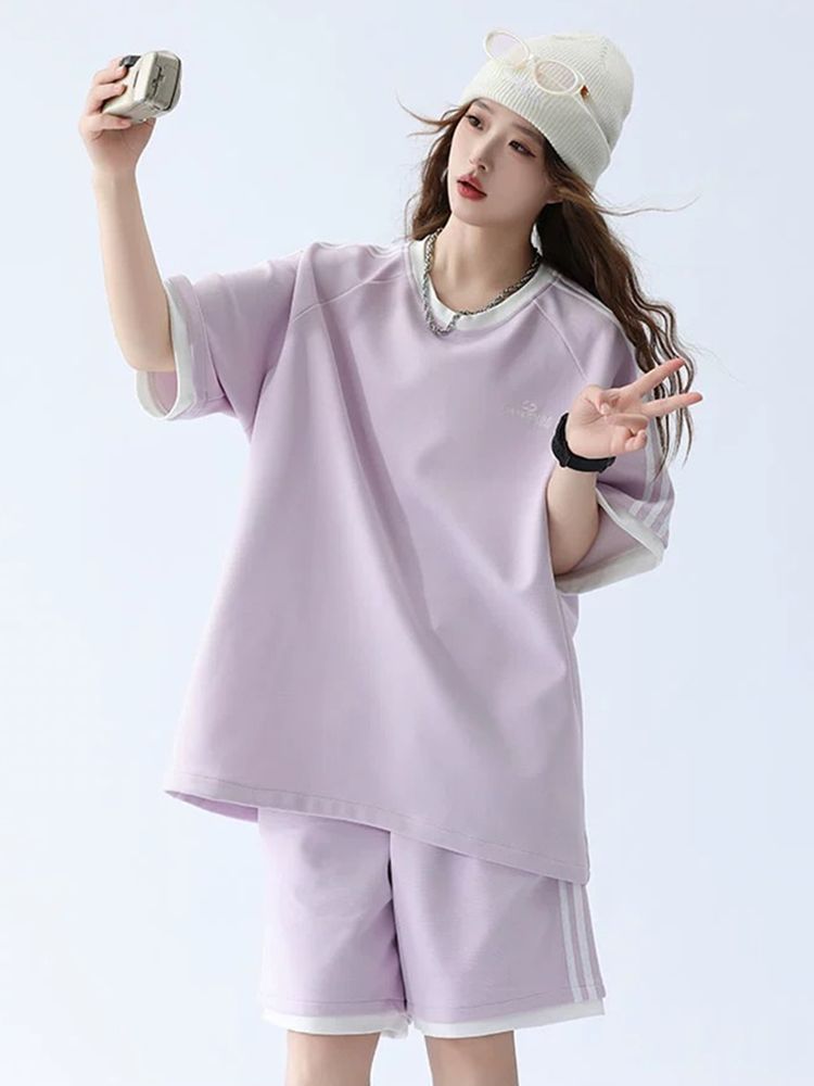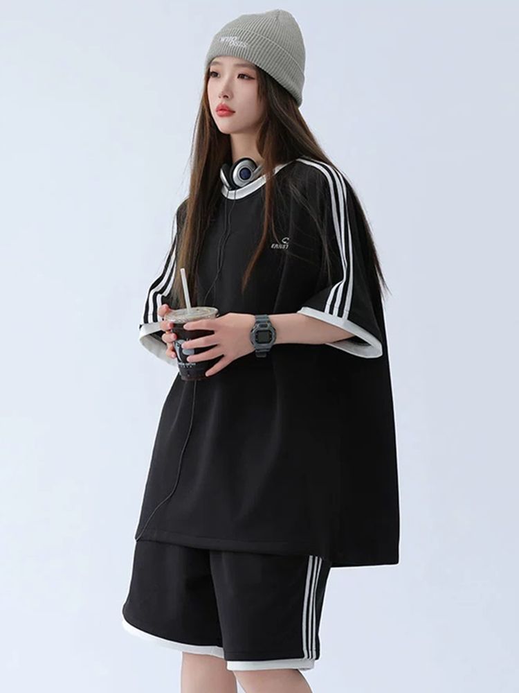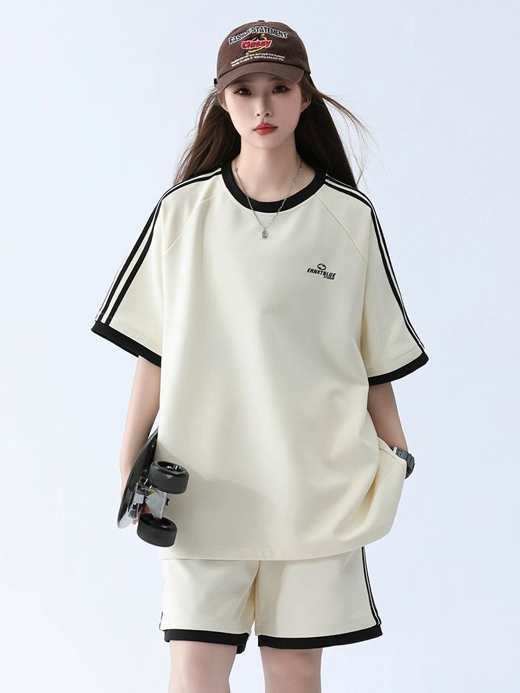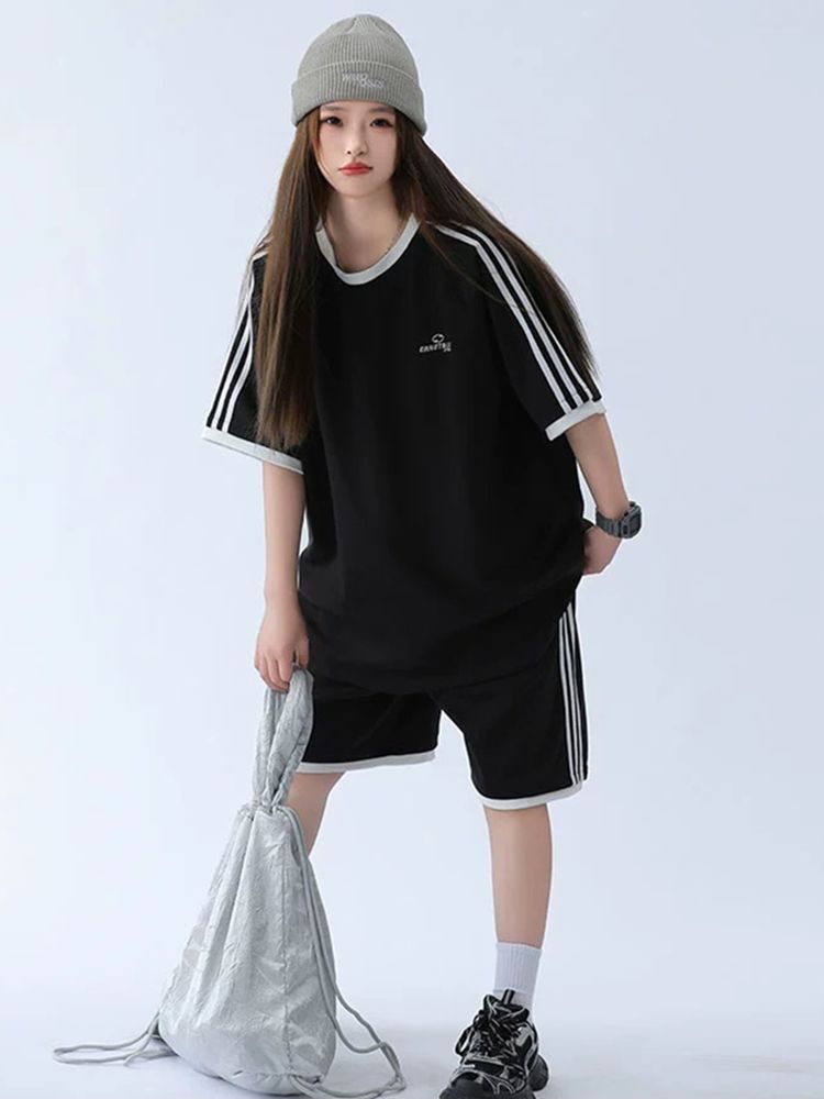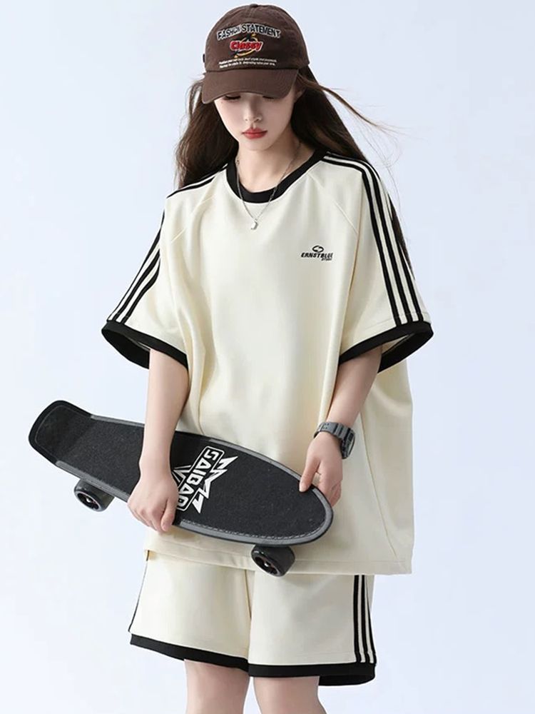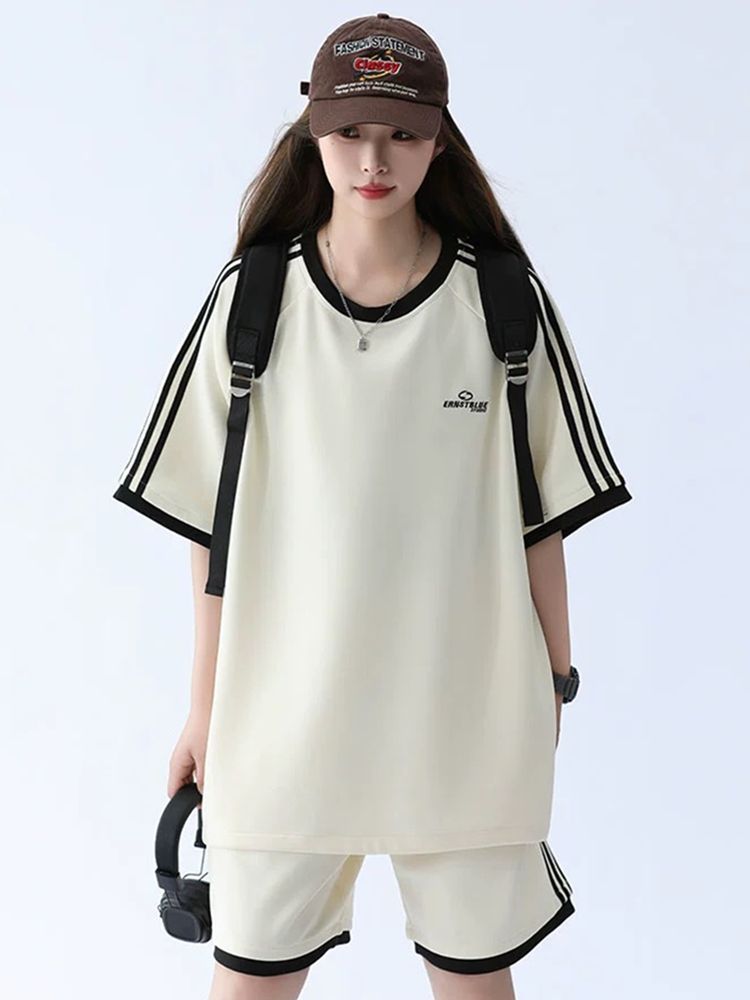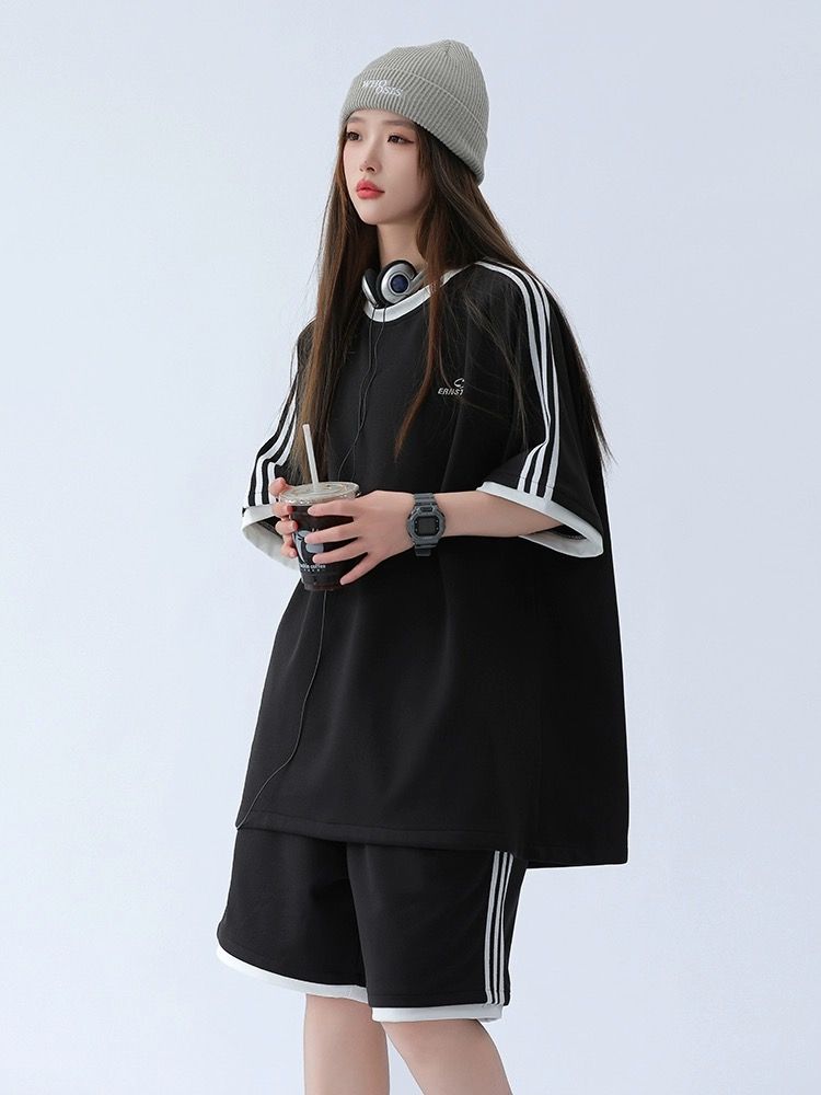 运动套装女夏季ins潮学生韩版宽松时尚短袖短裤休闲两件套跑步服