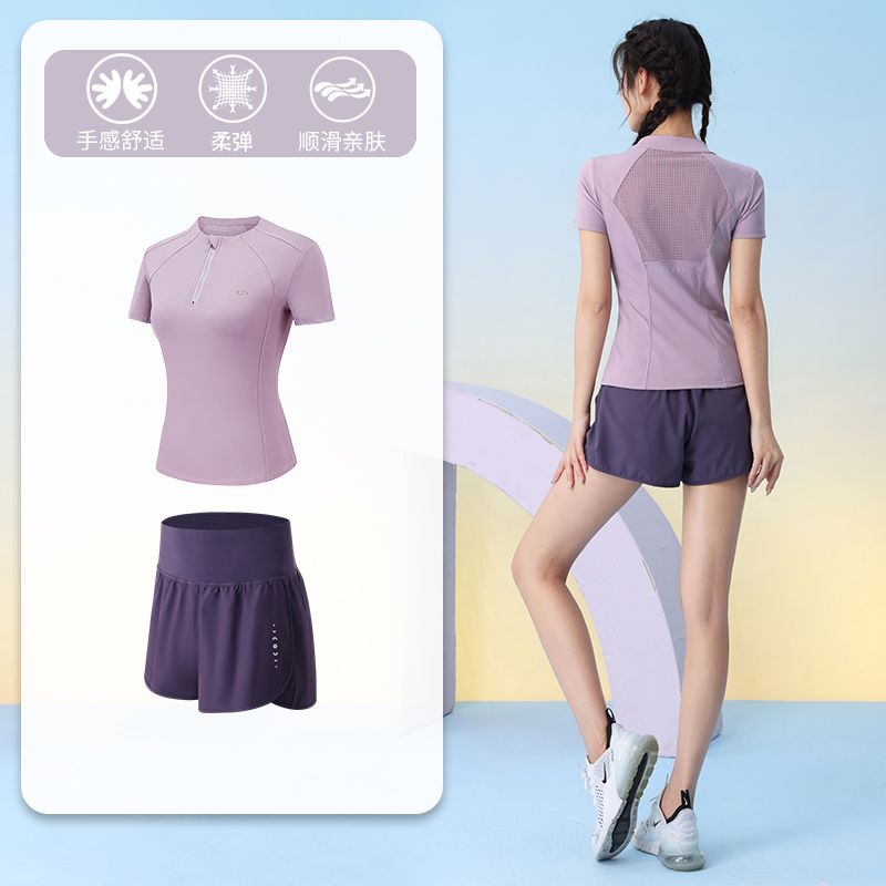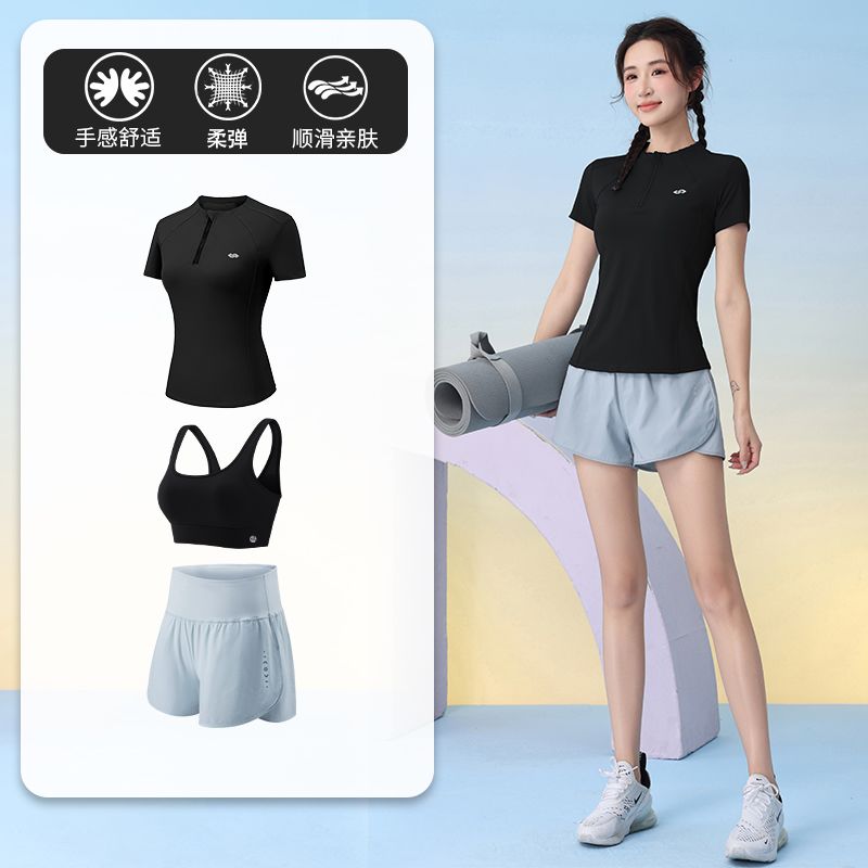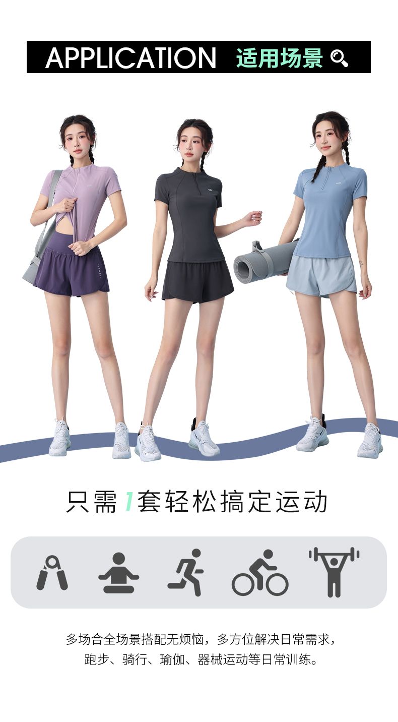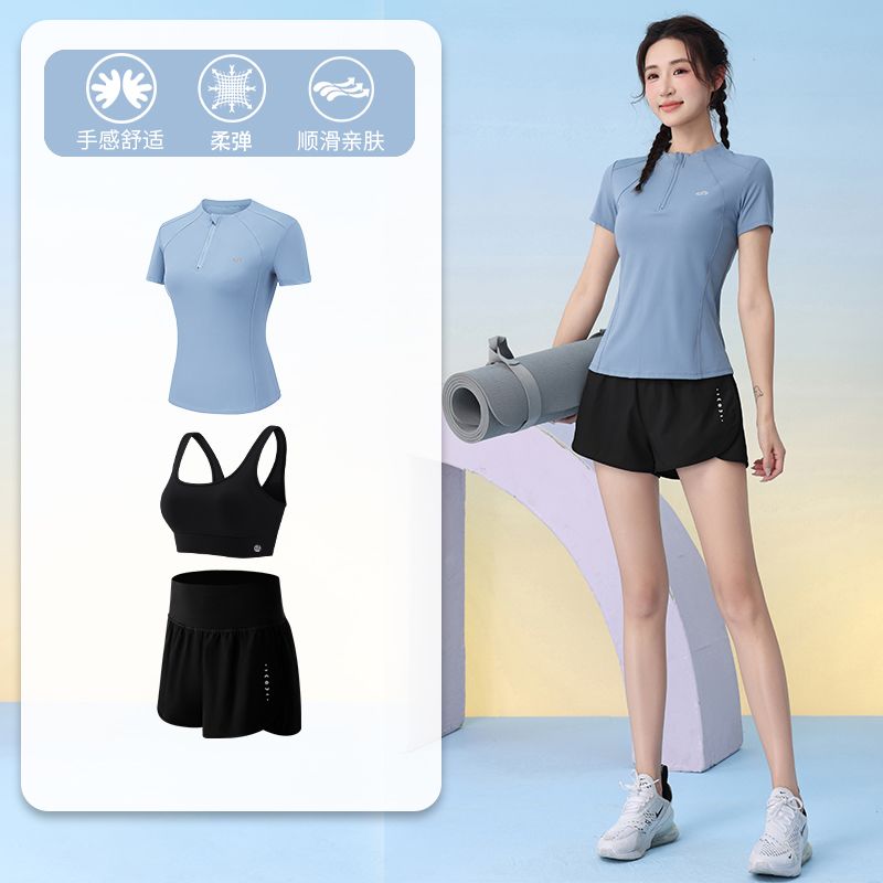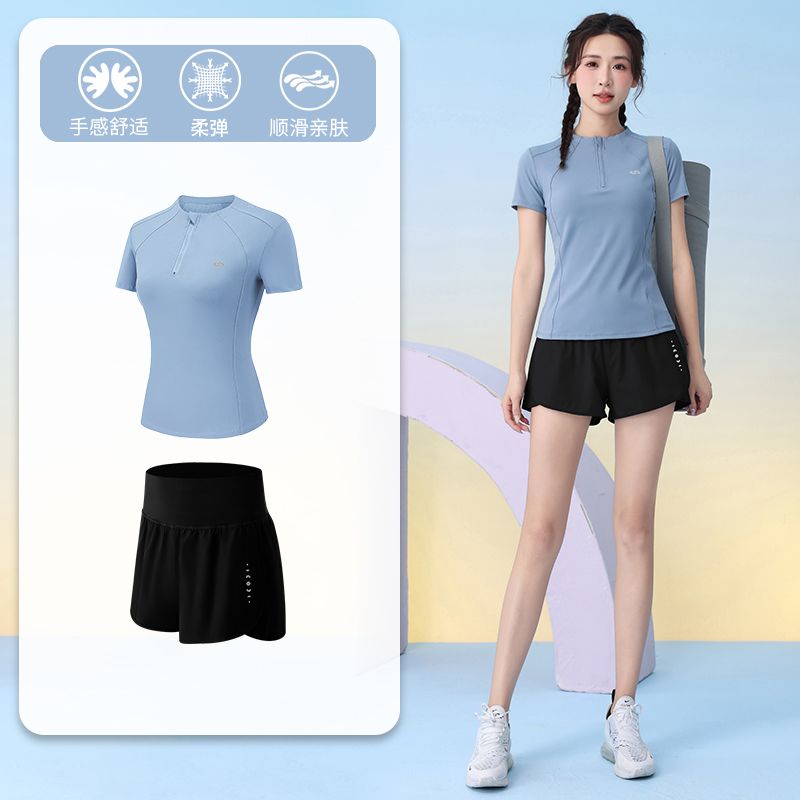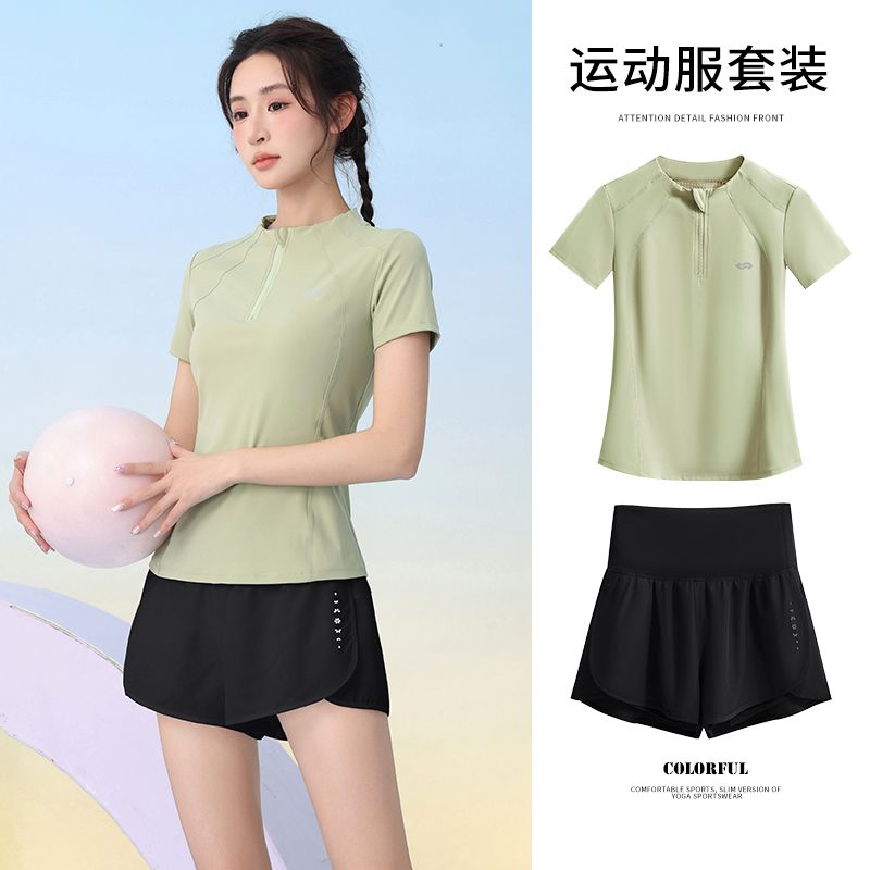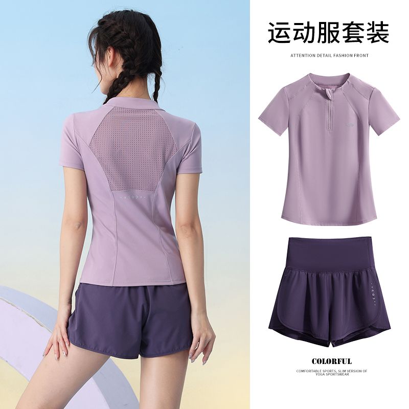 夏季薄款瑜伽服速干透气短袖健身服女户外专业跑步运动套装训练服
