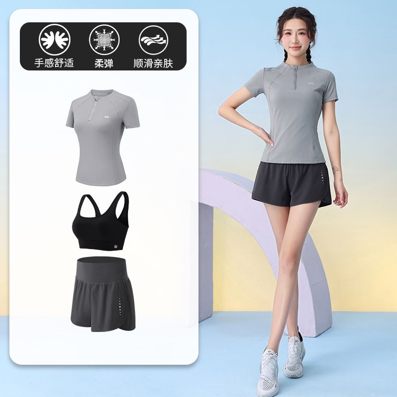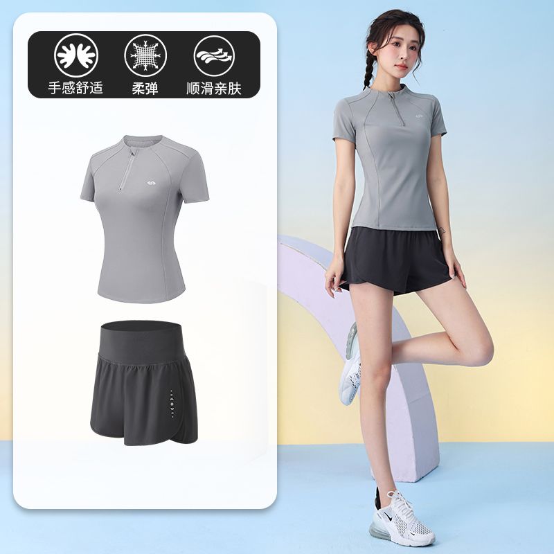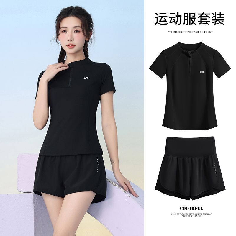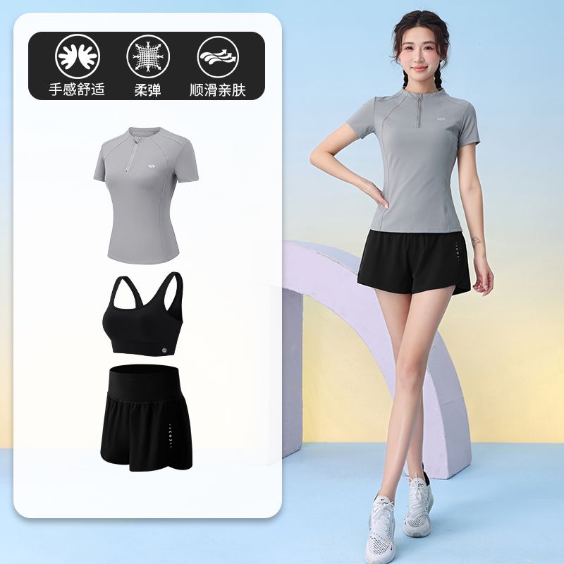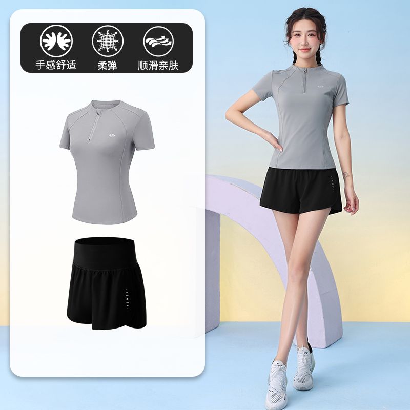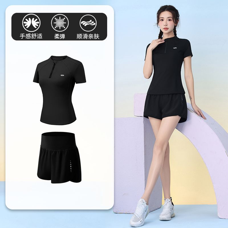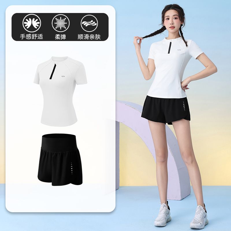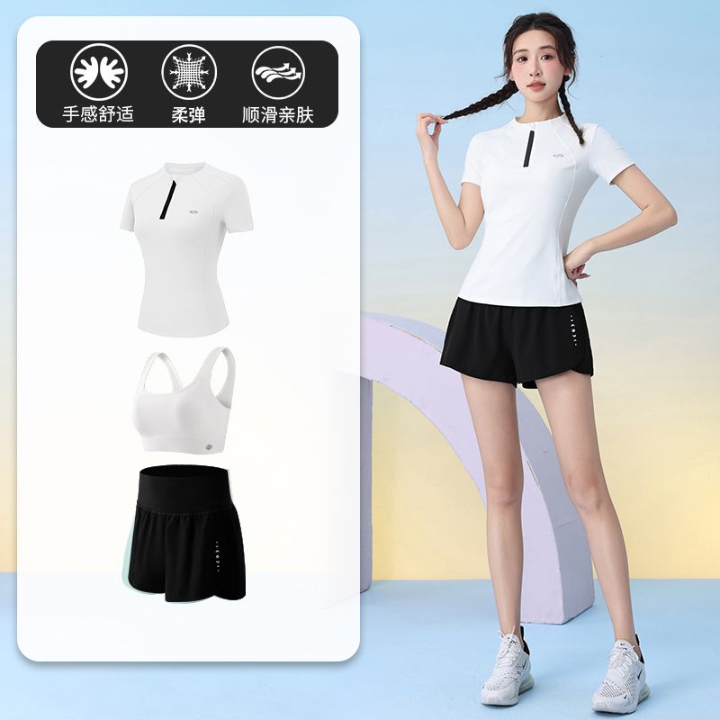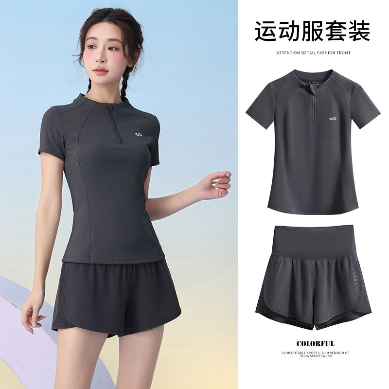 夏季薄款瑜伽服速干透气短袖健身服女户外专业跑步运动套装训练服