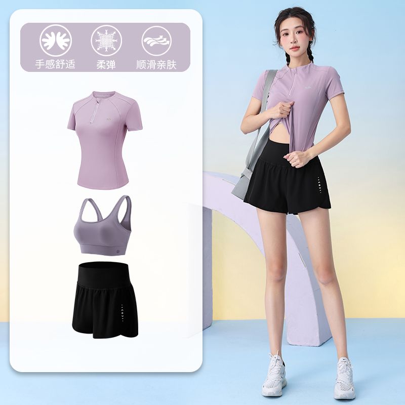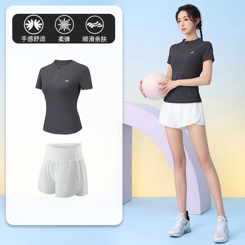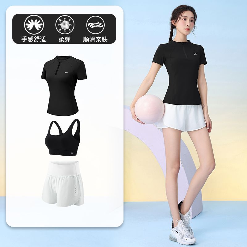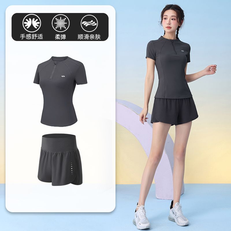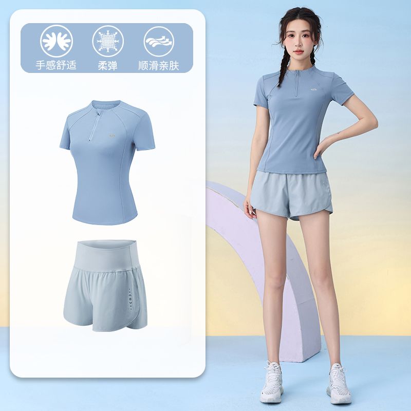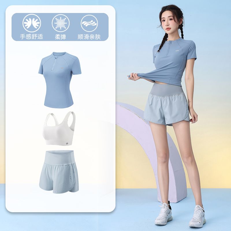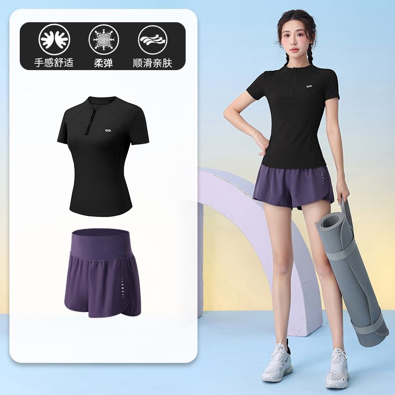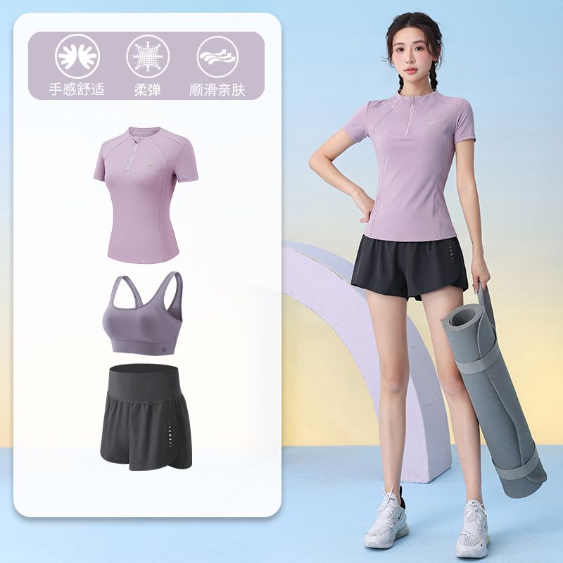 夏季薄款瑜伽服速干透气短袖健身服女户外专业跑步运动套装训练服