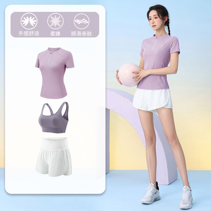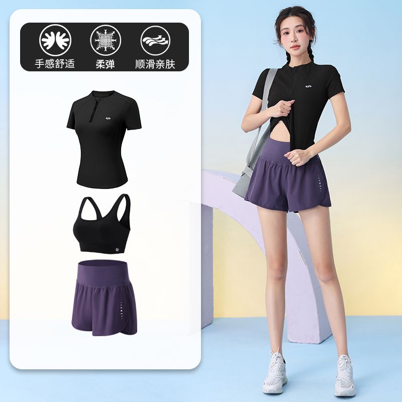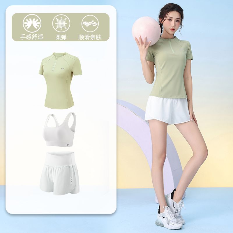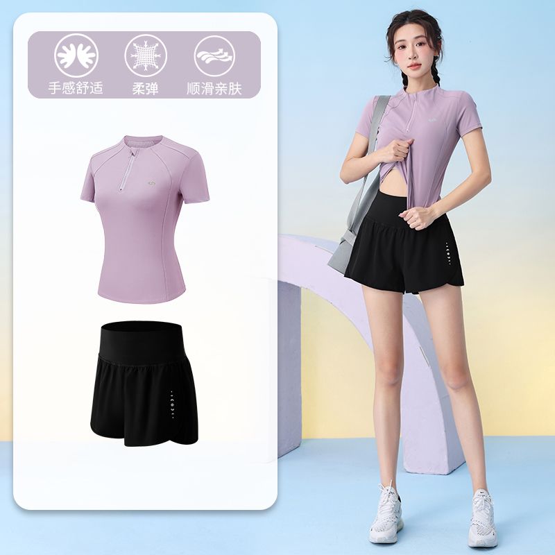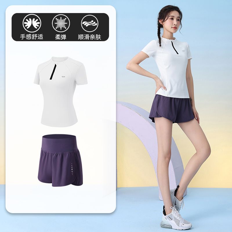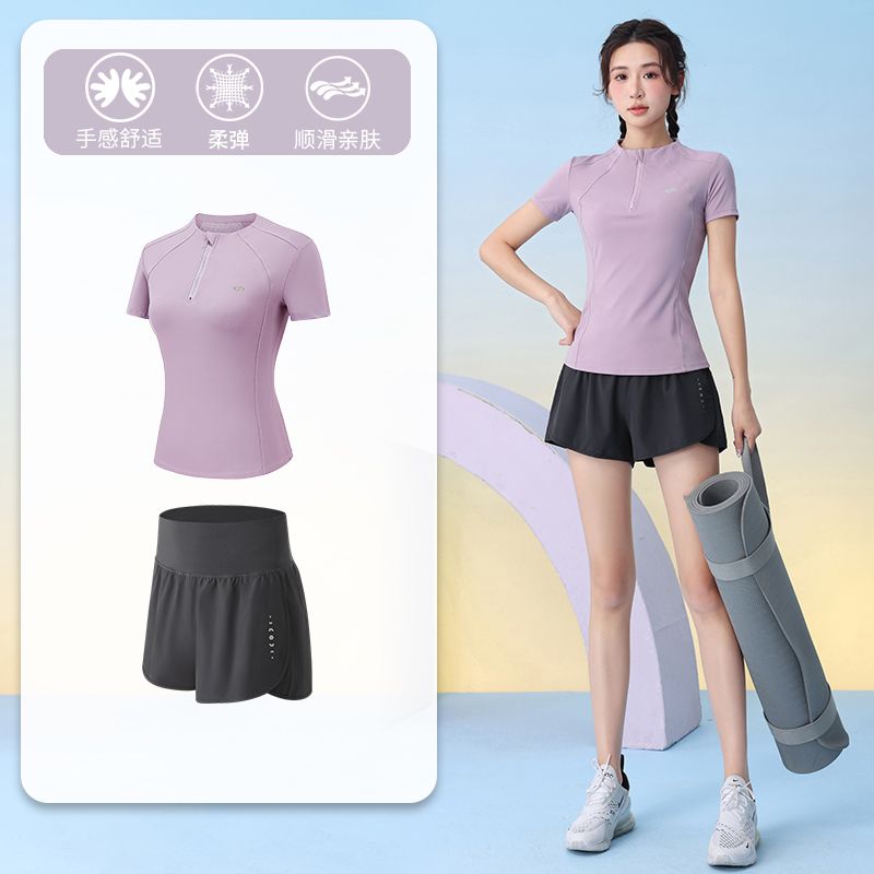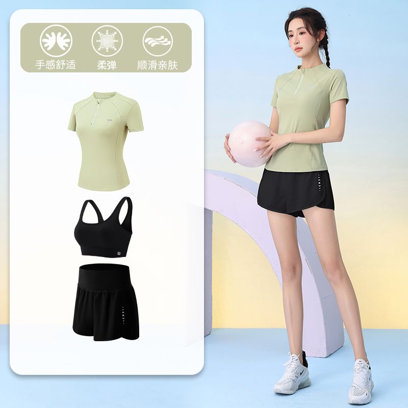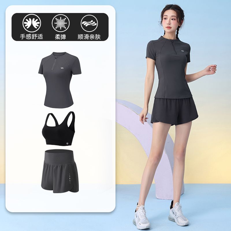 夏季薄款瑜伽服速干透气短袖健身服女户外专业跑步运动套装训练服