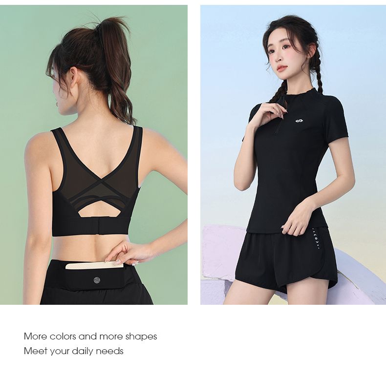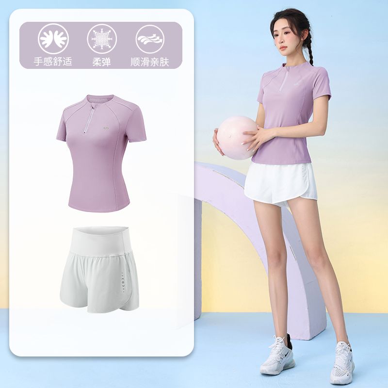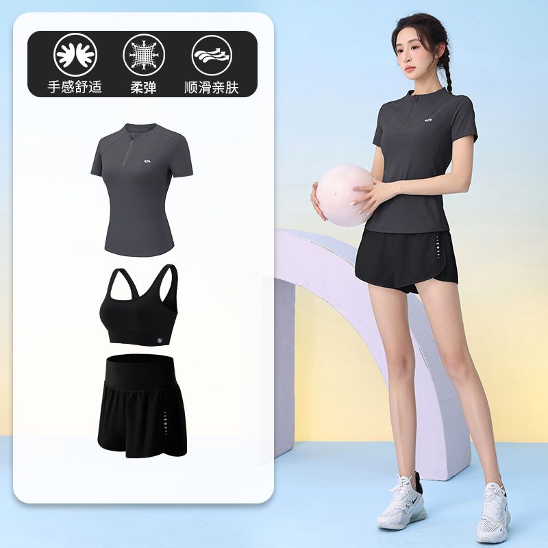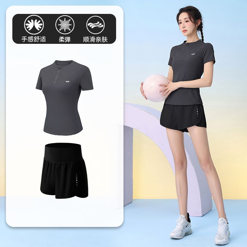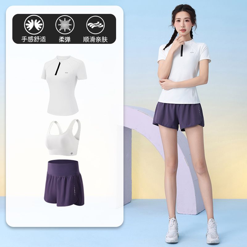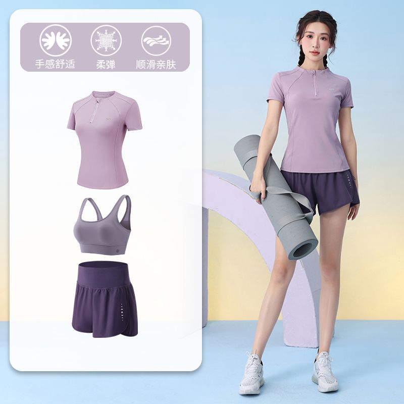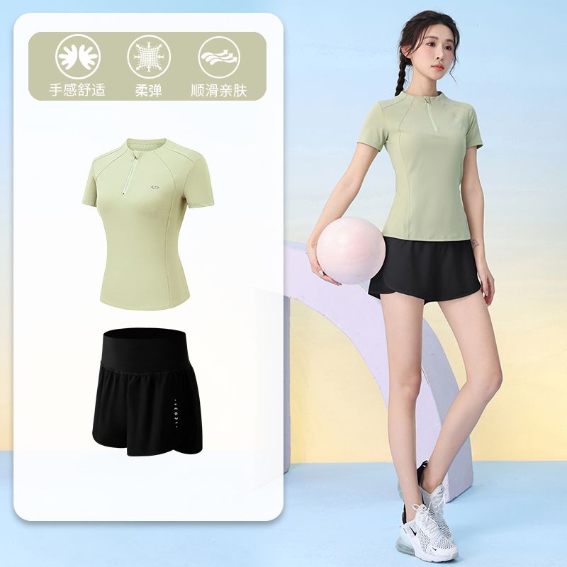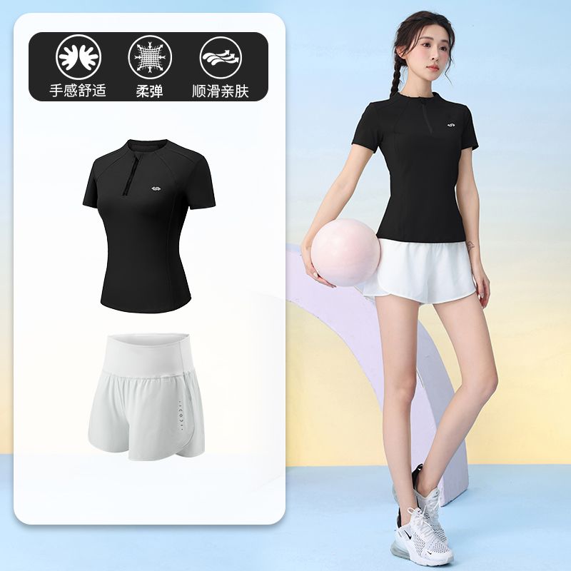 夏季薄款瑜伽服速干透气短袖健身服女户外专业跑步运动套装训练服
