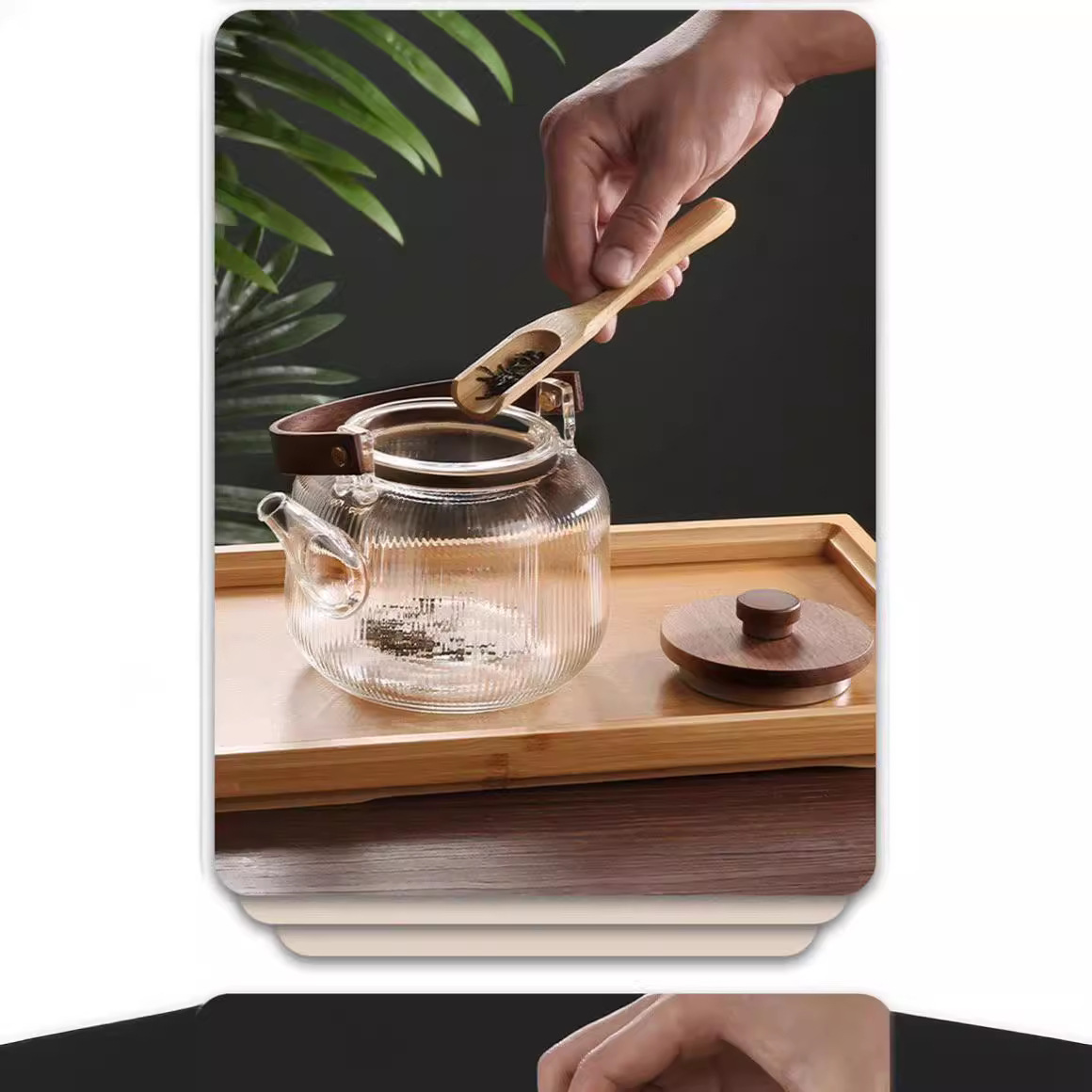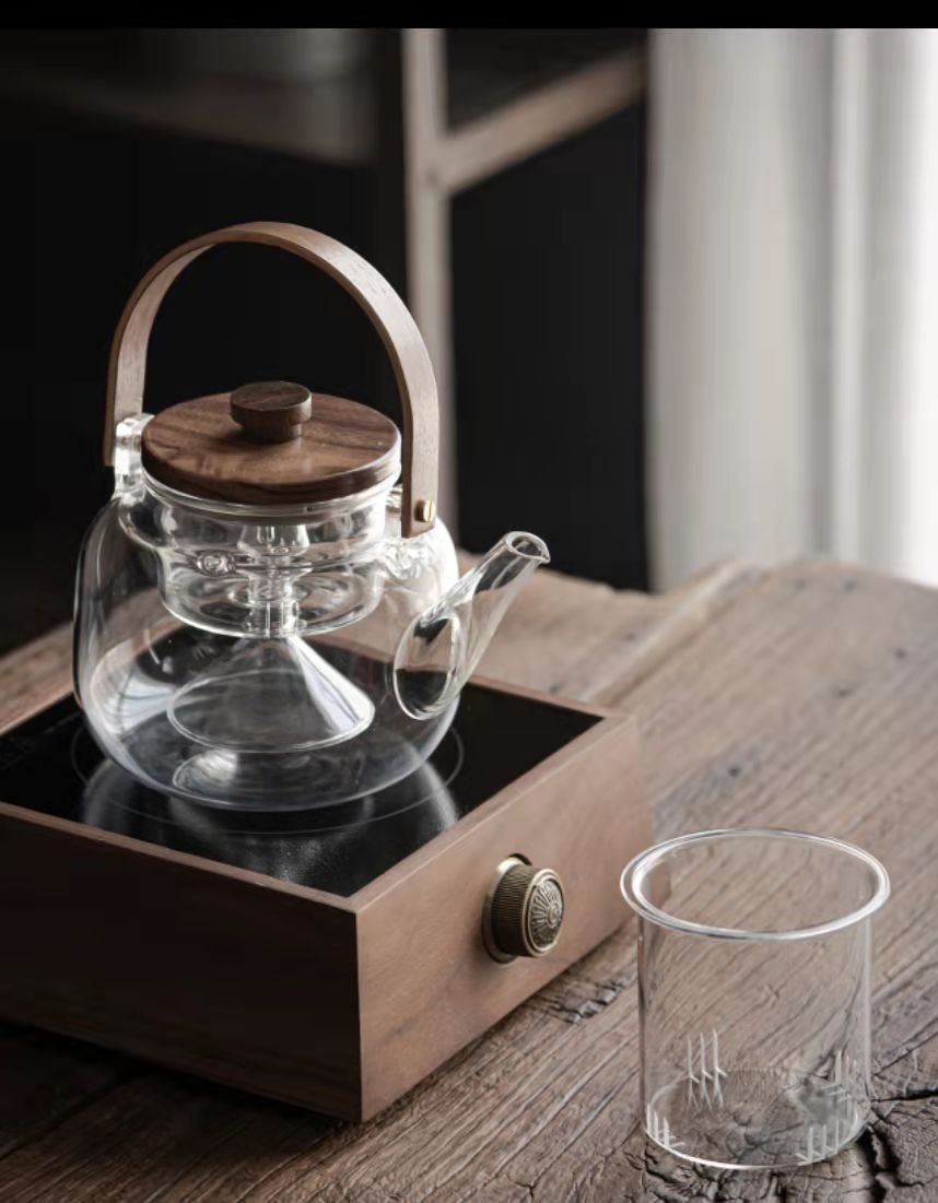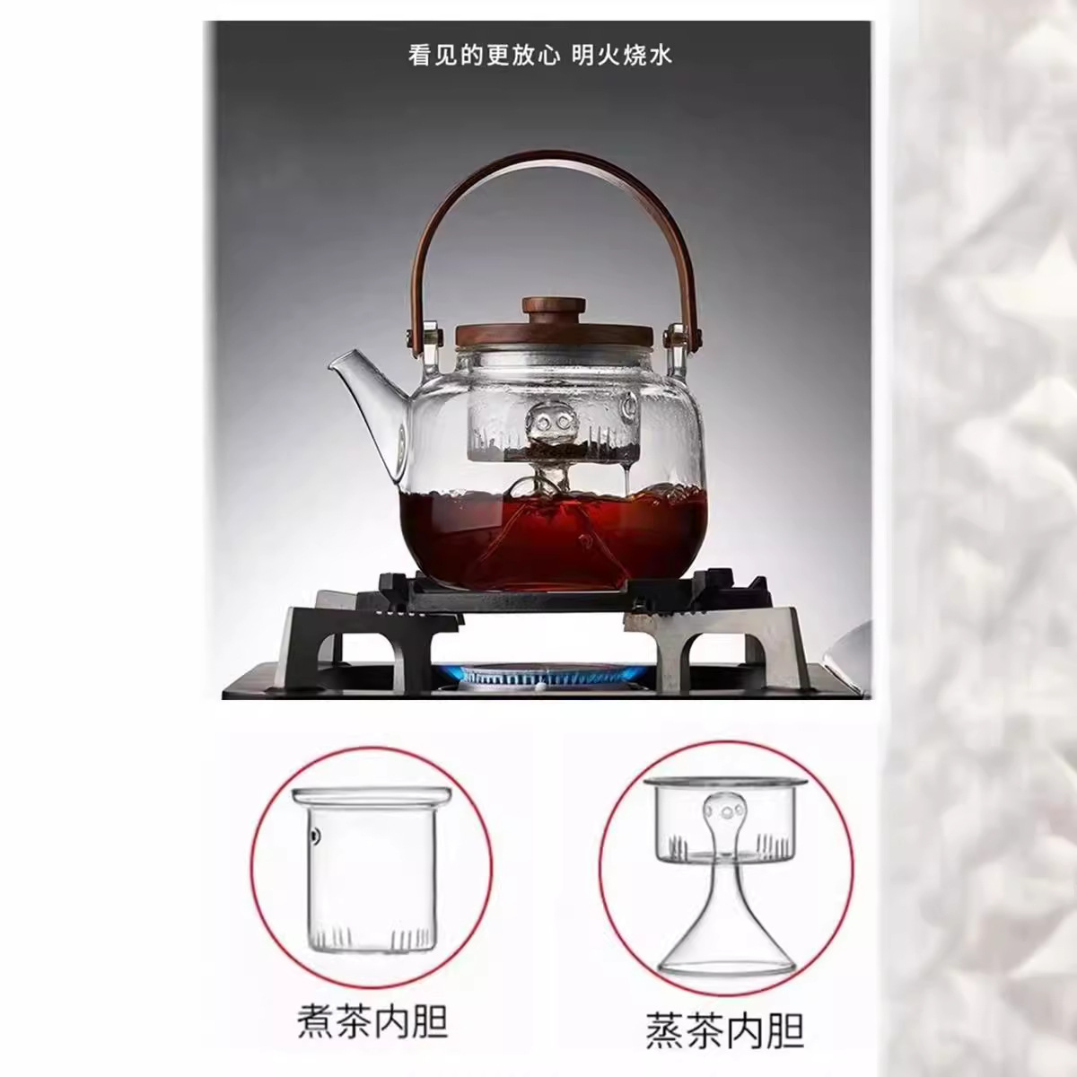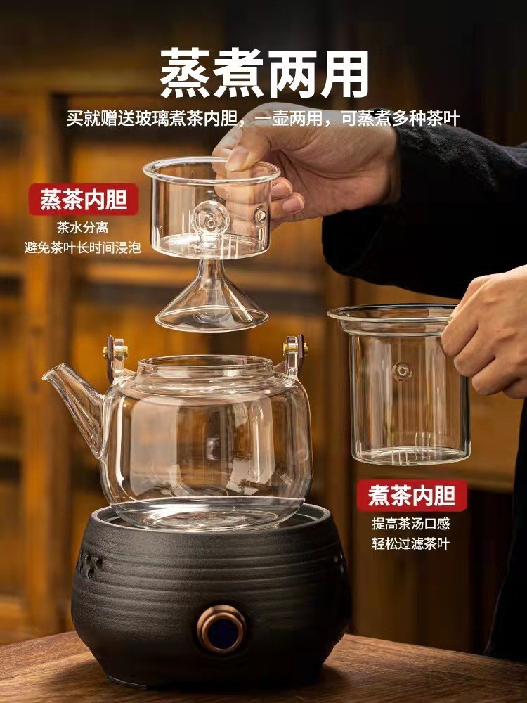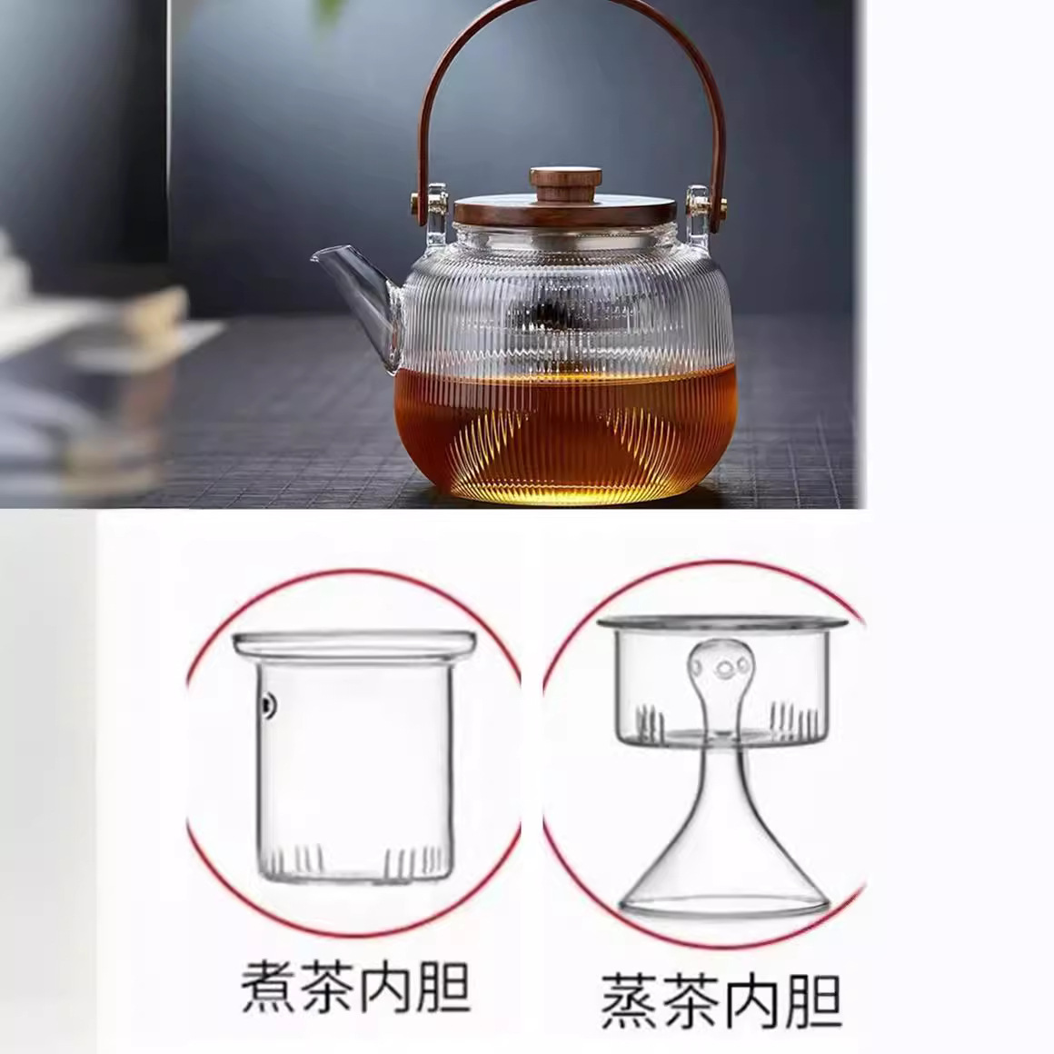 提梁壶高硼硅玻璃壶家用水果花茶茶壶玻璃条纹菊瓣壶耐热玻璃茶壶
