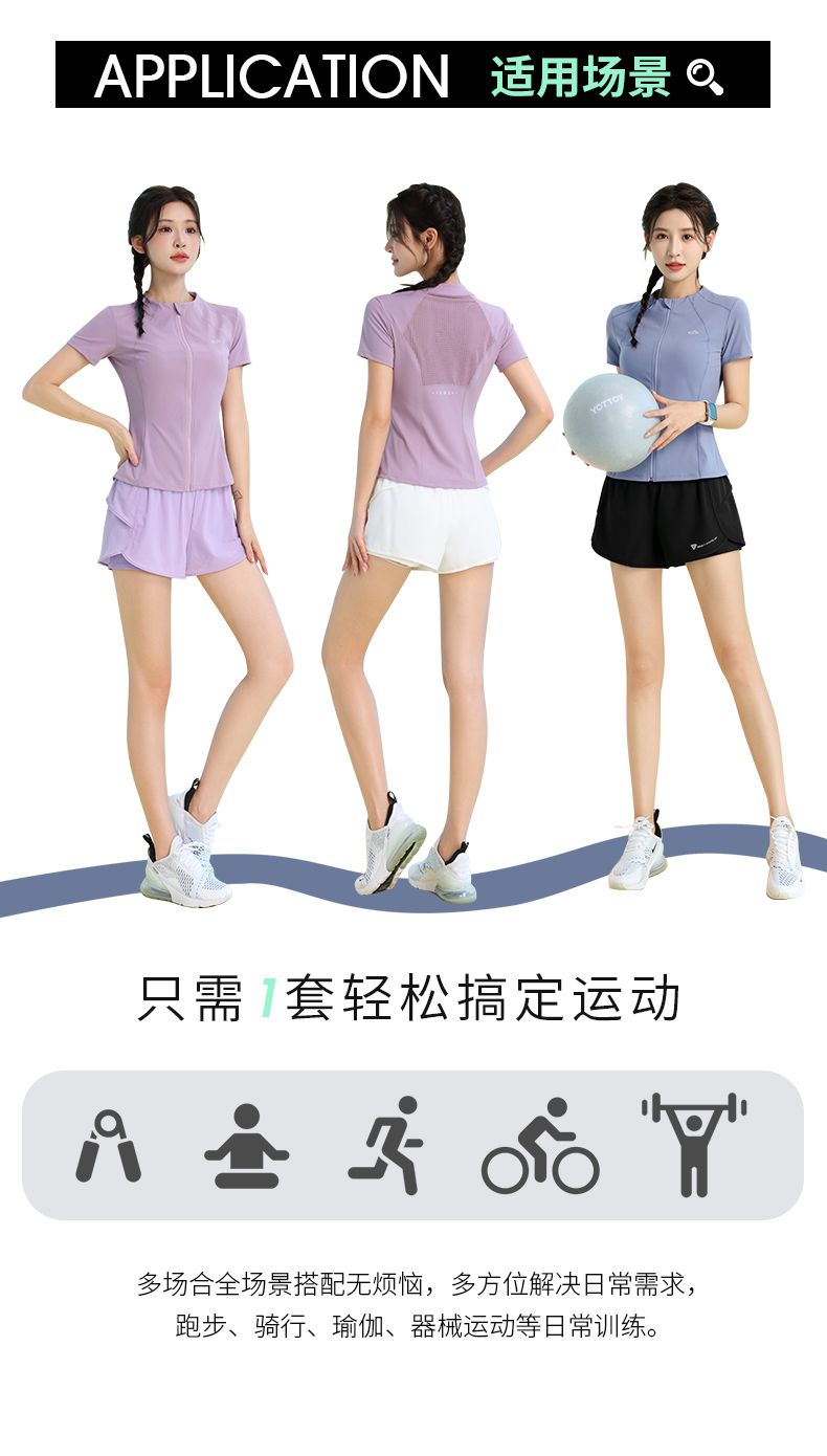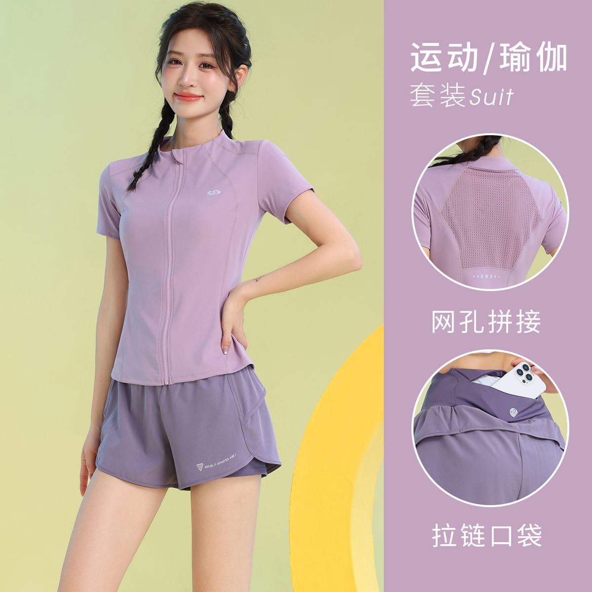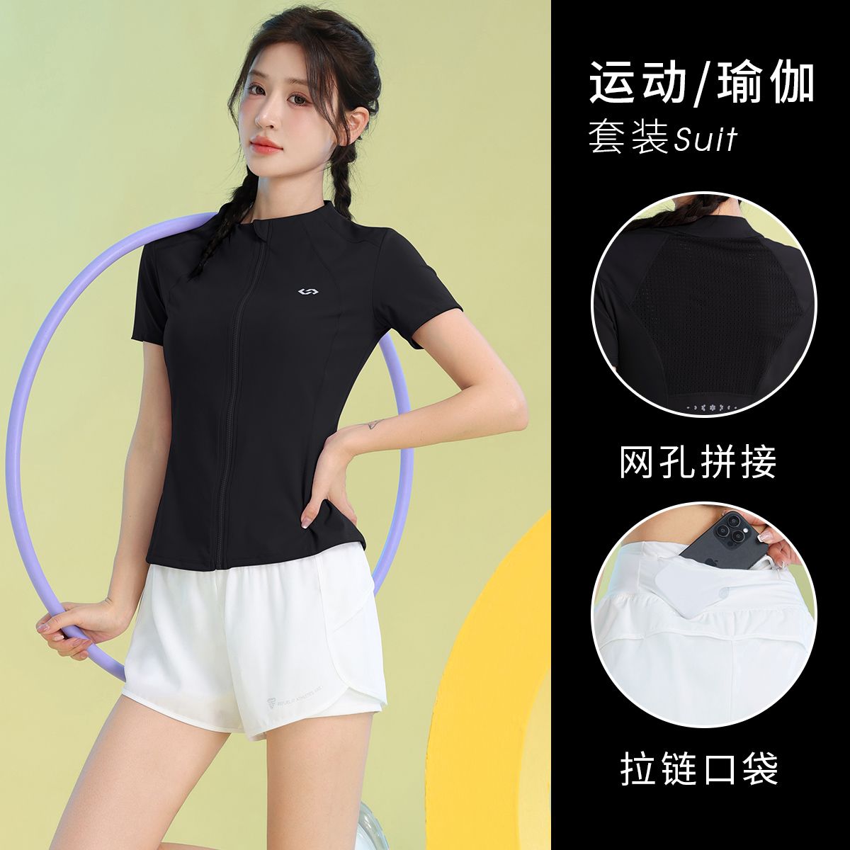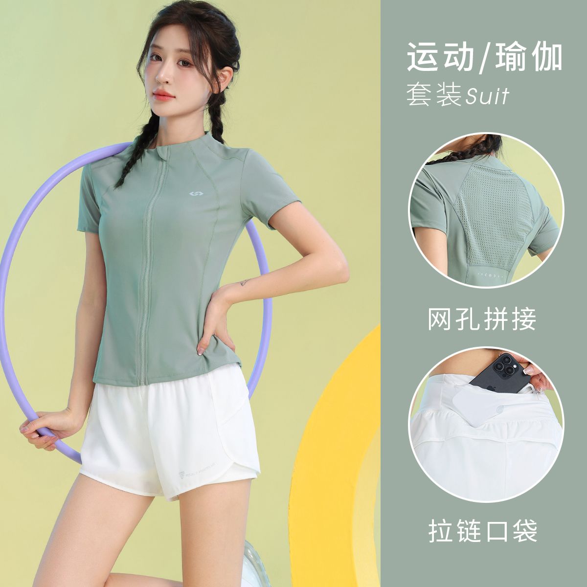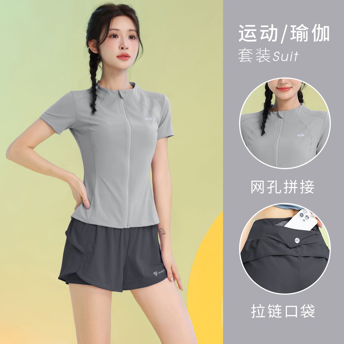 新款短袖开衫健身服夏季户外跑步运动套装女透气速干普拉提瑜伽服