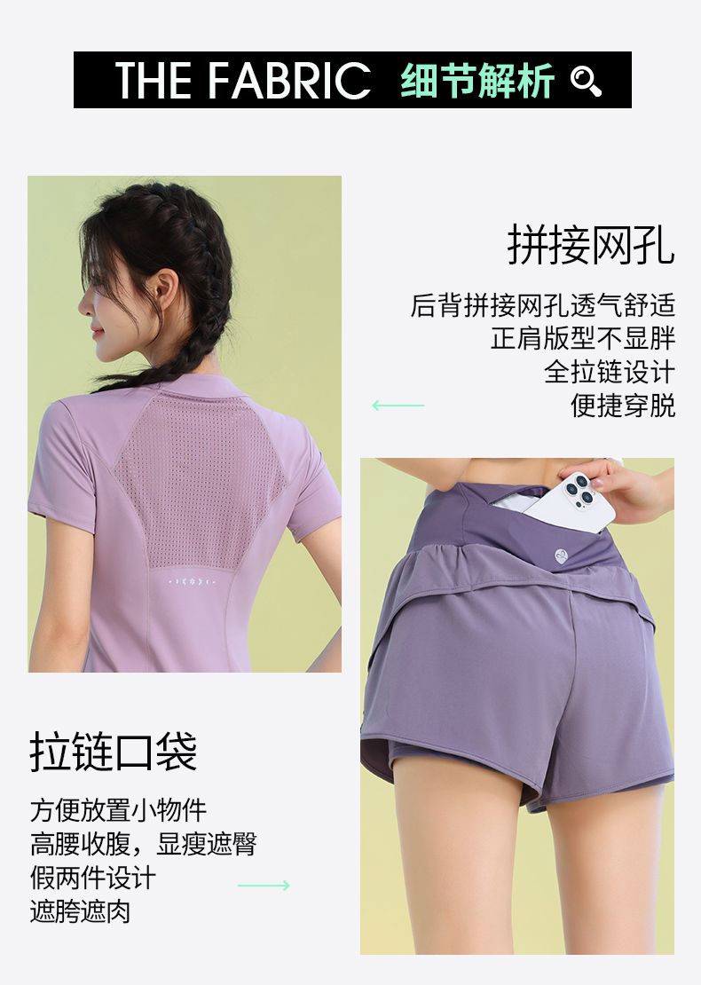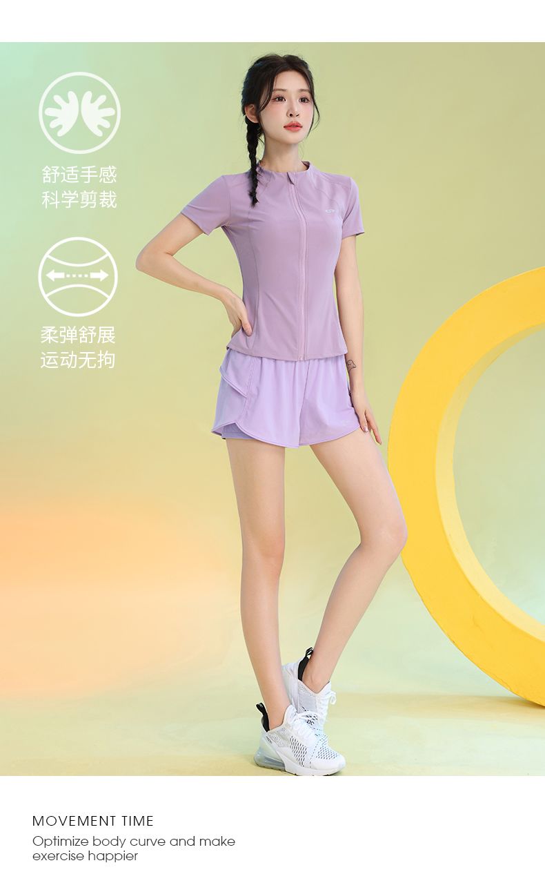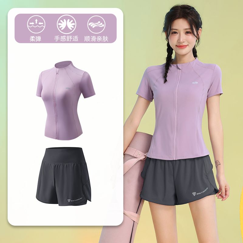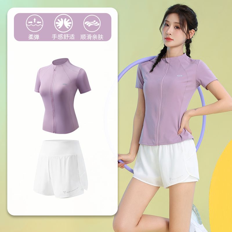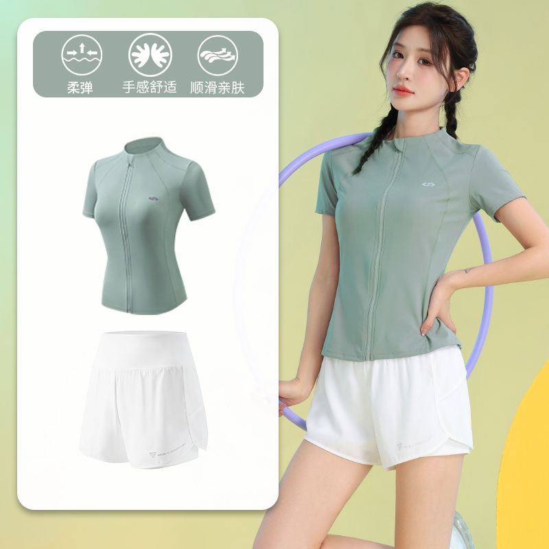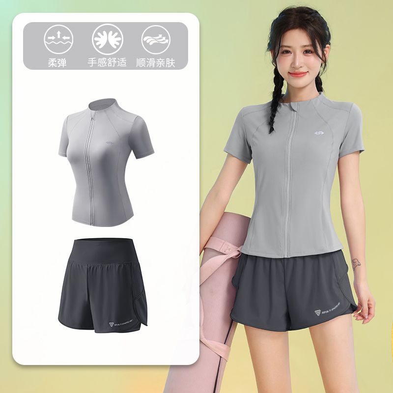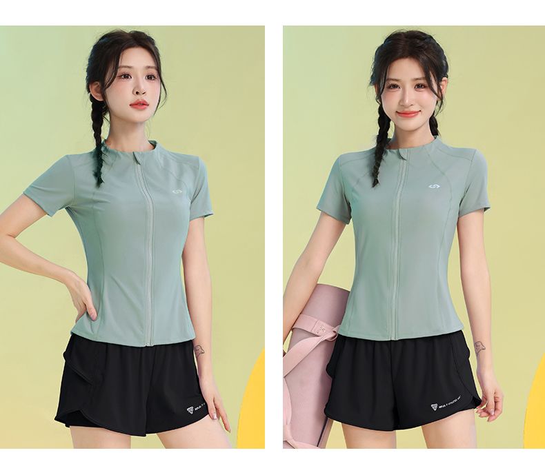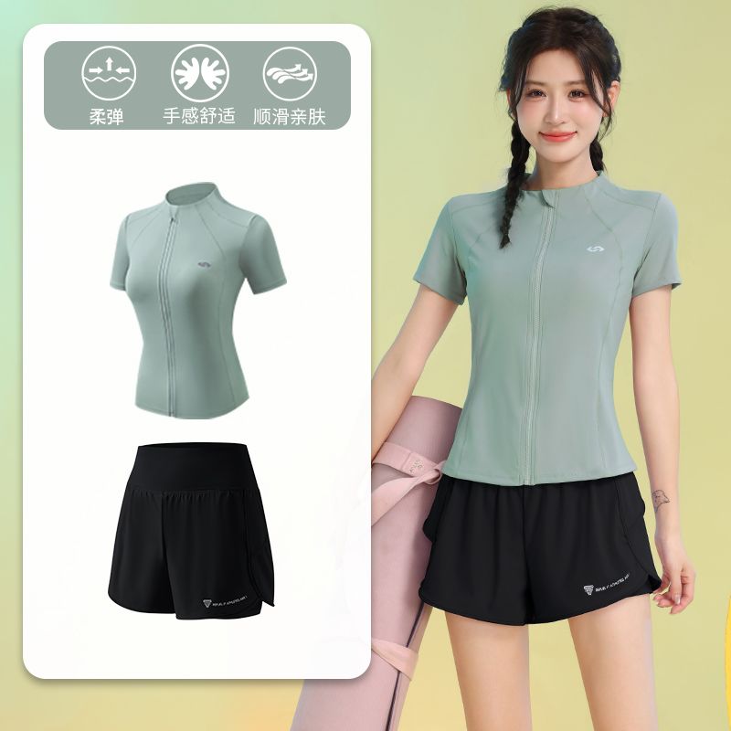 新款短袖开衫健身服夏季户外跑步运动套装女透气速干普拉提瑜伽服