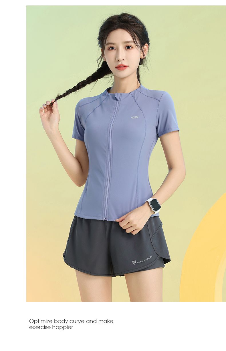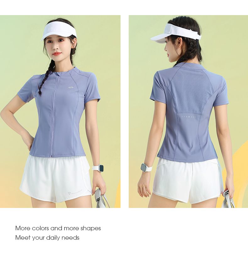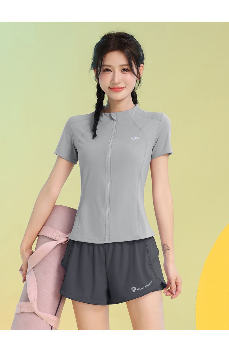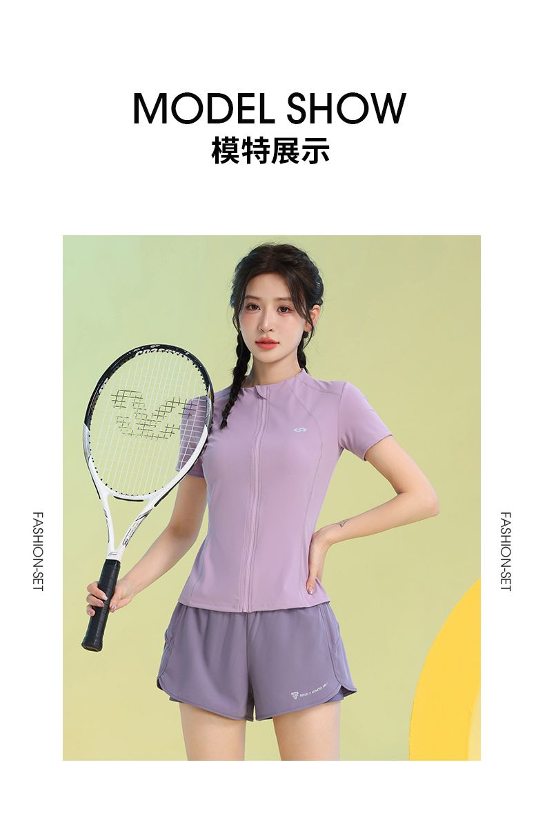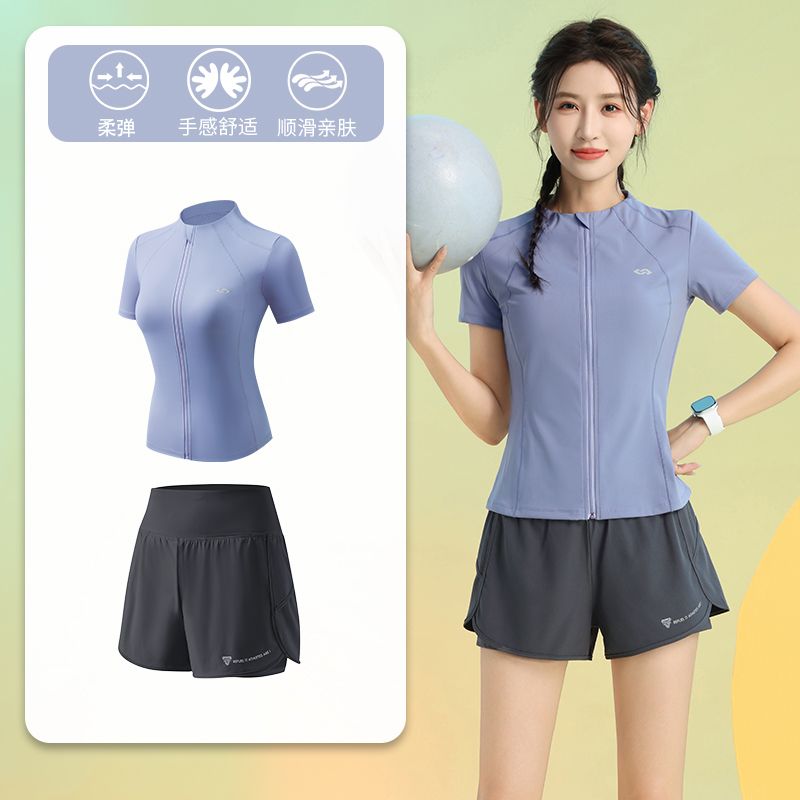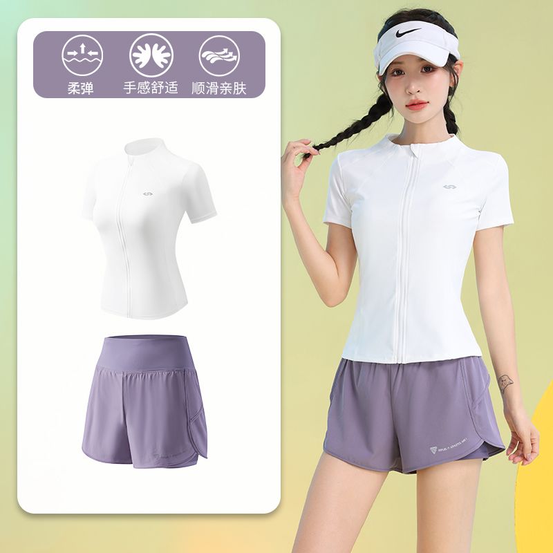 新款短袖开衫健身服夏季户外跑步运动套装女透气速干普拉提瑜伽服