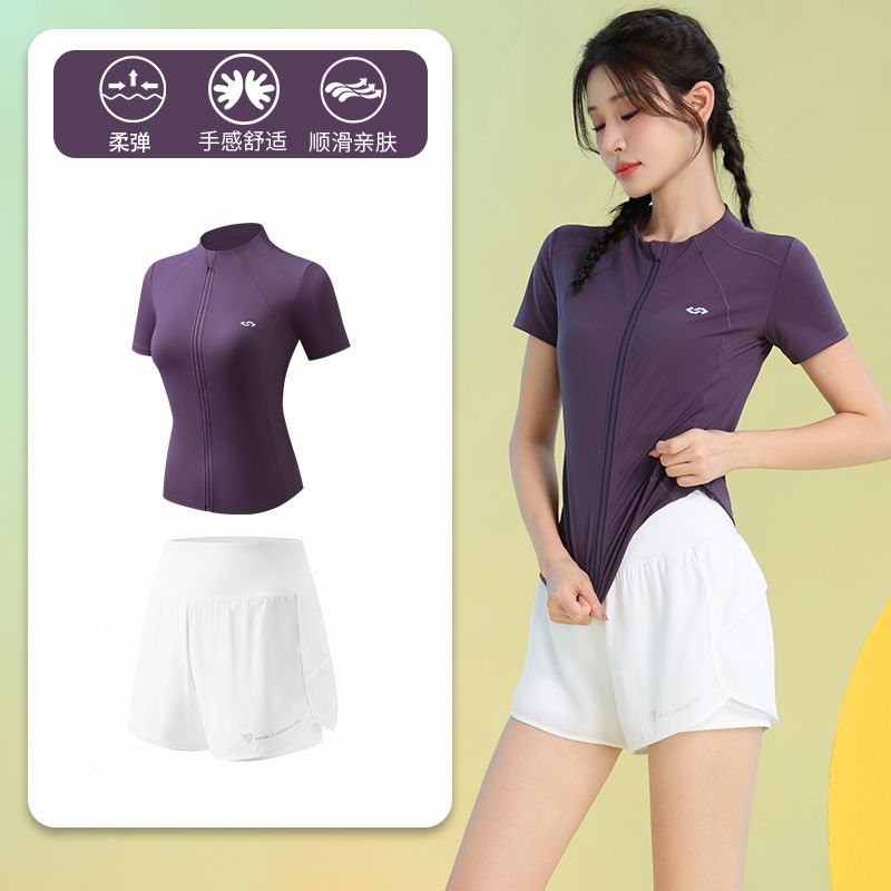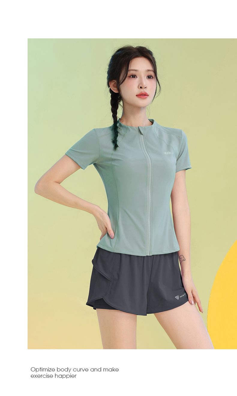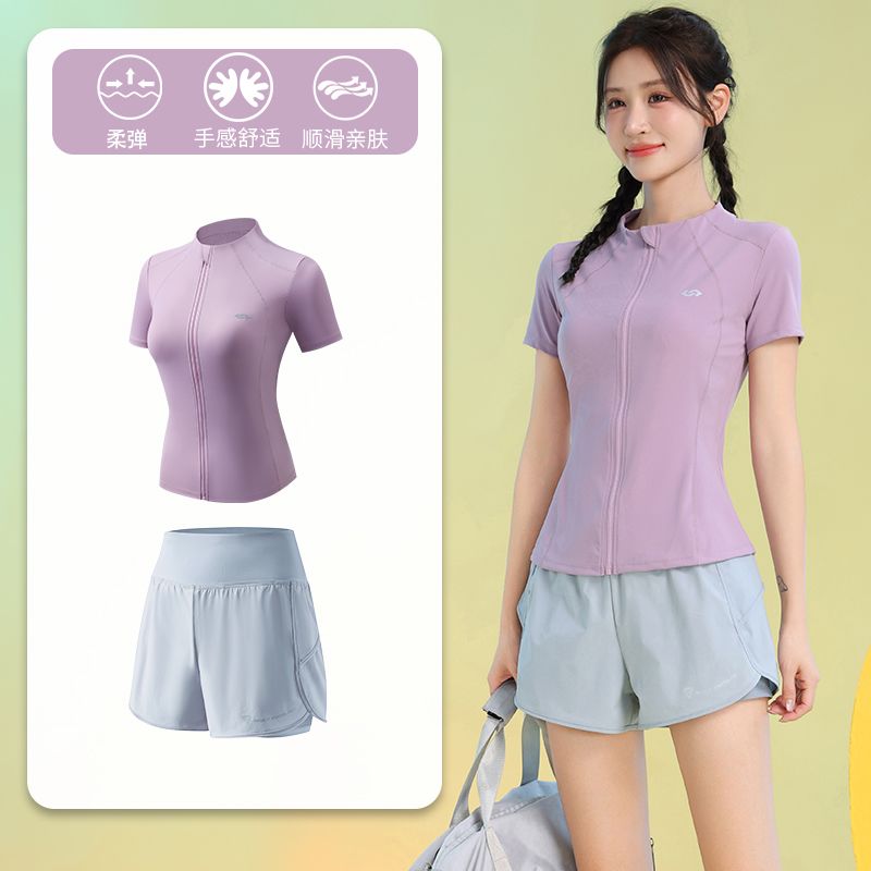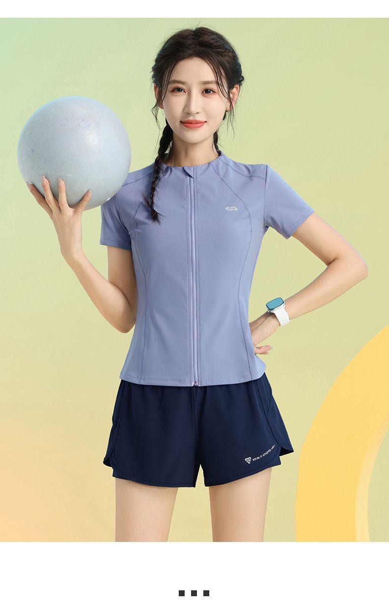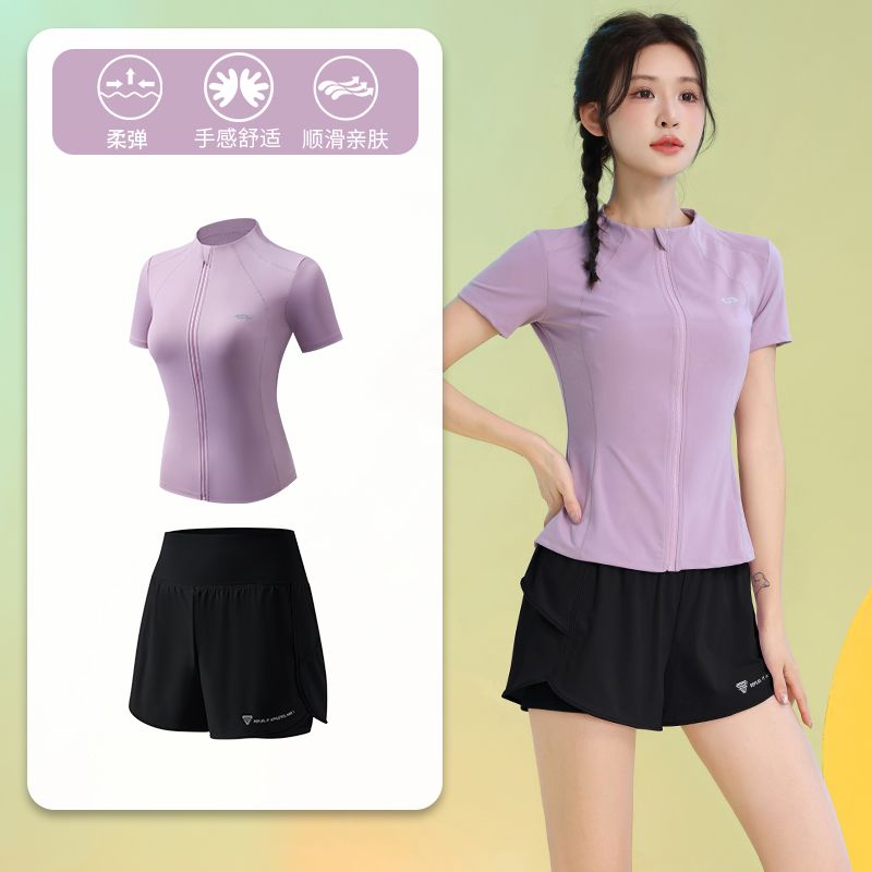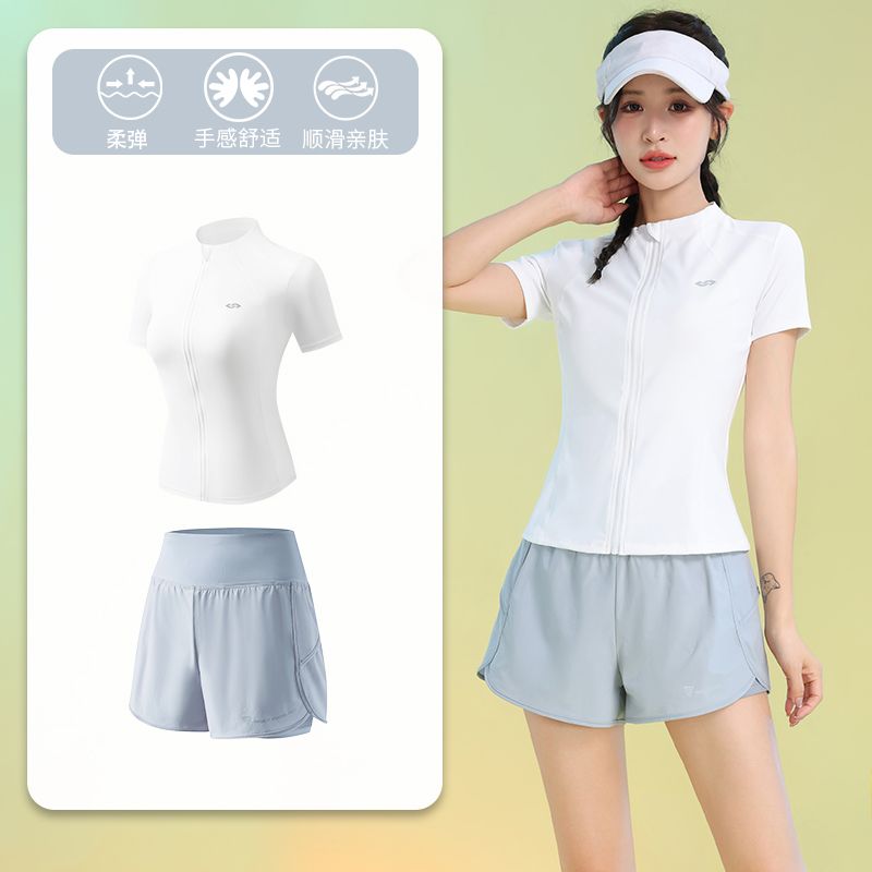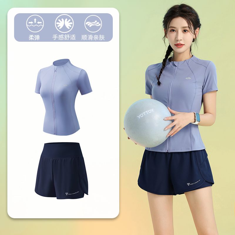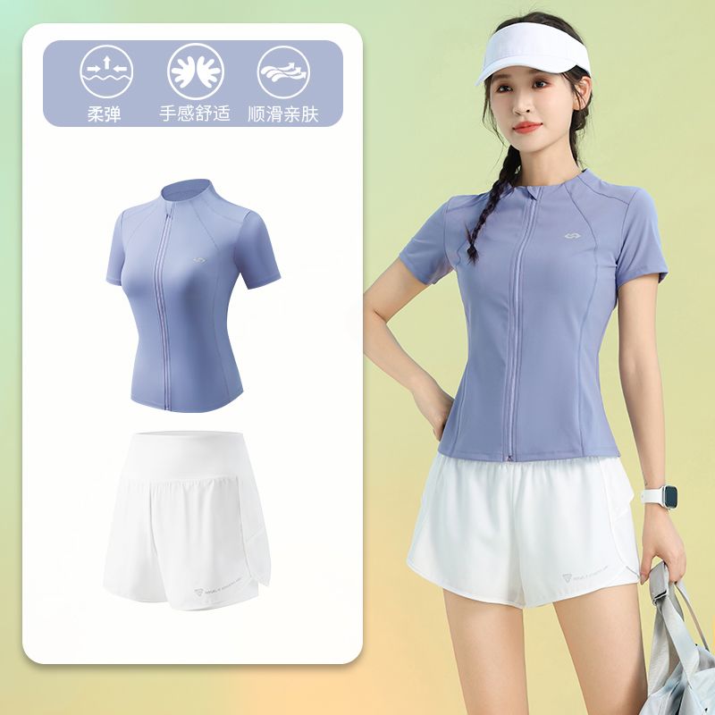 新款短袖开衫健身服夏季户外跑步运动套装女透气速干普拉提瑜伽服