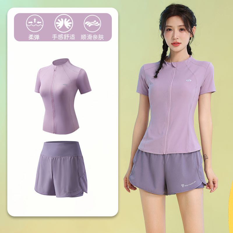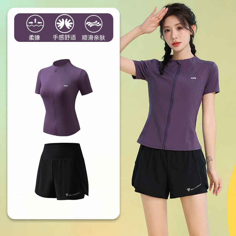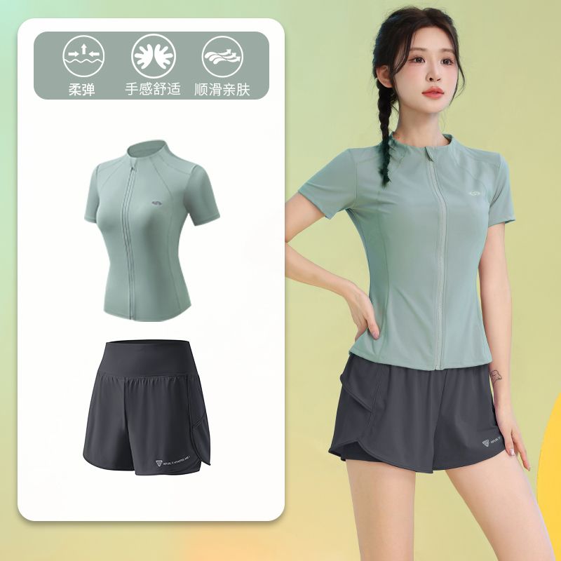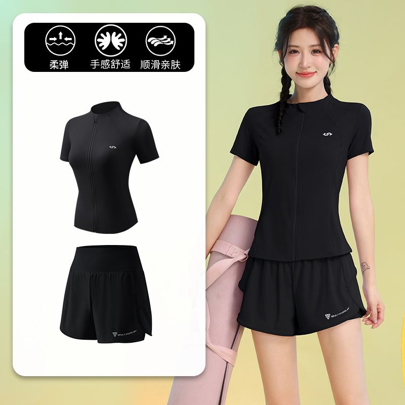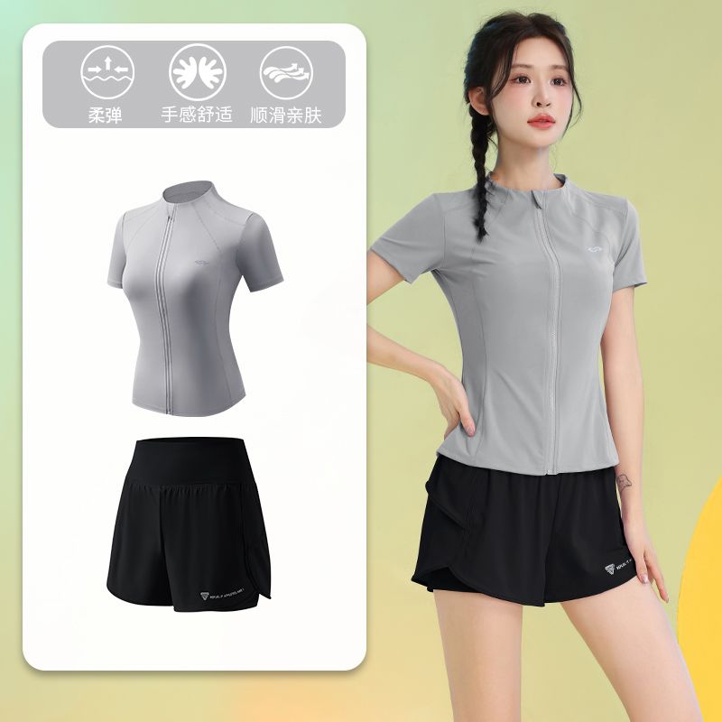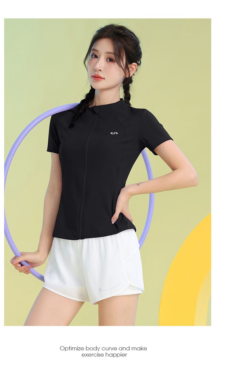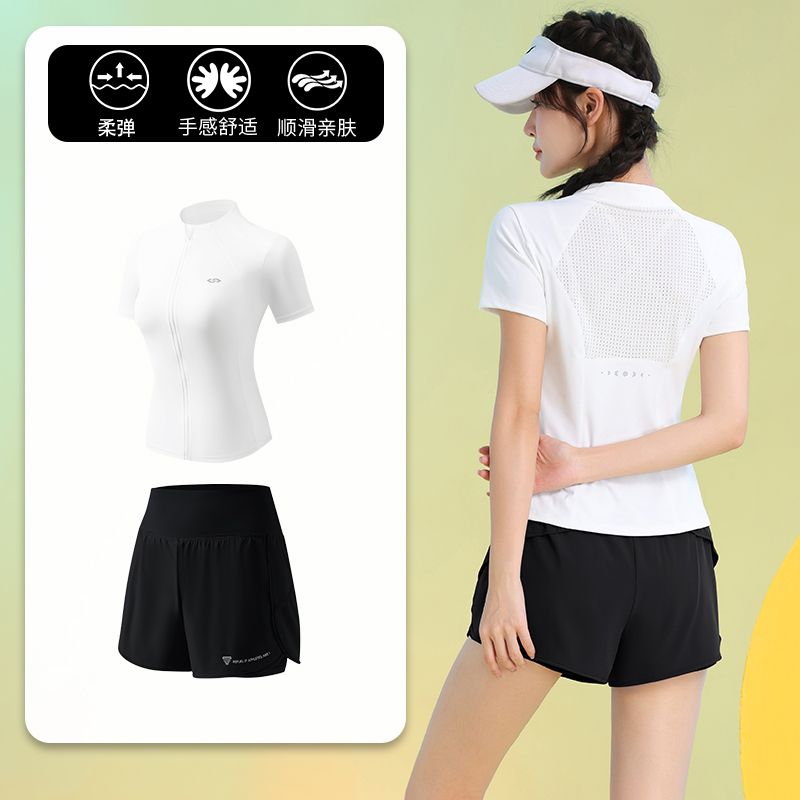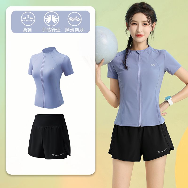 新款短袖开衫健身服夏季户外跑步运动套装女透气速干普拉提瑜伽服