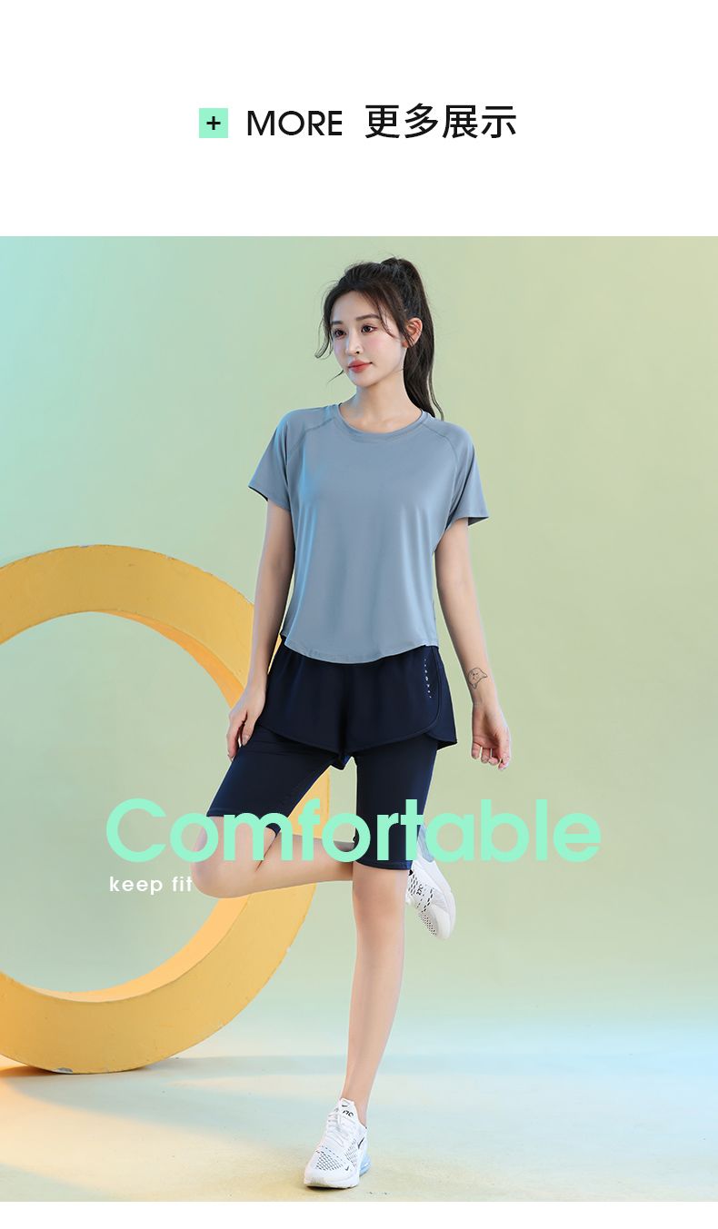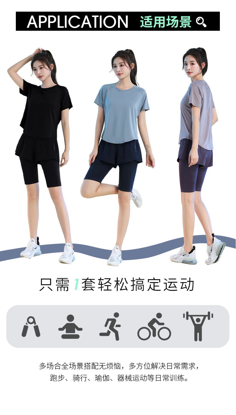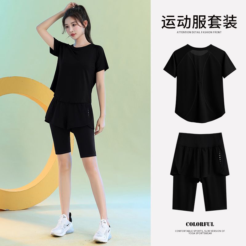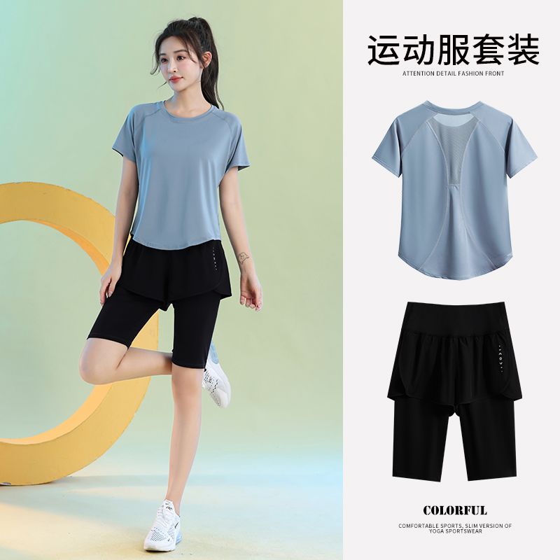 运动套装女健身夏季薄款短袖瑜伽服2024新款宽松专业跑步速干衣