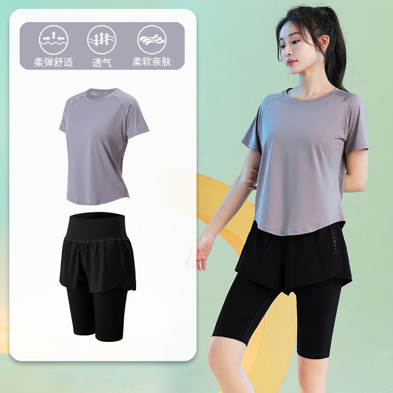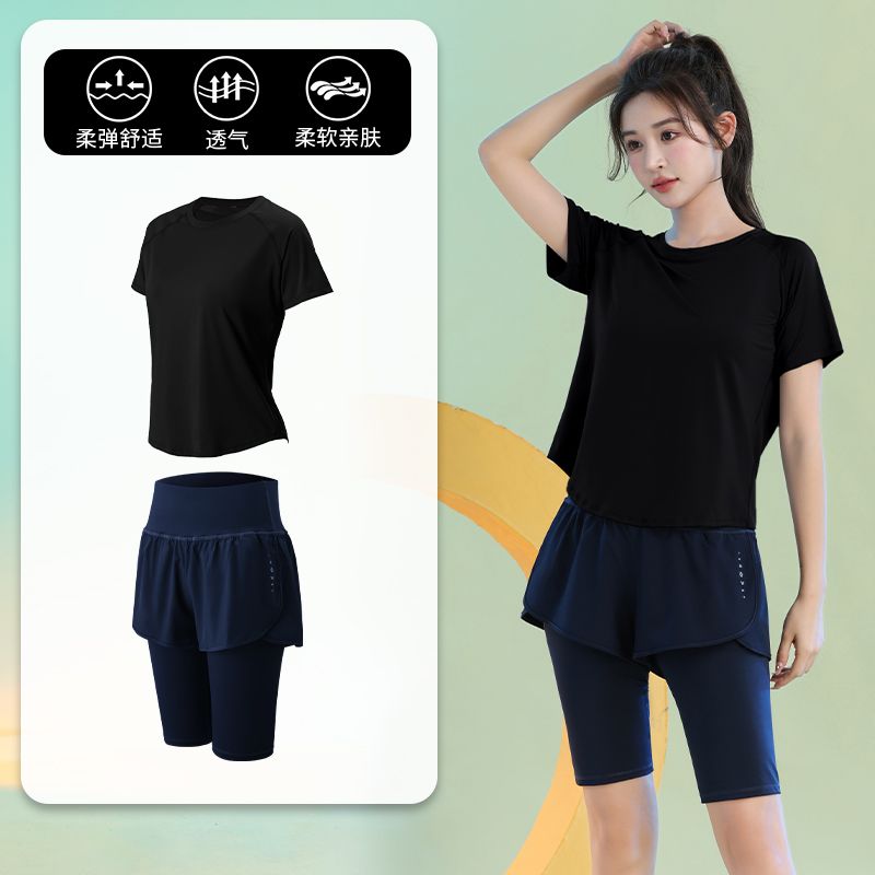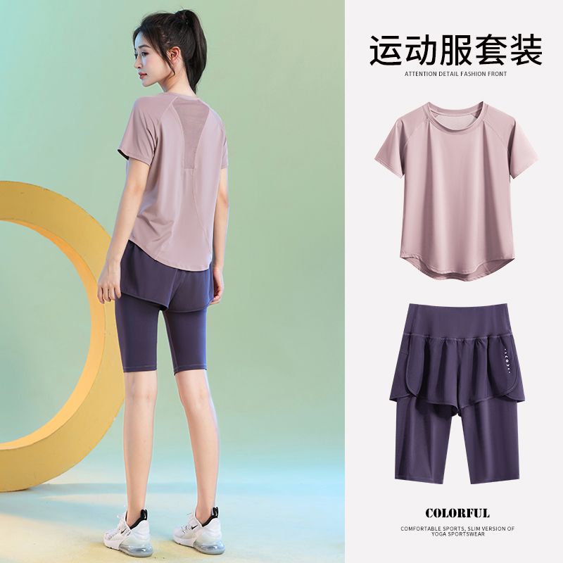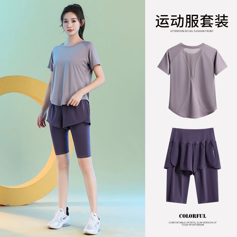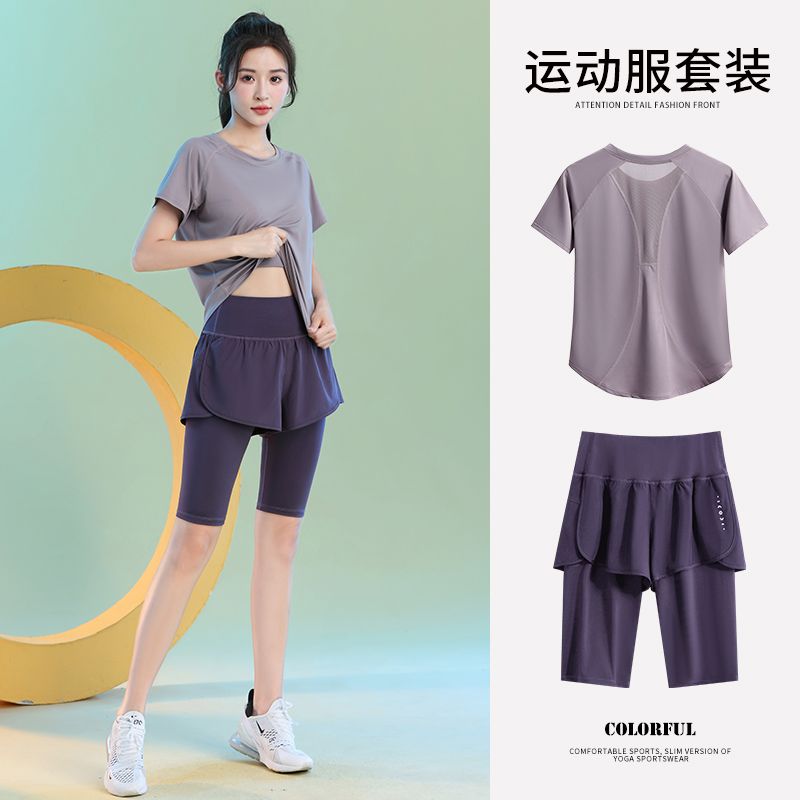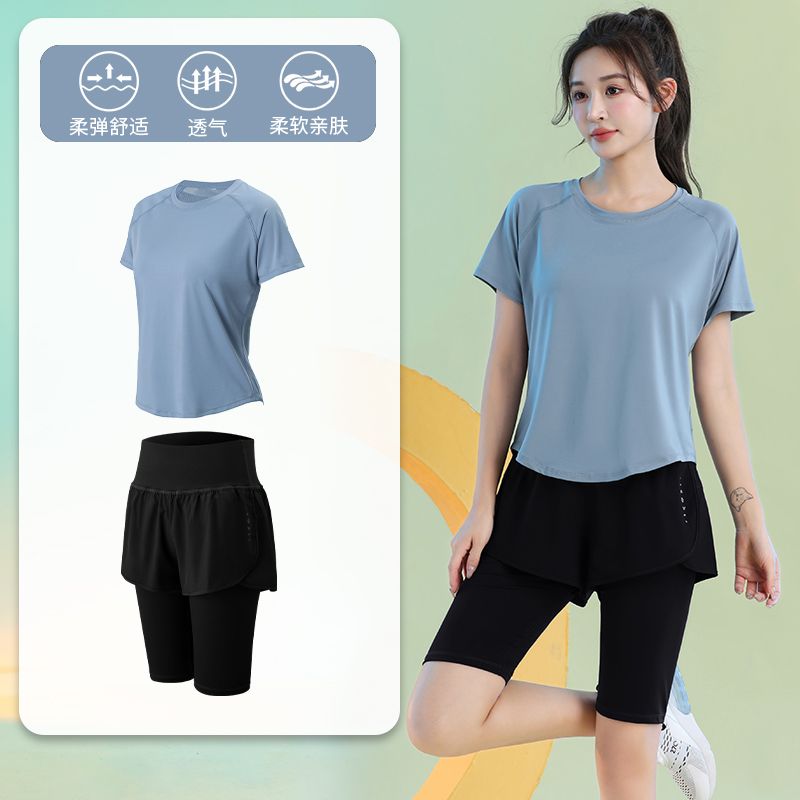运动套装女健身夏季薄款短袖瑜伽服2024新款宽松专业跑步速干衣