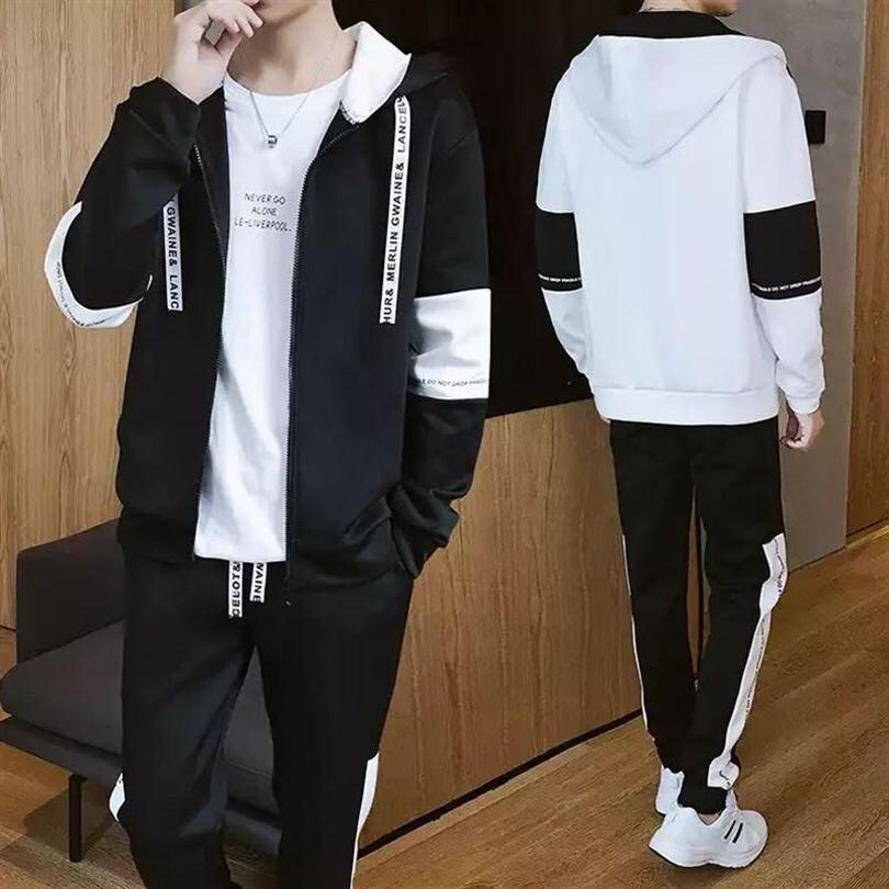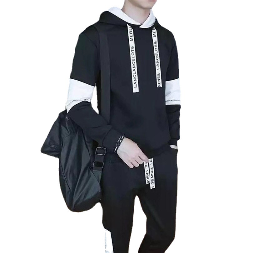 衣服+裤子秋冬卫衣男套装韩版修身连帽运动服青少年学生小脚裤子