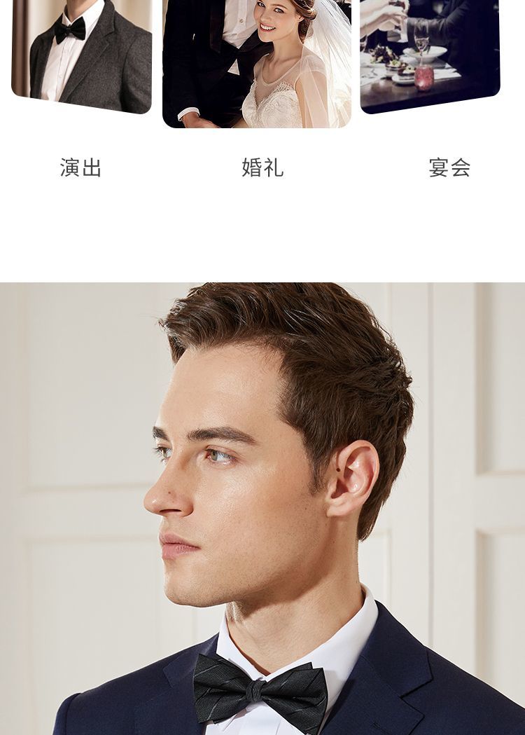 黑色领结男士高档结婚新郎西装主持演出衬衫蝴蝶结伴郎兄弟团酒红