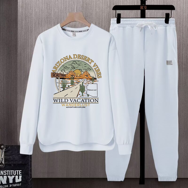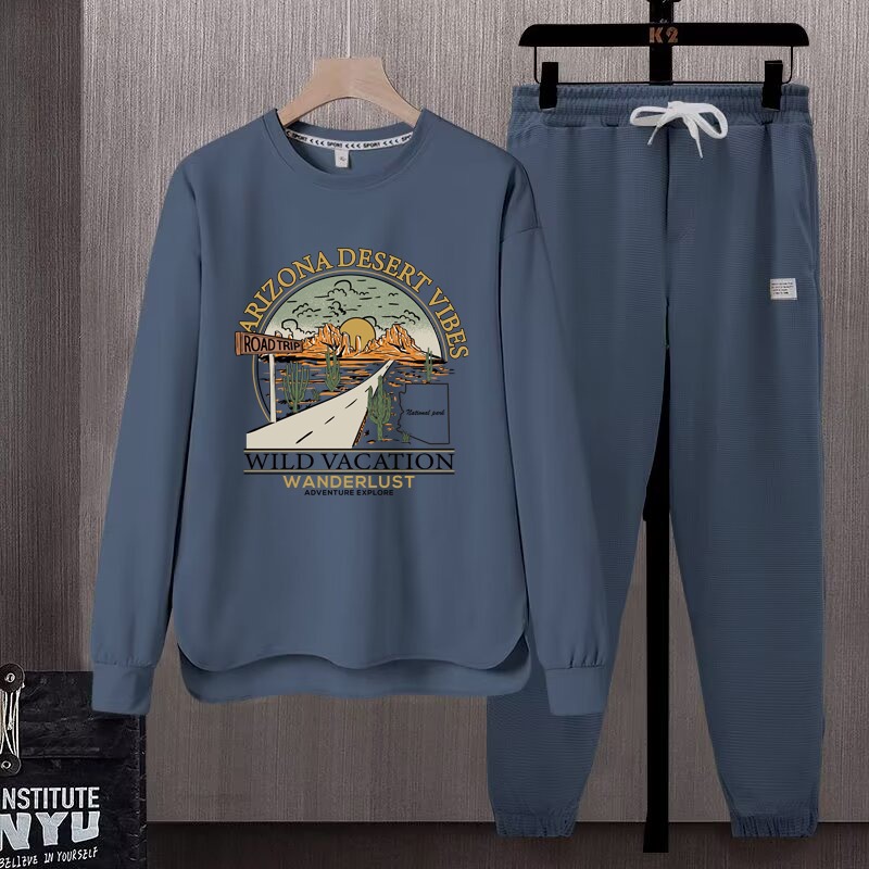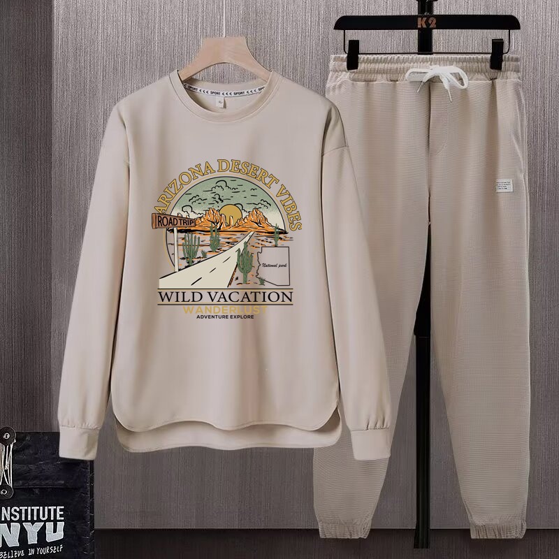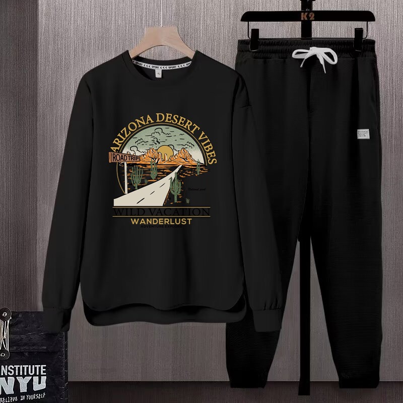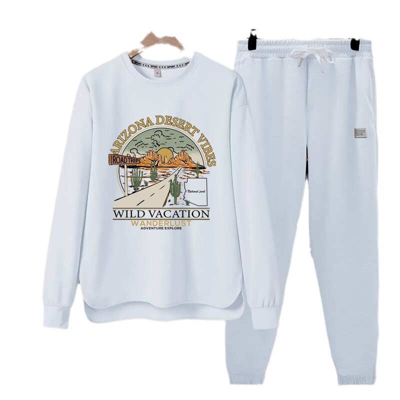 秋冬两件套卫衣男印花休闲上衣高级简约慵懒通勤侣套装潮牌卫裤男