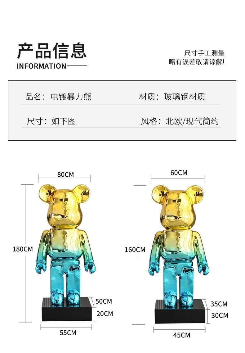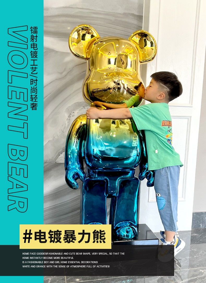 电镀网红暴力熊大型摆件轻奢卡通kaws高端雕塑客厅电视柜落地装饰