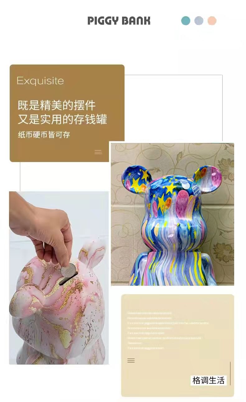 轻奢网红熊存钱罐客厅大摆件现代简约风玄关电视柜落地装饰乔迁品