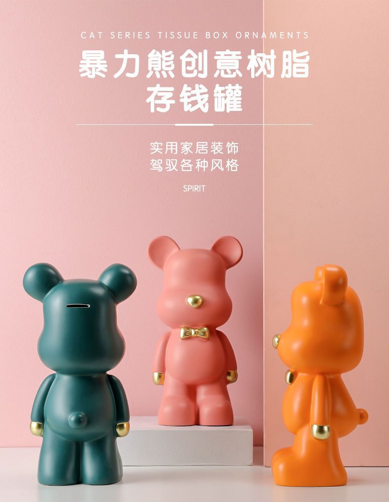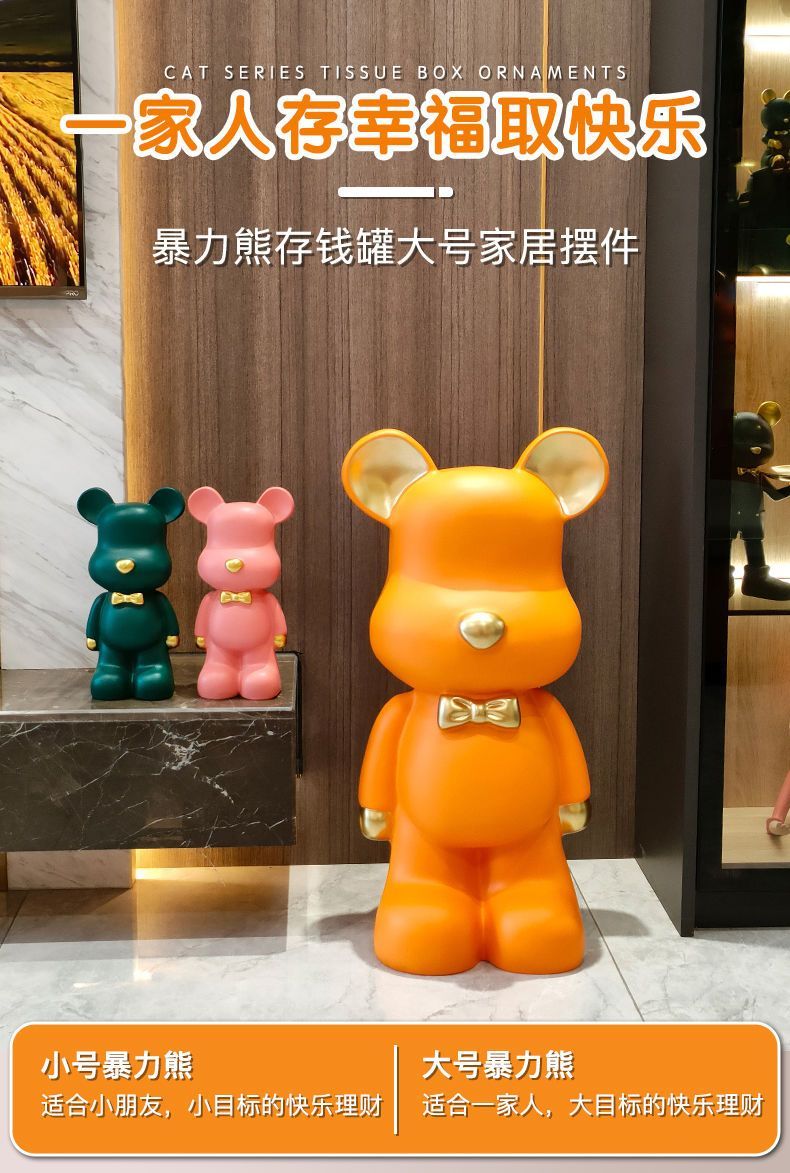 2024流行暴力熊存钱罐客厅玄关书房中号落地摆件电视机现代装饰品