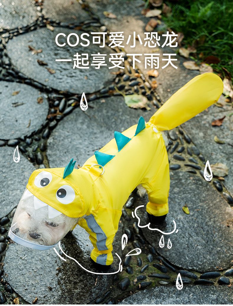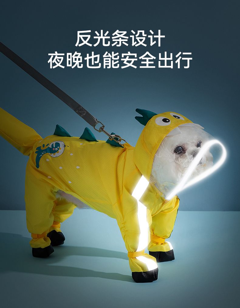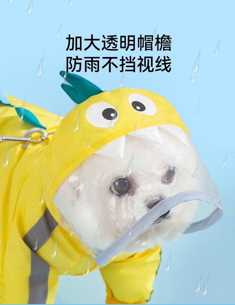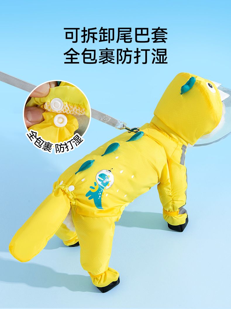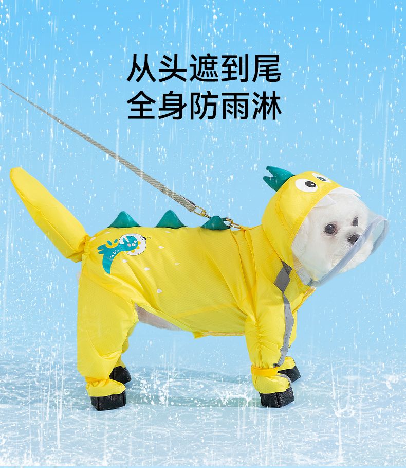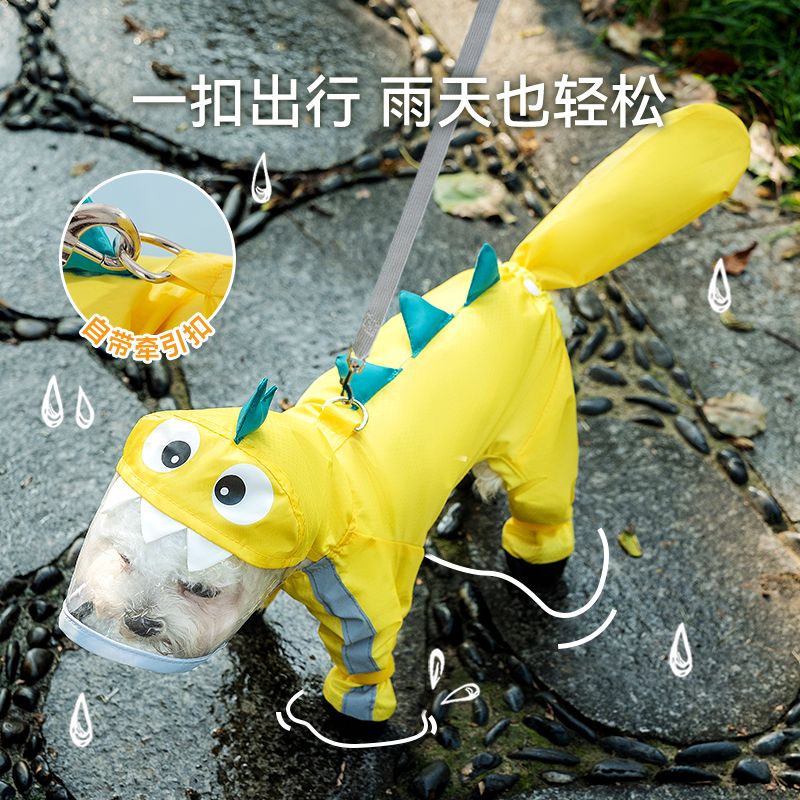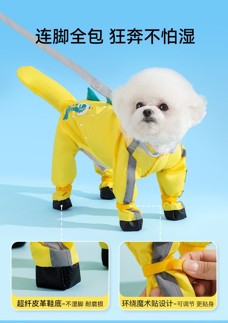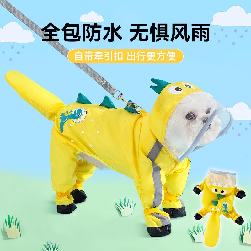 狗狗雨衣宠物衣服夏天博美泰迪比熊雪纳瑞小型犬恐龙牵引连脚雨衣