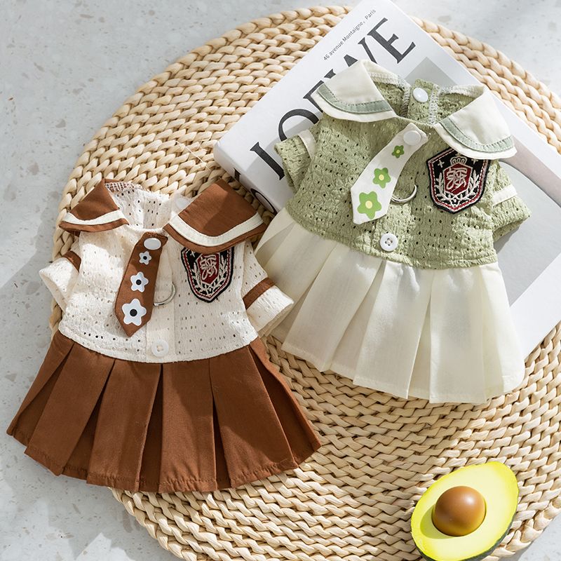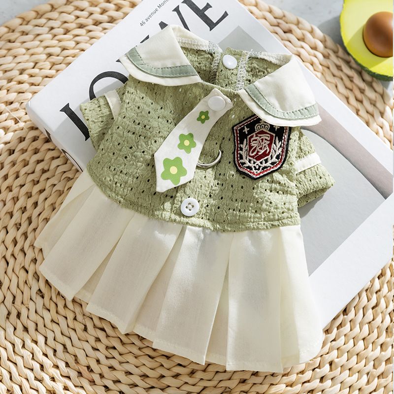 宠物可牵引裙子学院风夏天狗狗衣服泰迪比熊猫猫咪博美贵宾小型犬