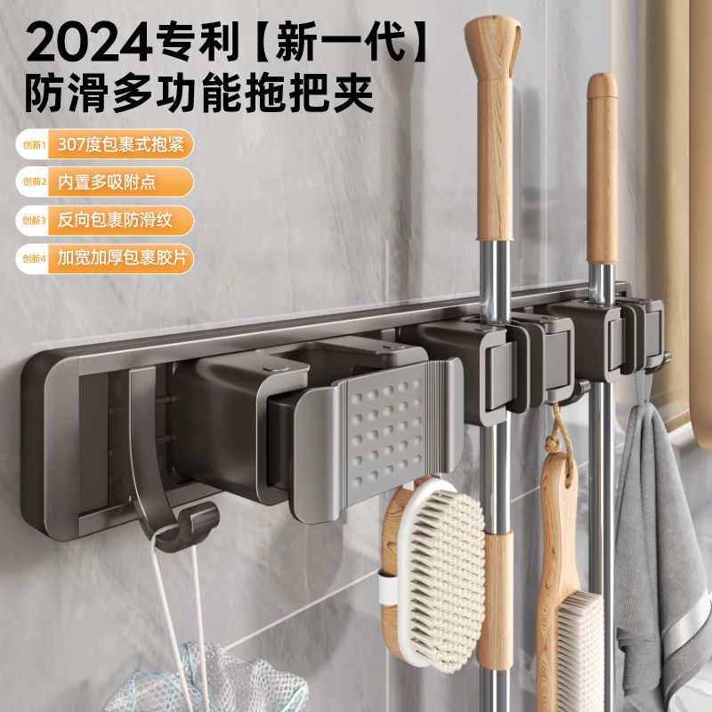 拖把夹免打孔拖把架壁挂阳台浴室卫生间多功能扫把挂钩固定器挂钩