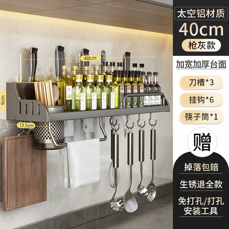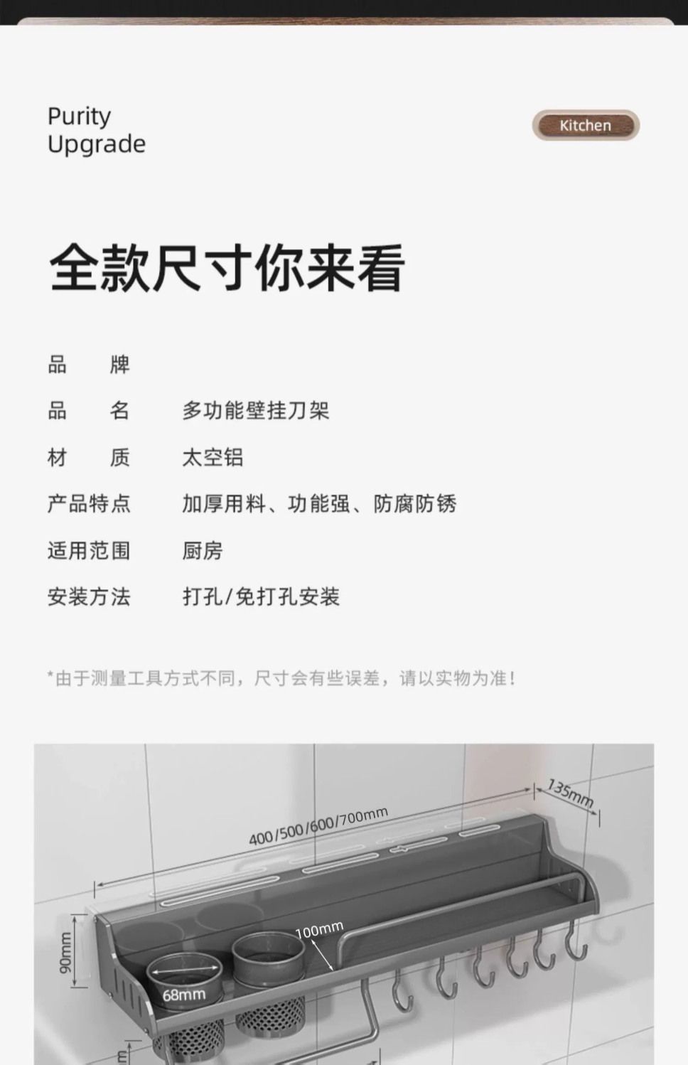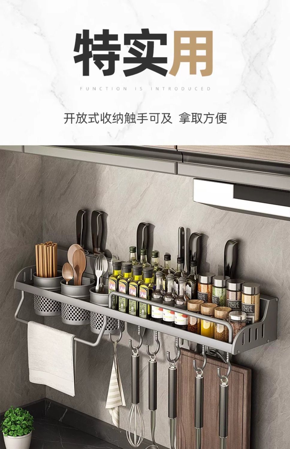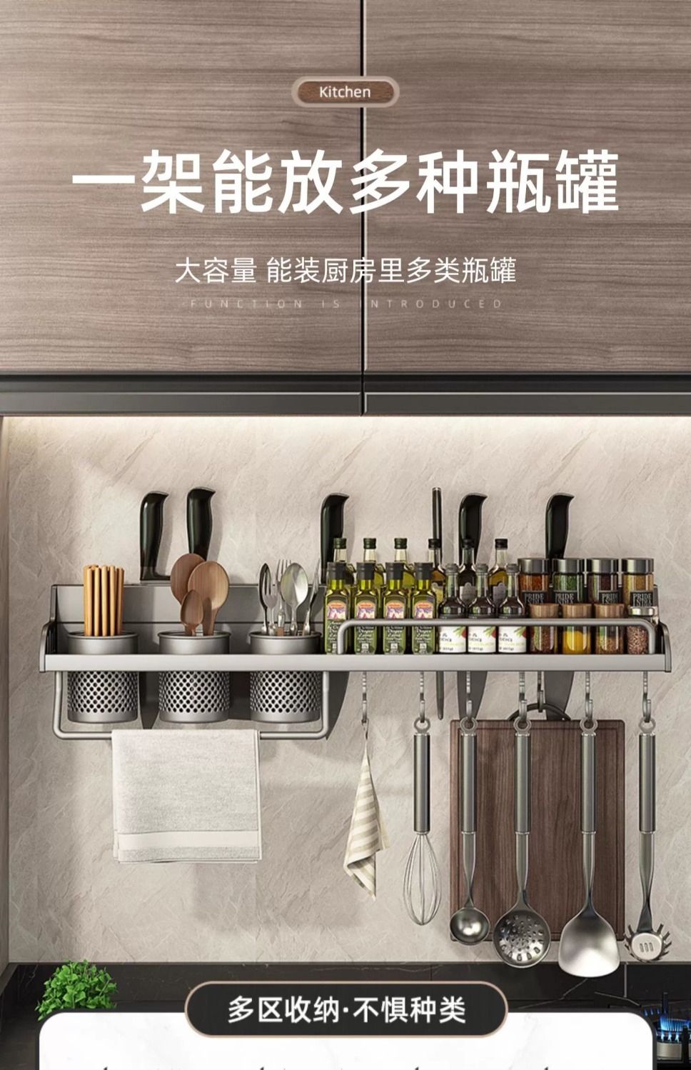 枪灰色壁挂式刀架调料架一体厨房置物架免打孔多功能家用收纳架子