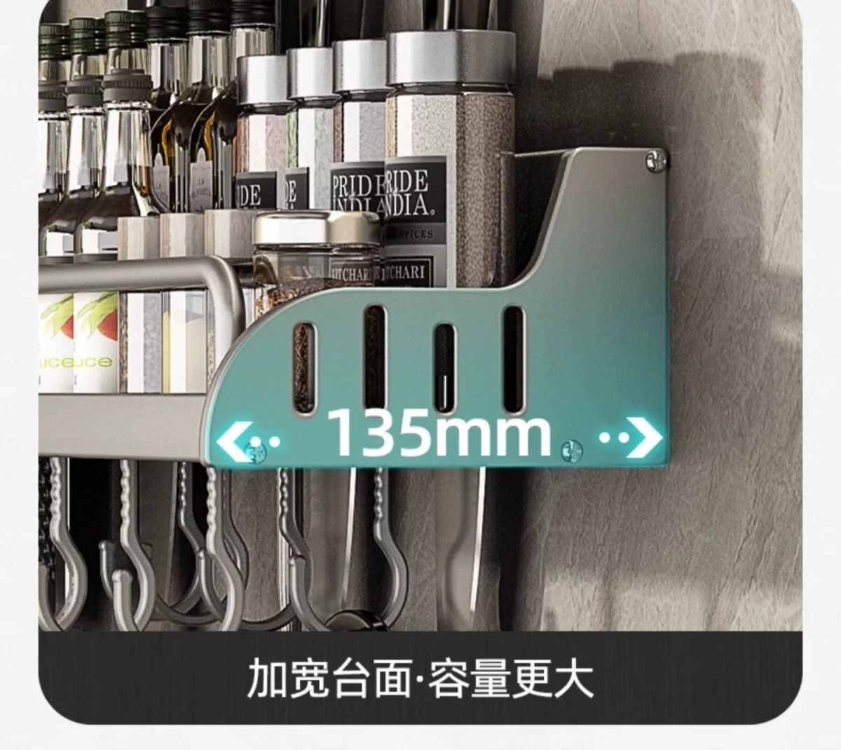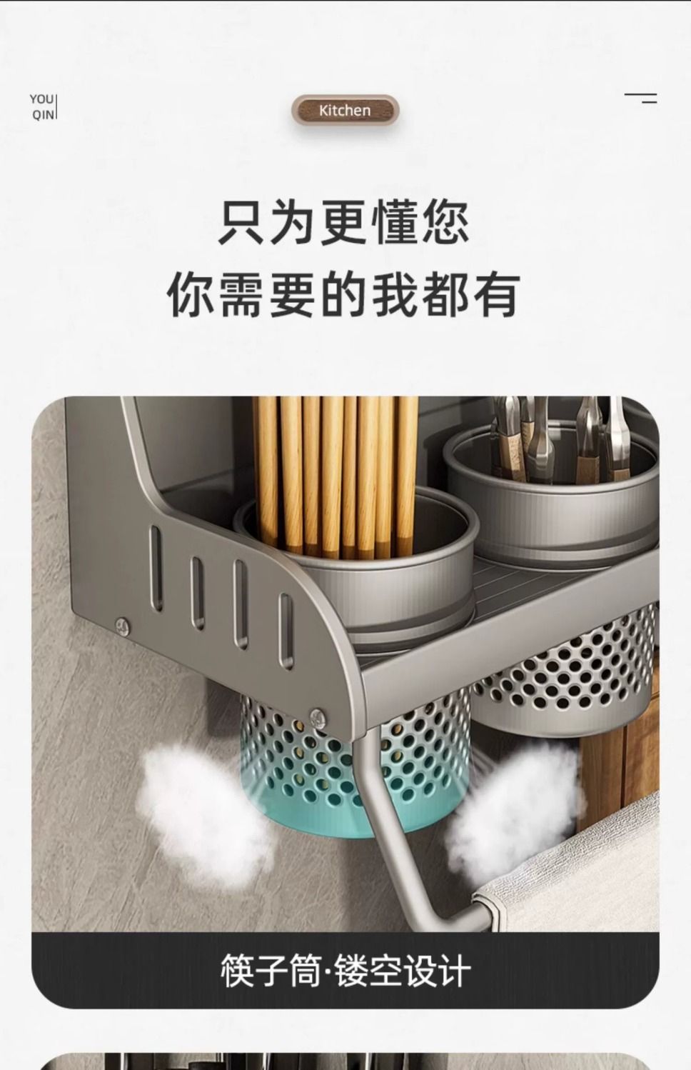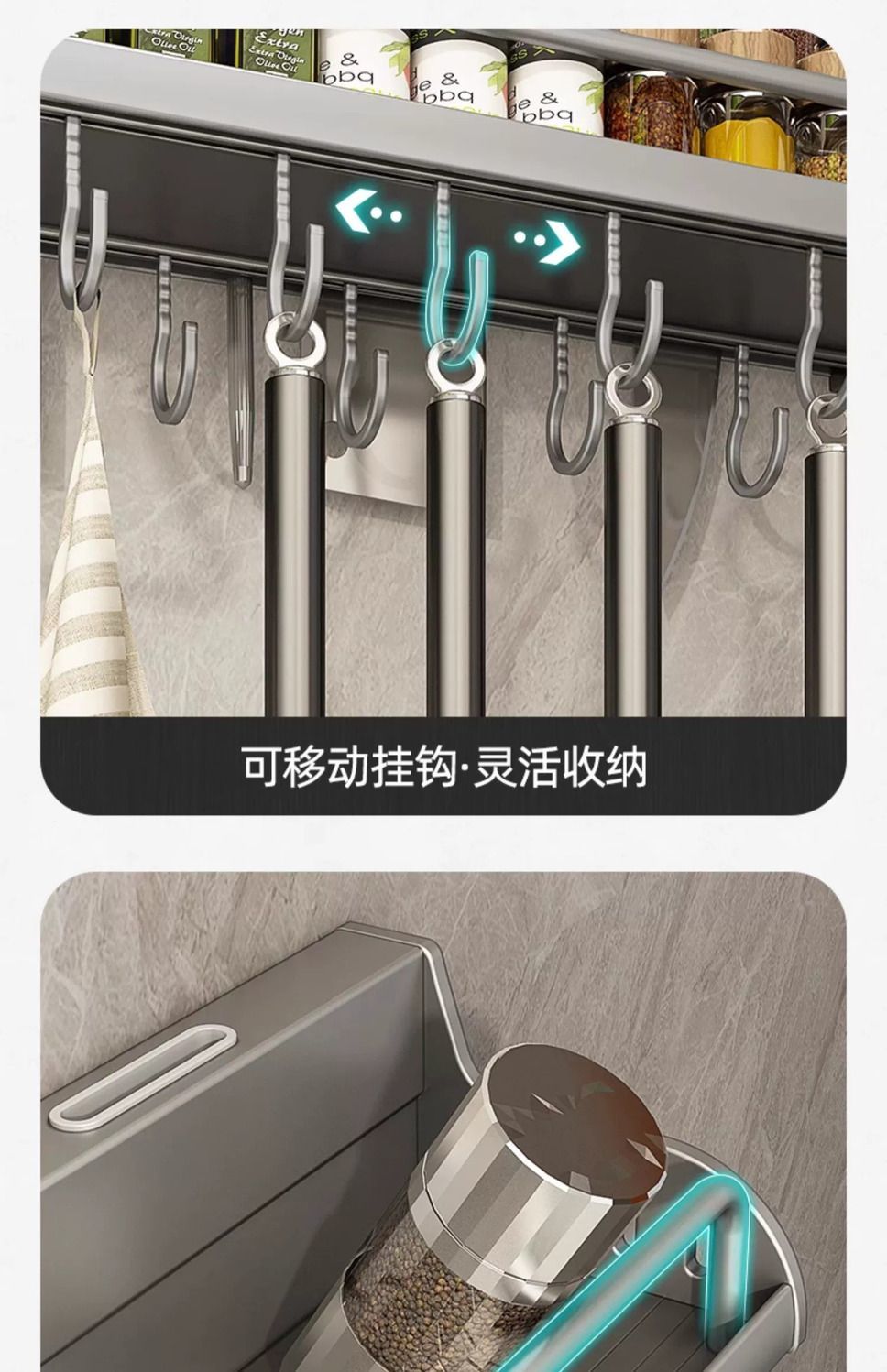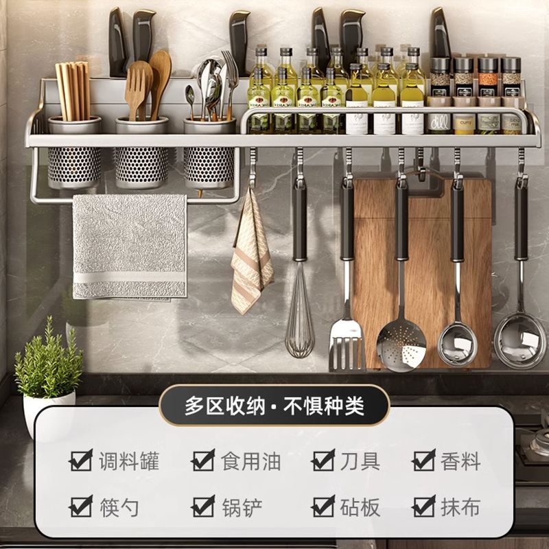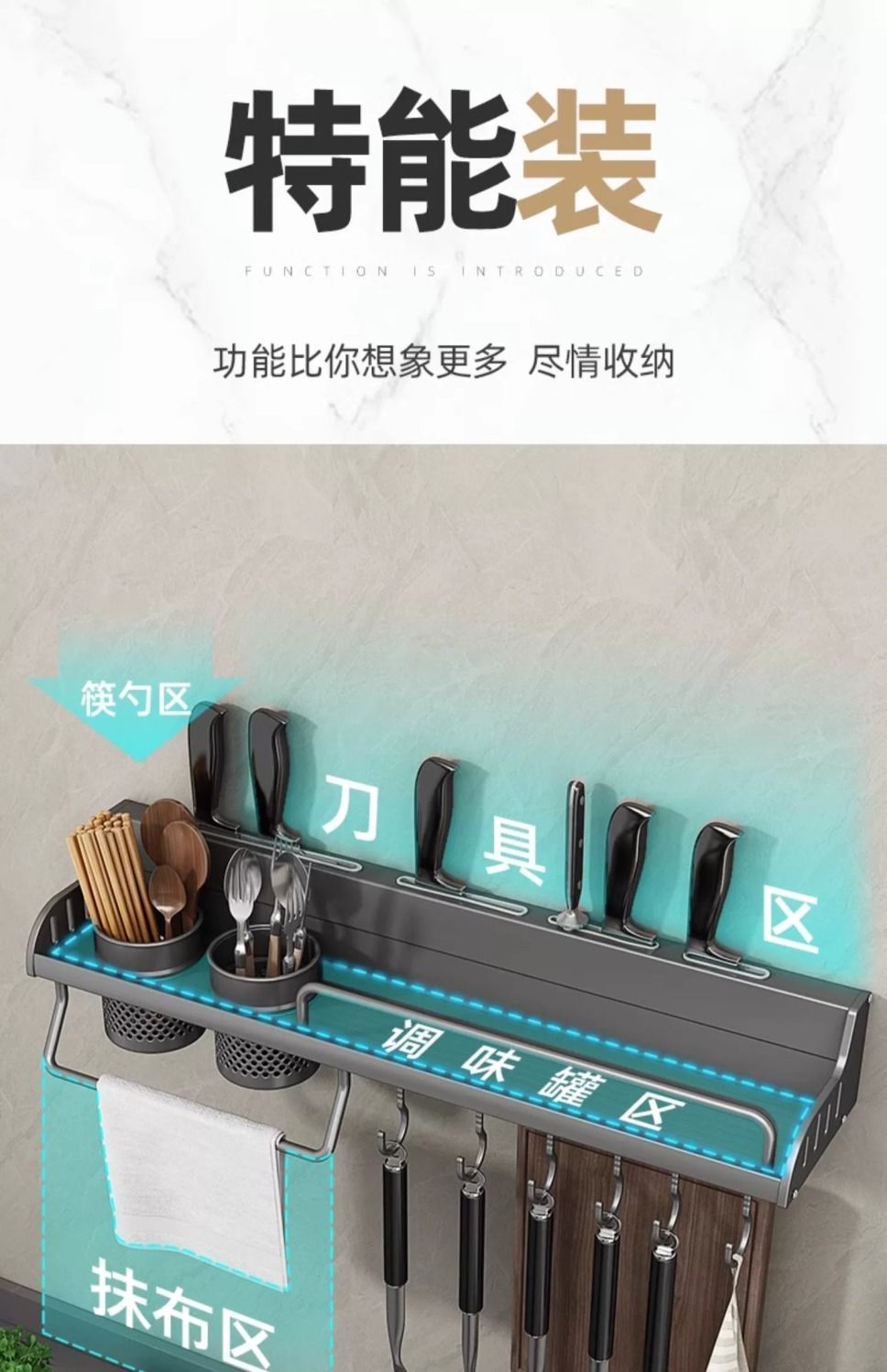 枪灰色壁挂式刀架调料架一体厨房置物架免打孔多功能家用收纳架子