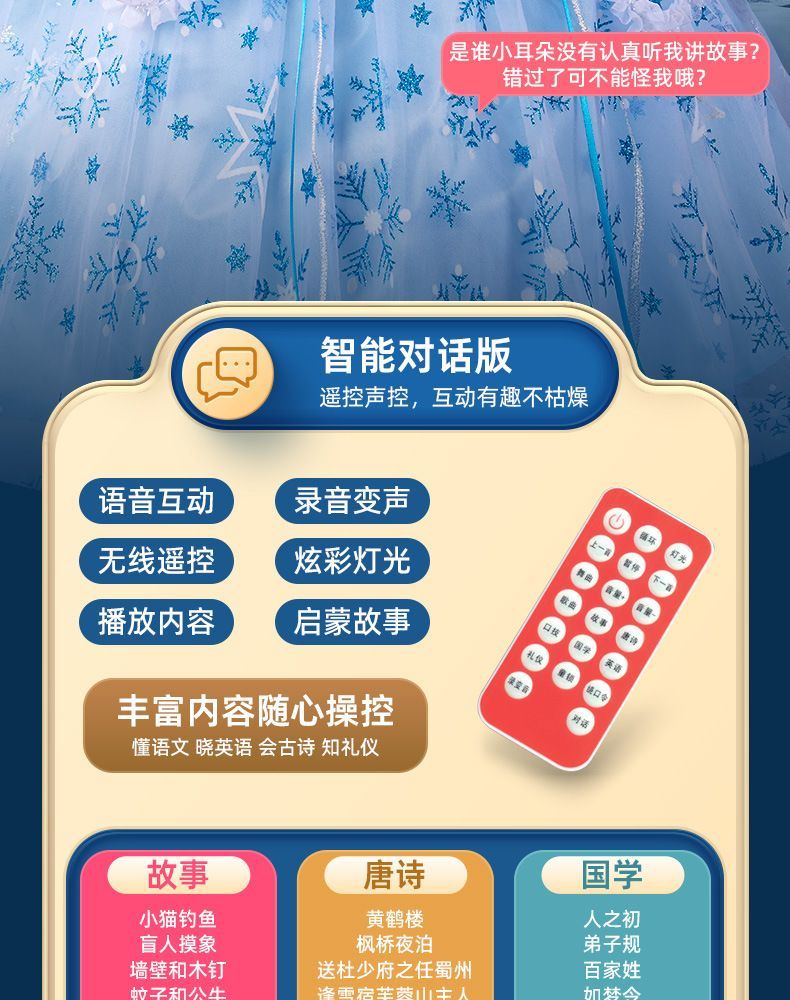 | ice princess smart dialogue + blink(冰雪公主智能对话版+眨眼) | USD $19.81 | 99999 piece available |
