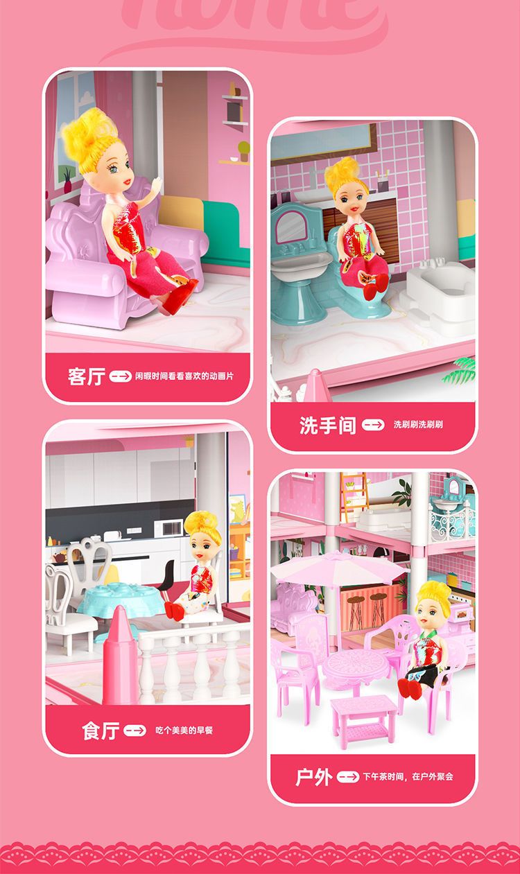 | four-storey 11-room [gift box] send 2 lights +4 dolls(四层11房【礼盒】送2灯+4娃娃) | USD $12.65 | 99999 piece available |