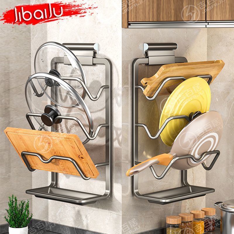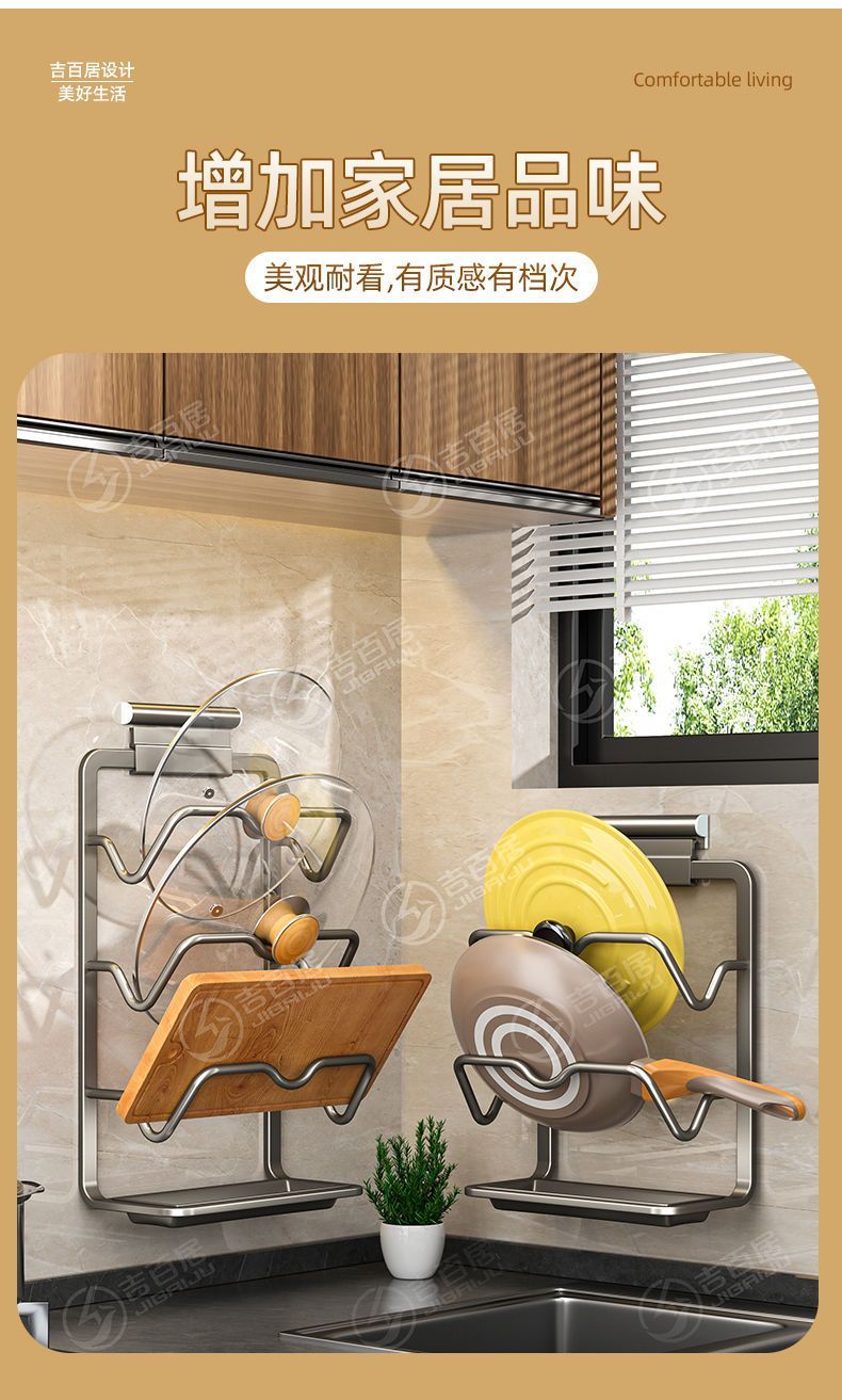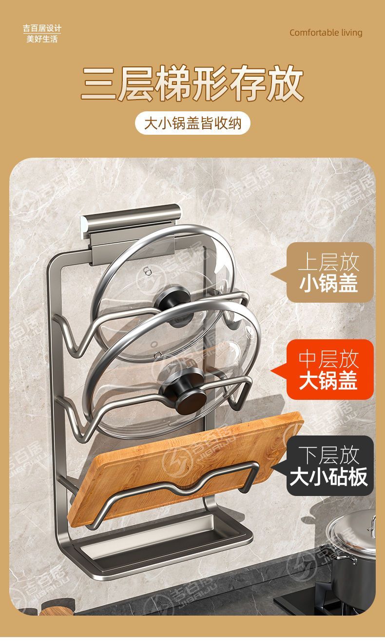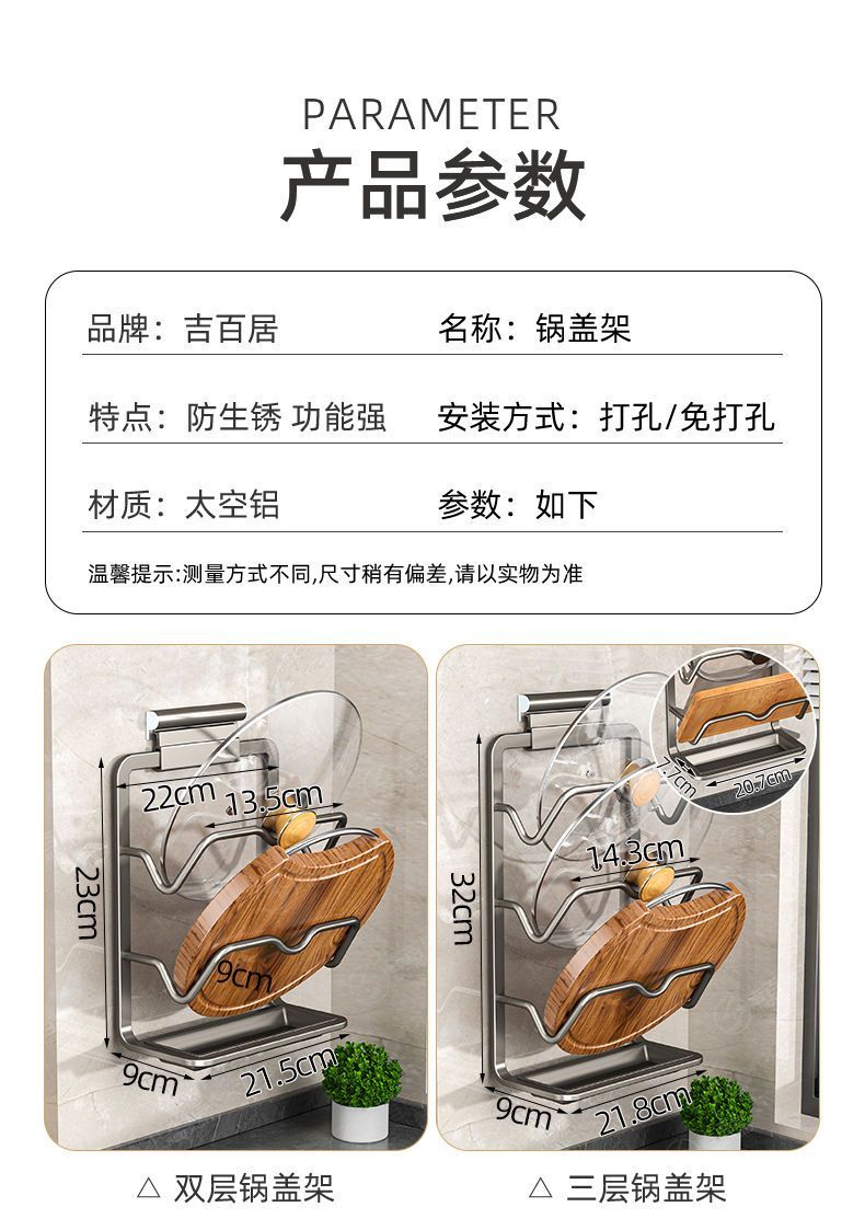 枪灰锅盖架壁挂免打孔厨房置物架家用刀板菜板放置器砧板收纳架子