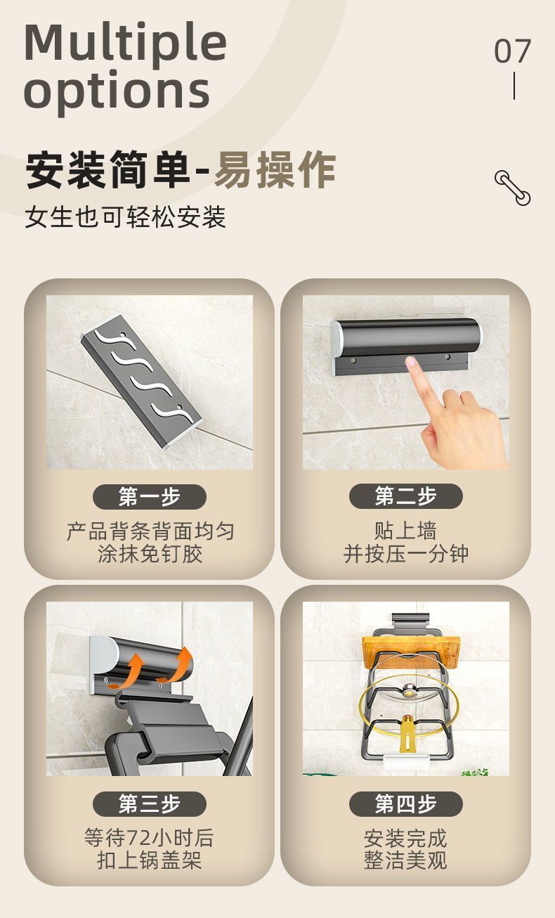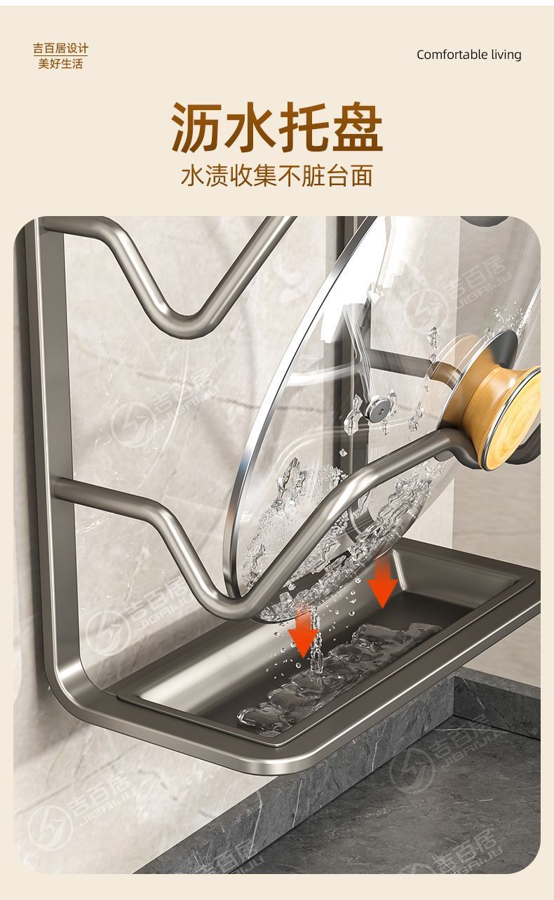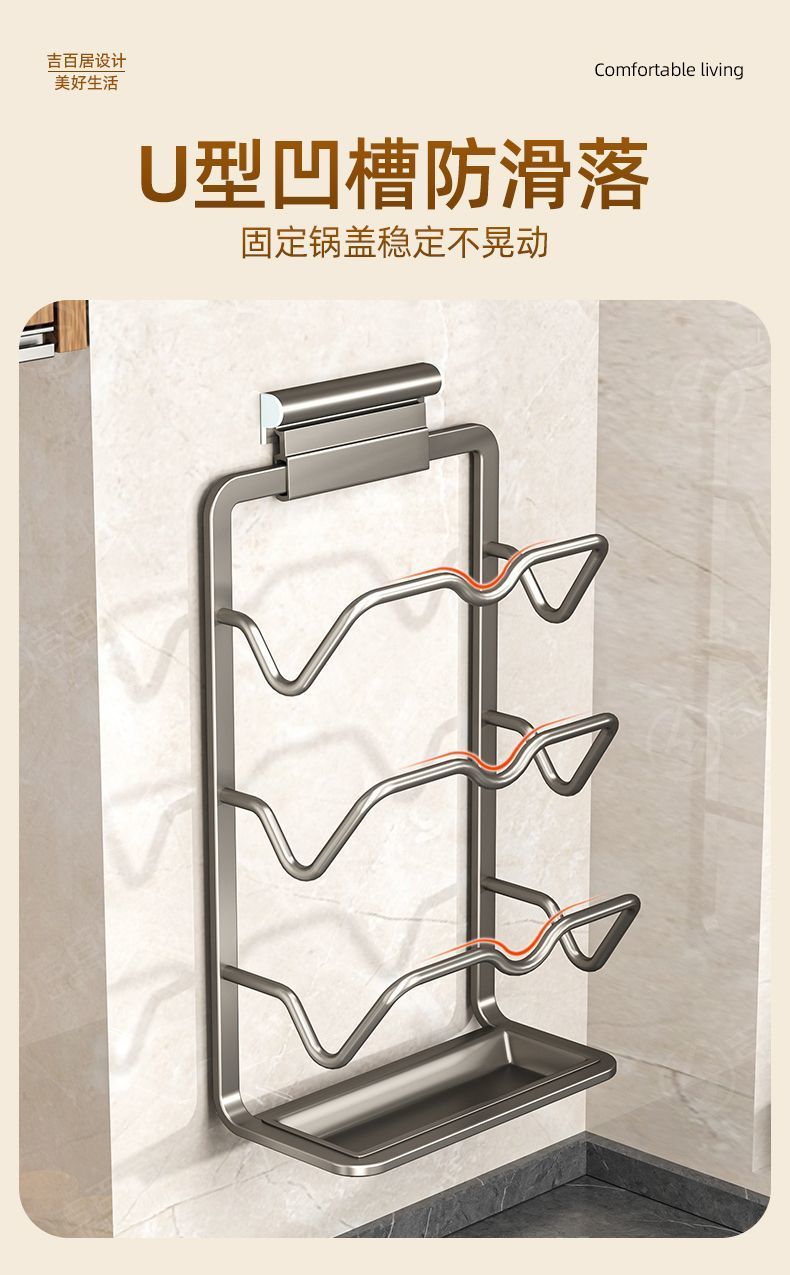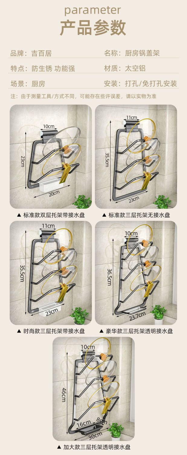 枪灰锅盖架壁挂免打孔厨房置物架家用刀板菜板放置器砧板收纳架子