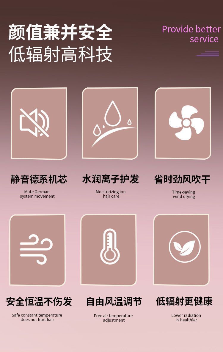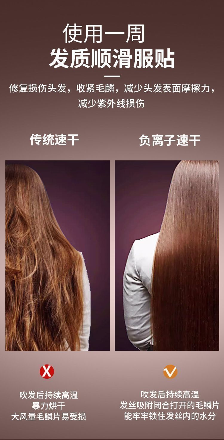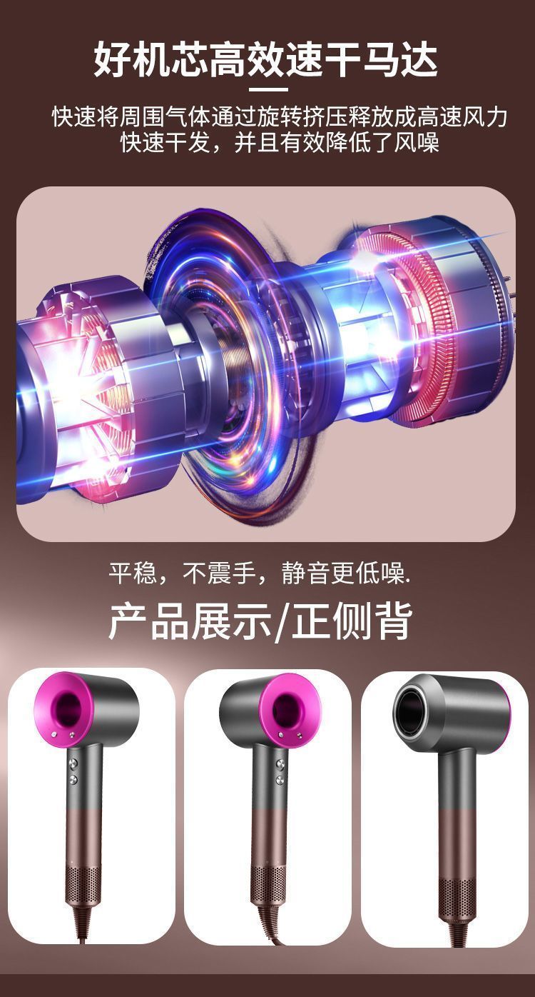 网红同款吹风机高速吹风筒负离子护发大风力速干磁吸无刷电吹风