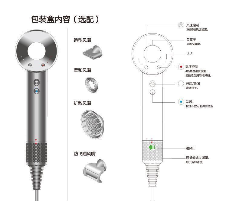 华强北吹风机某森同款无叶负离子高速静音发廊家用护发速干电吹风