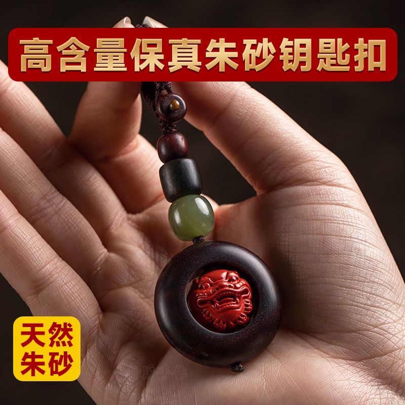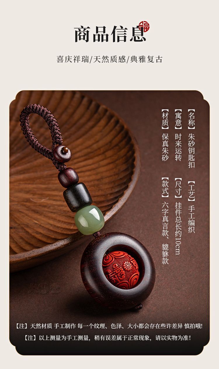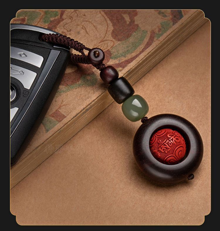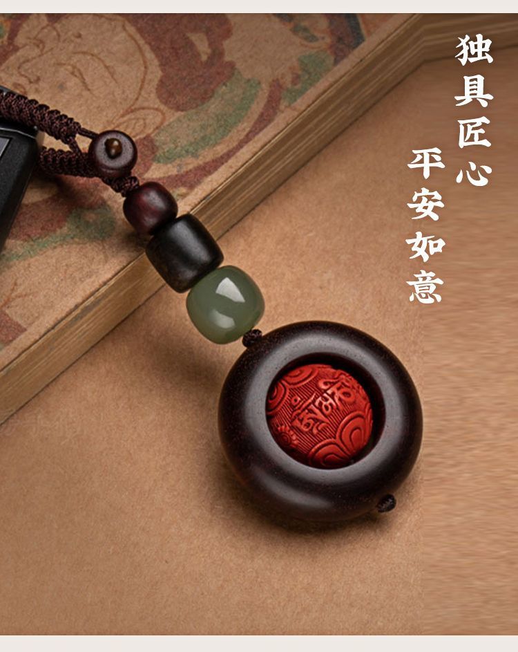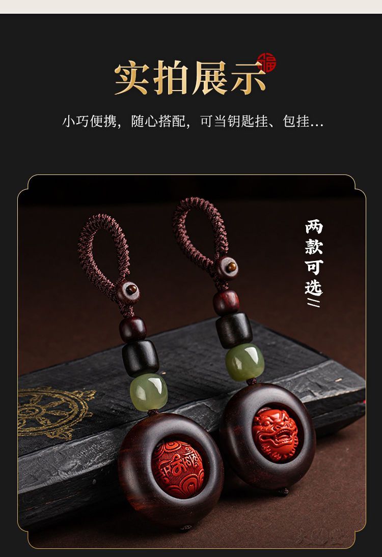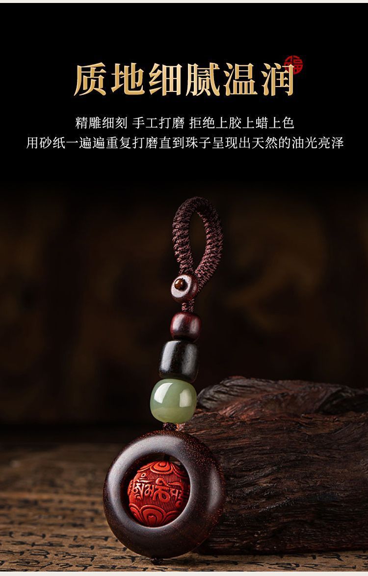 朱砂檀木汽车钥匙扣新款2023经文平安六真言挂件男女饰品创意礼物