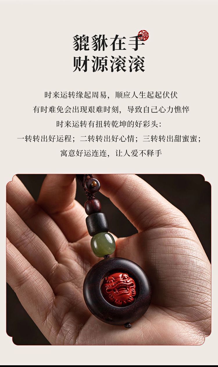 | palace royal purple gold sand [baomu grade ebony shell] financial resources rolling-pixiu keychain(宫廷御用紫金砂【百木级檀木外壳】财源滚滚-貔貅钥匙扣) | USD $5.3 | 99999 piece available |