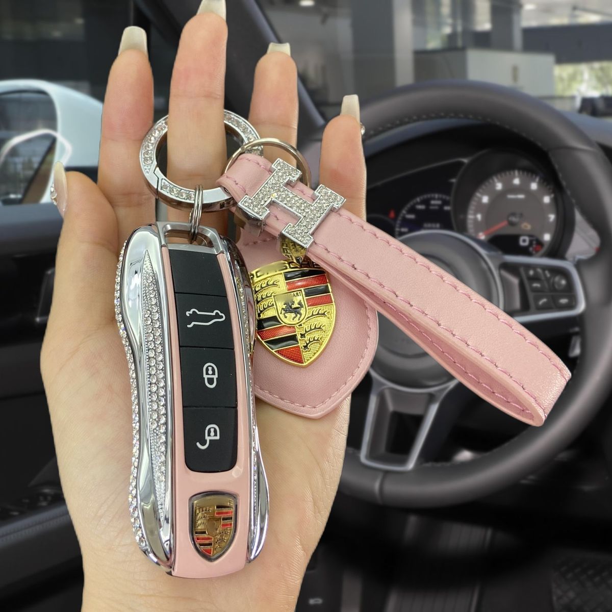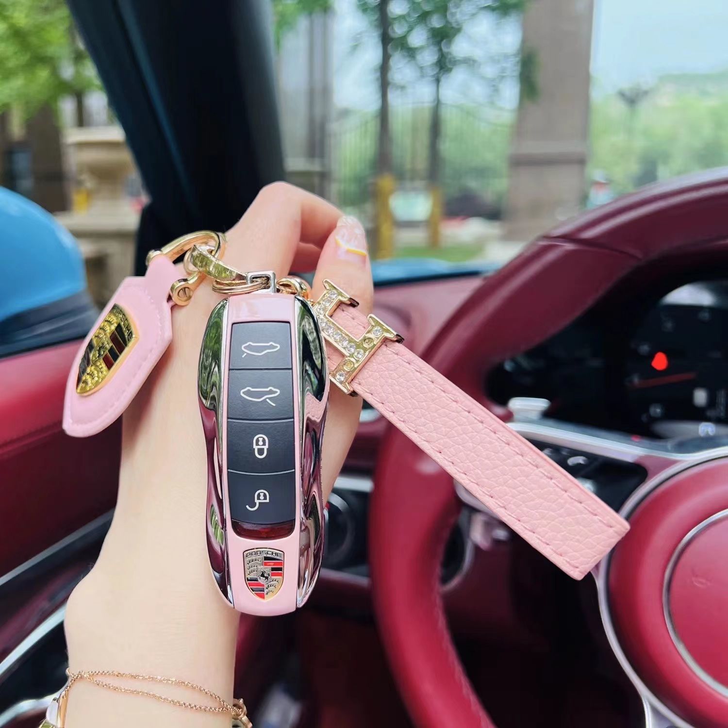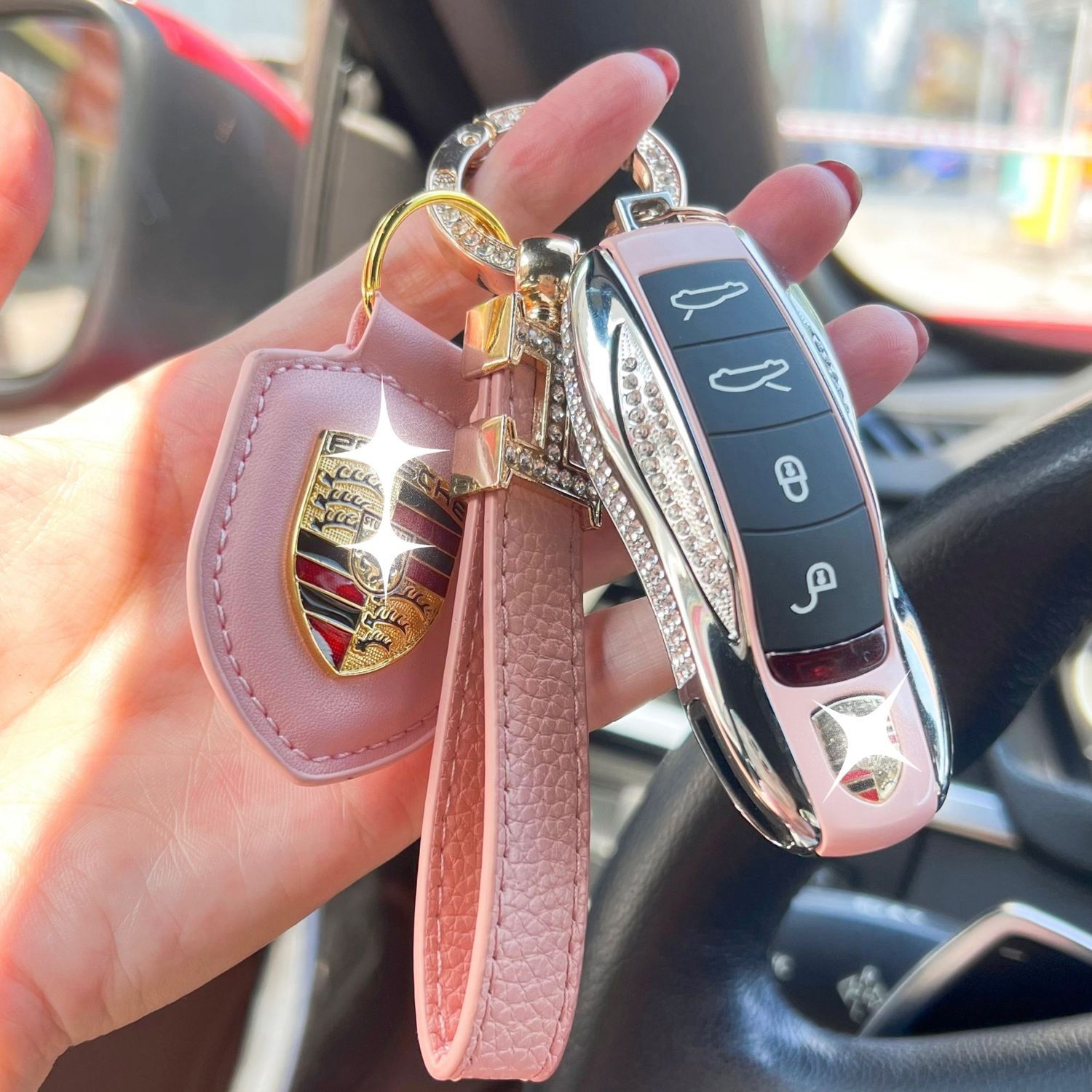 保时捷镶钻款帕拉梅拉macan卡宴911钥匙壳718女扣套包4S原厂供货