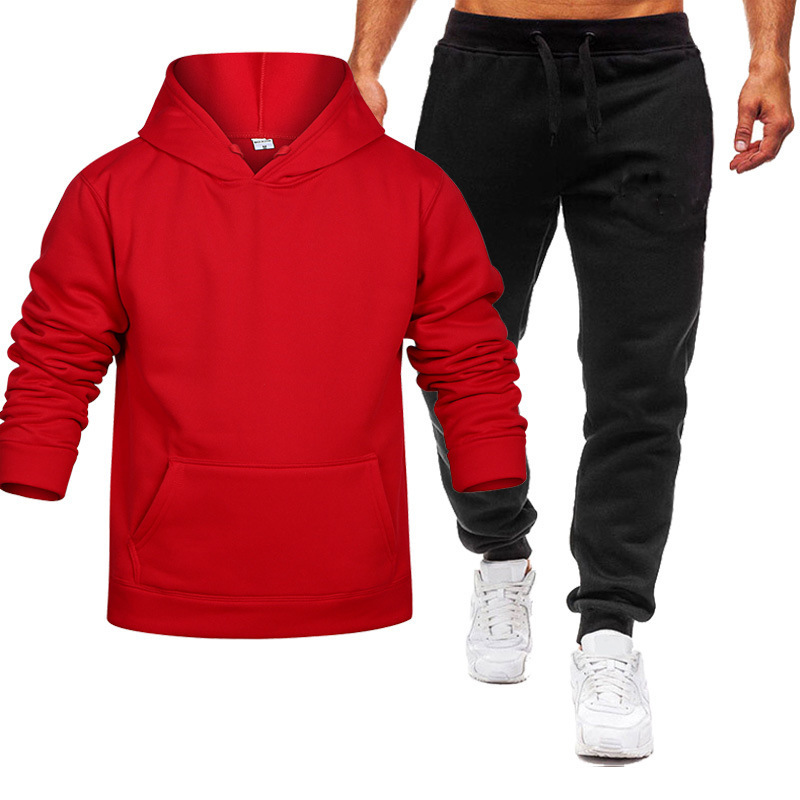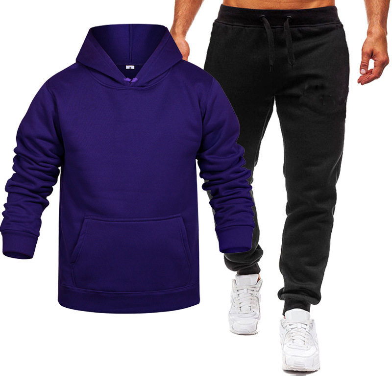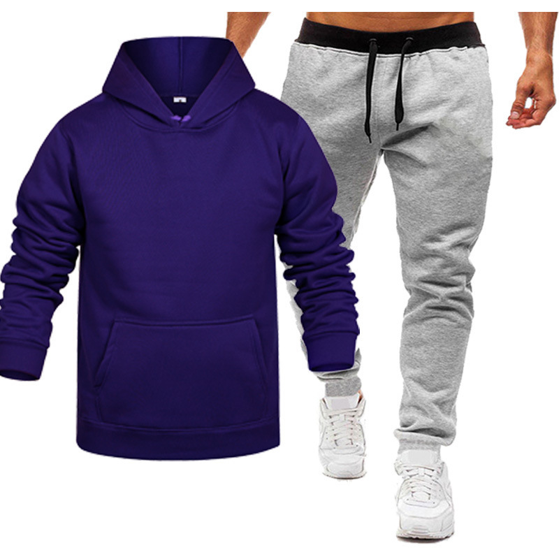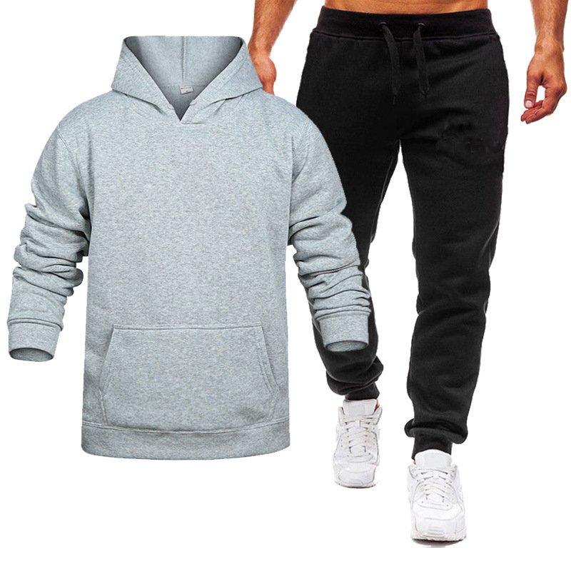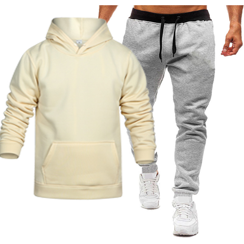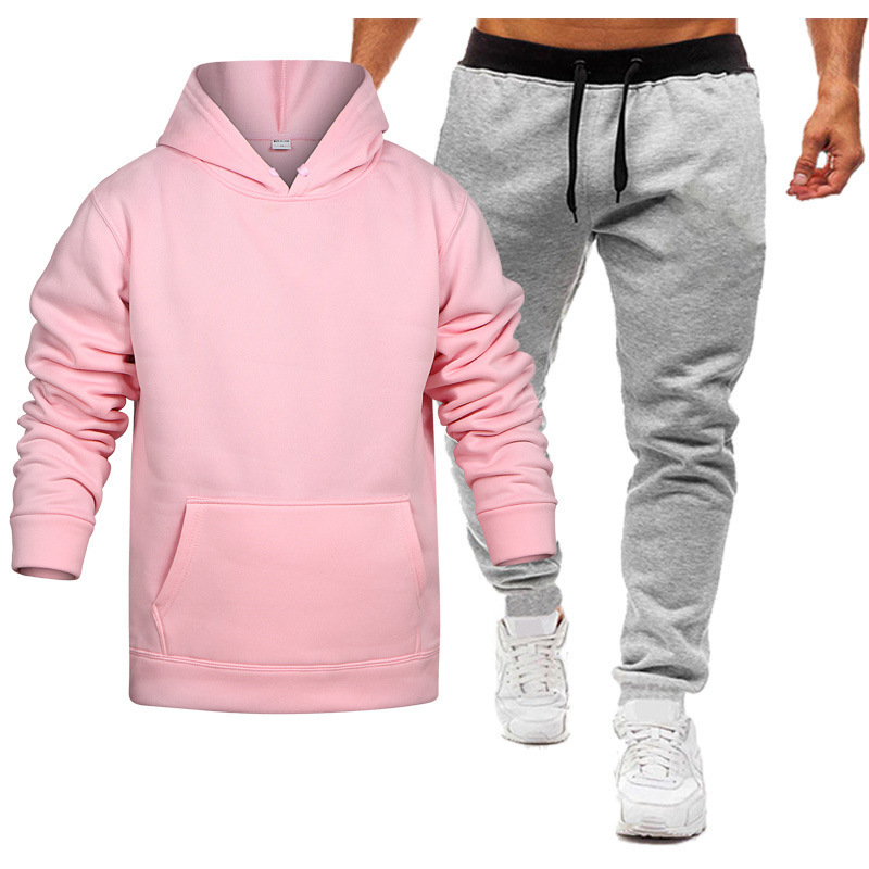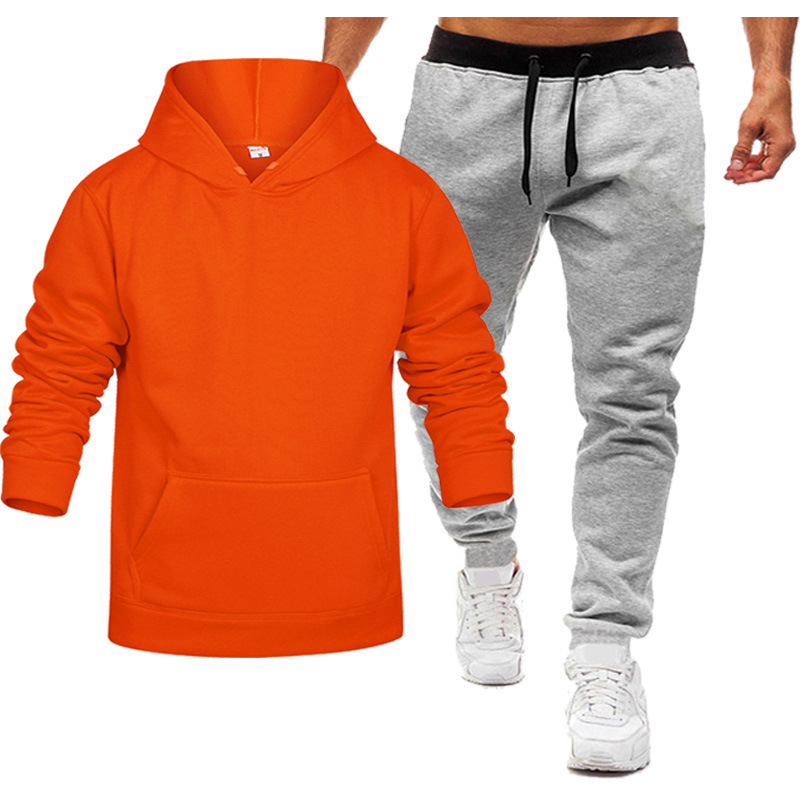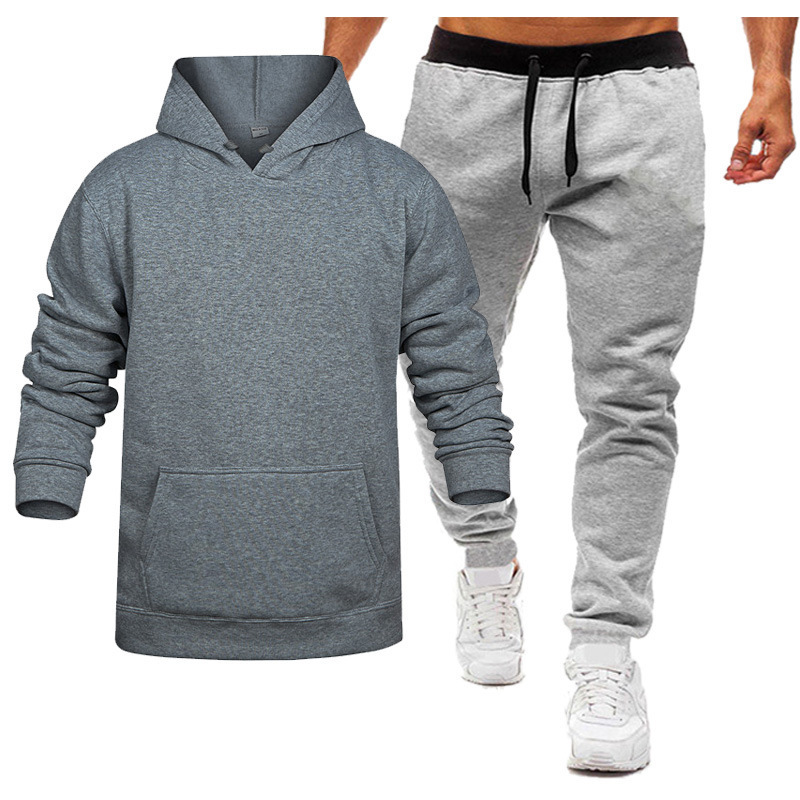 2023秋冬款男装运动卫衣男士跨境连帽衫长裤套装加绒纯色卫衣套装